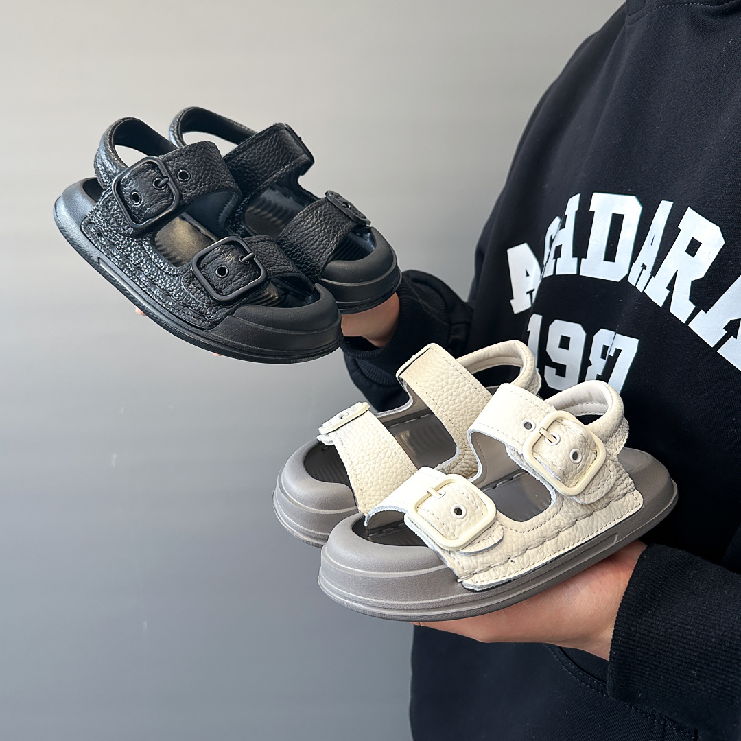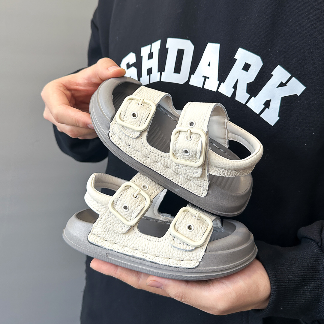어린이 바오터우 샌들 벨크로 비치 신발 2025 여름 새 스타일 소녀 샌들 소년 가죽 샌들