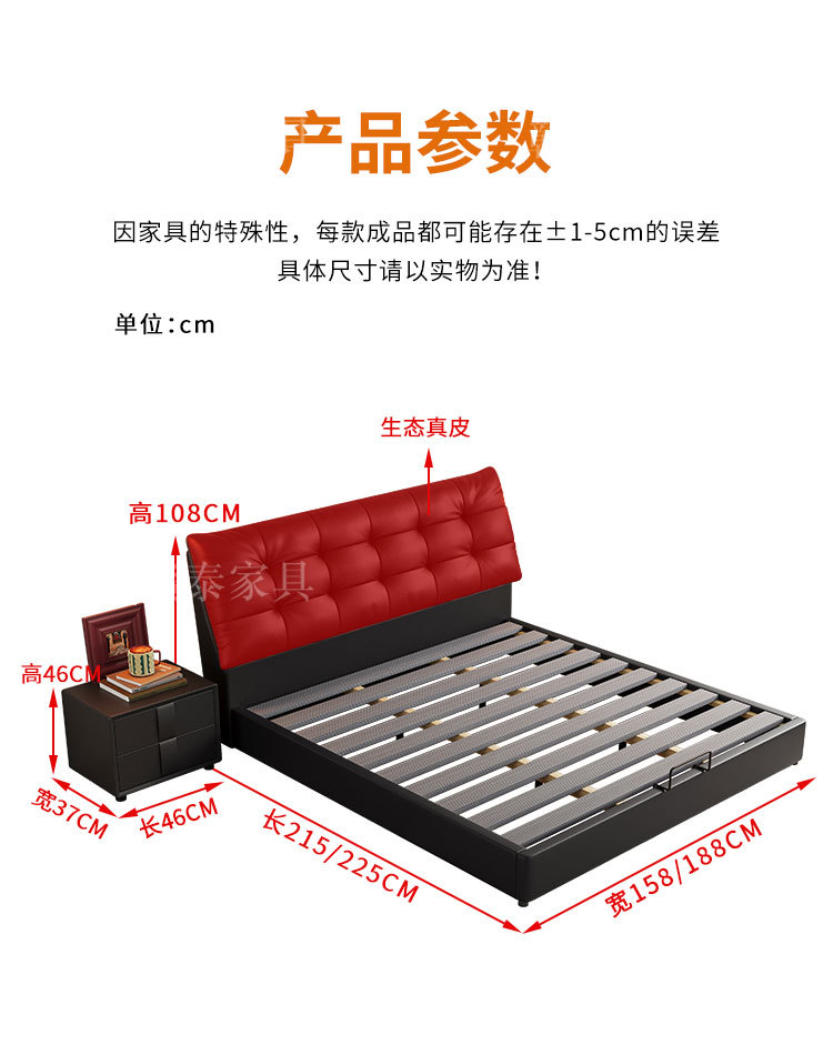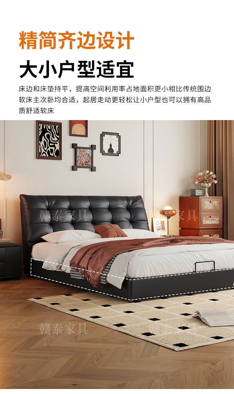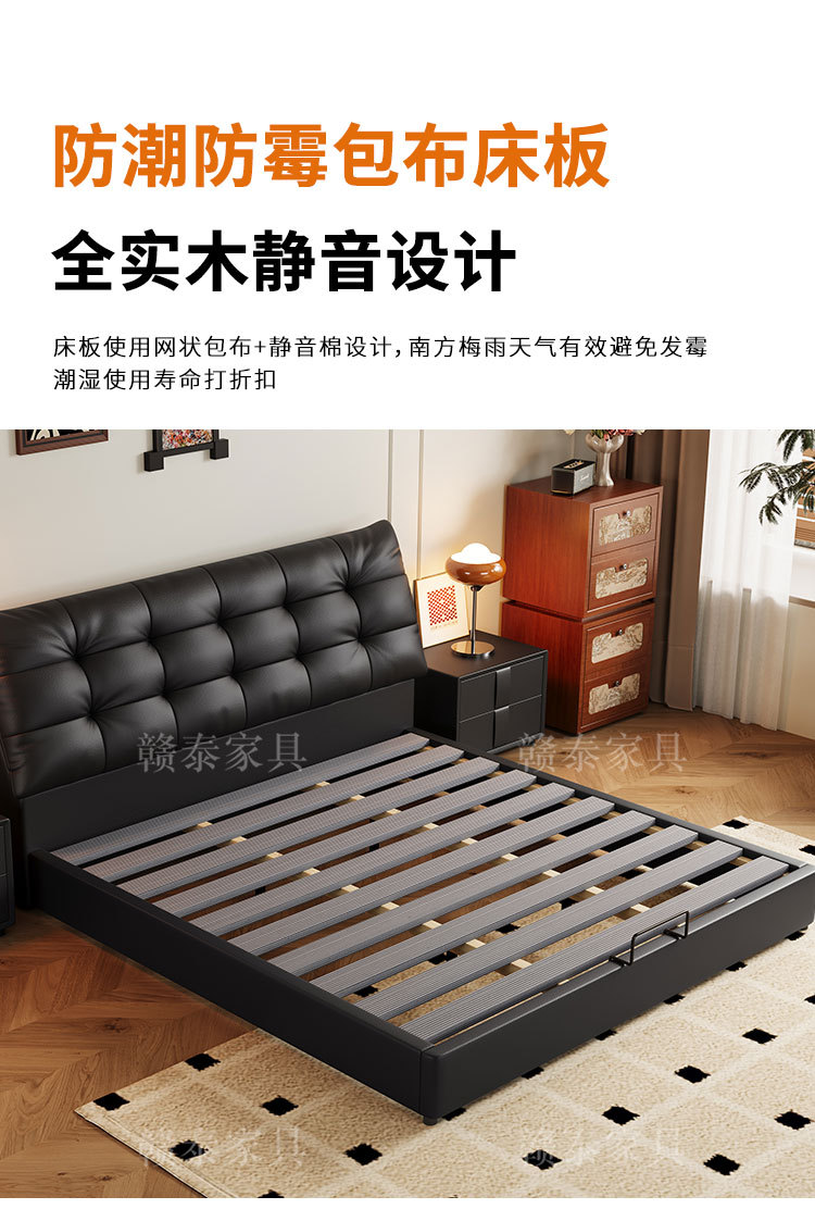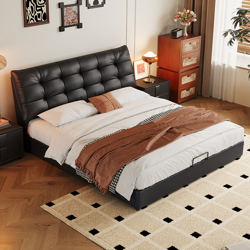 이탈리아 미니멀리스트 빅 블랙 베어 가죽 침대 부드러운 등받이 마스터 침실 빅 침대 인터넷 연예인 1.5m 더블 침대 웨딩 침대 가죽 아트 침대