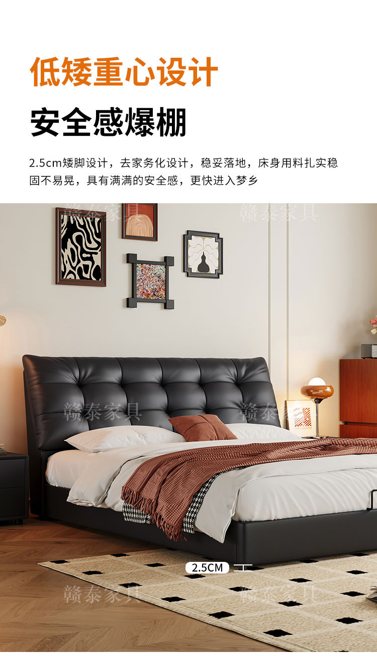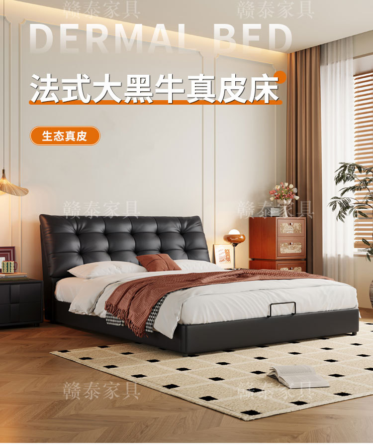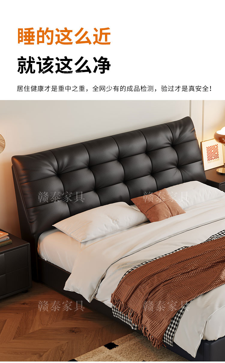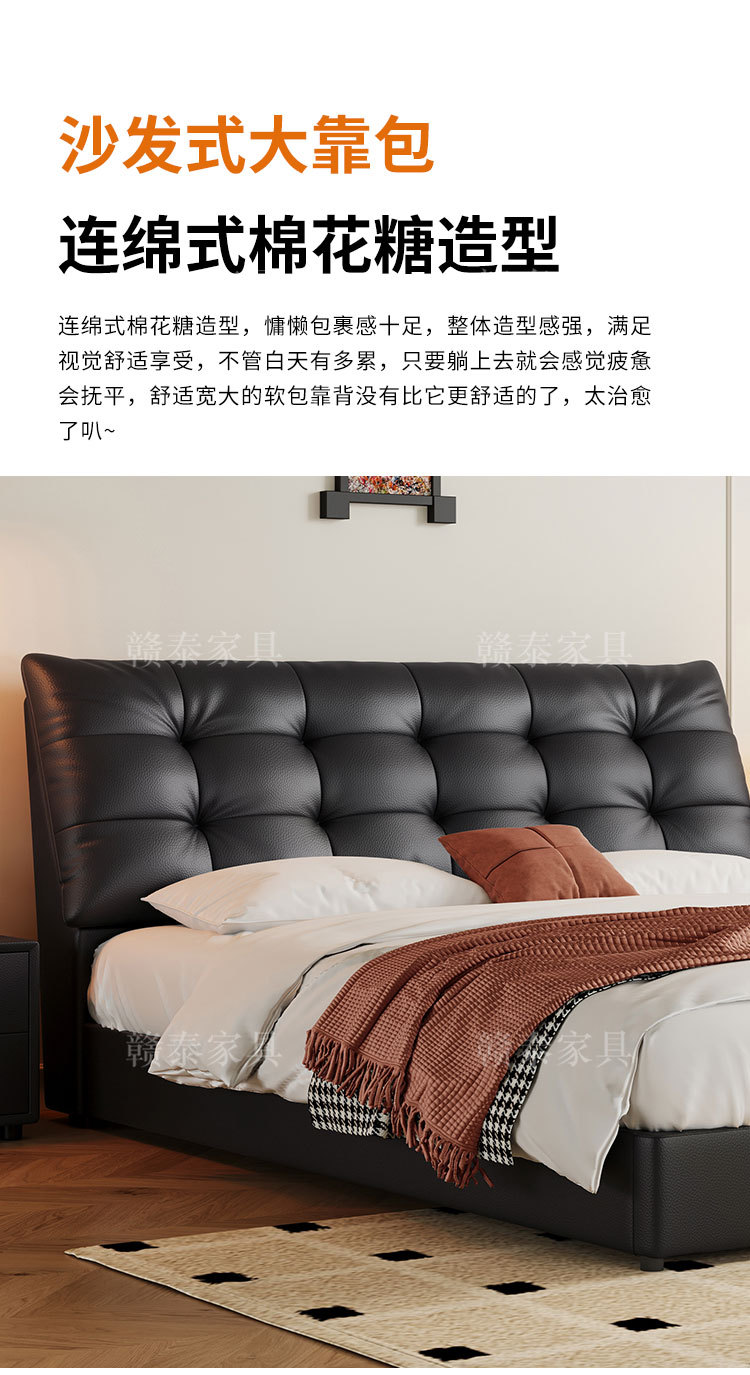 이탈리아 미니멀리스트 빅 블랙 베어 가죽 침대 부드러운 등받이 마스터 침실 빅 침대 인터넷 연예인 1.5m 더블 침대 웨딩 침대 가죽 아트 침대스토어 가기