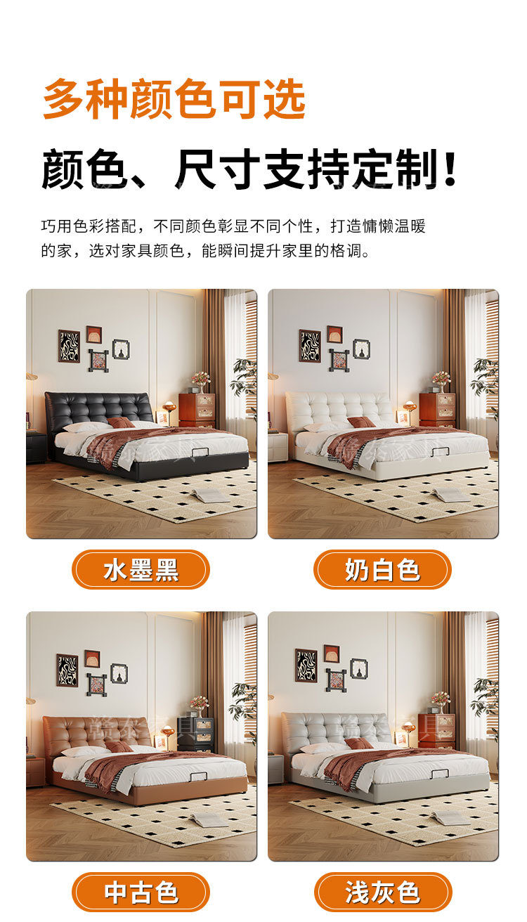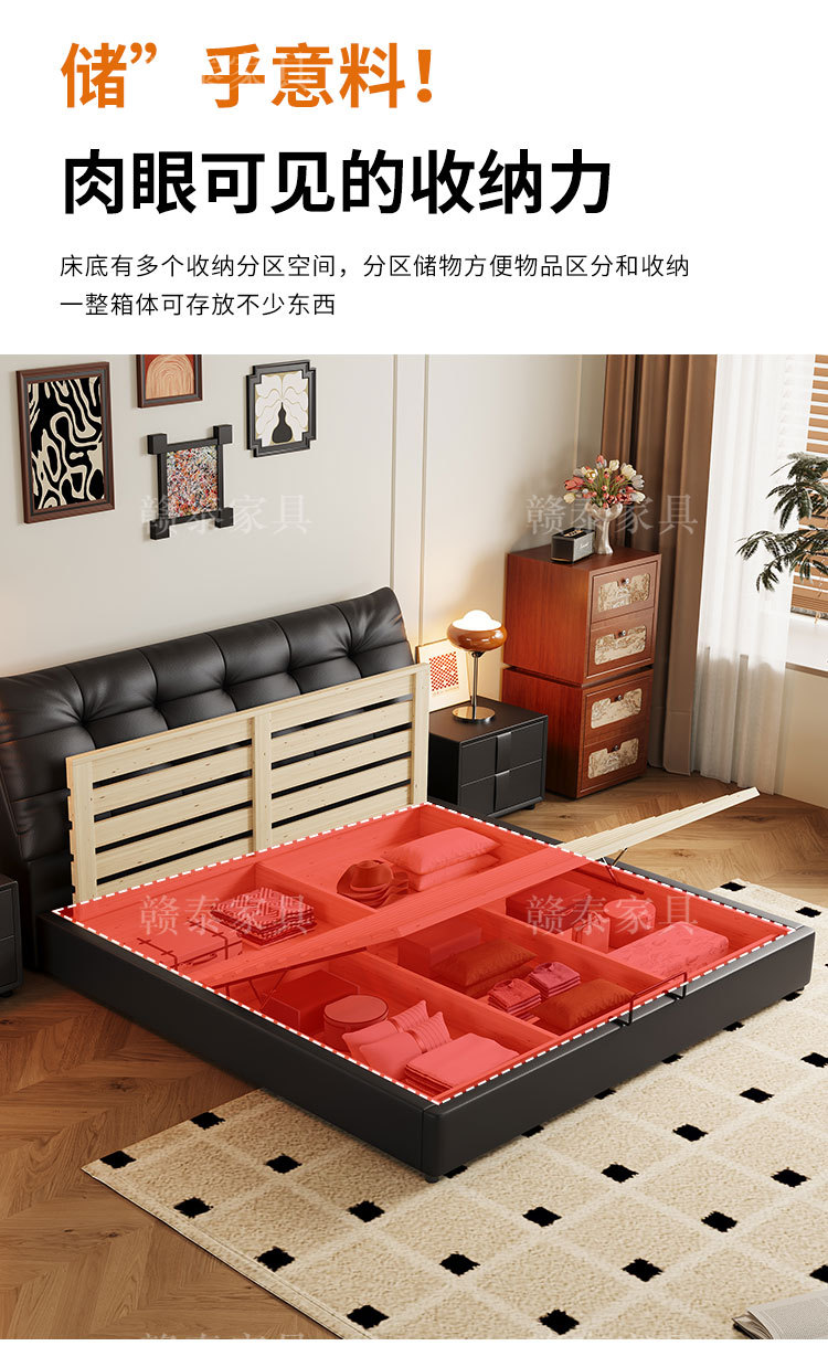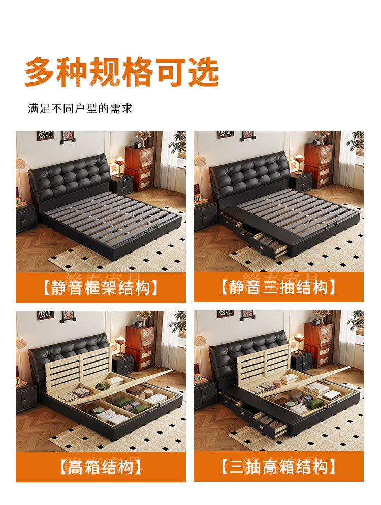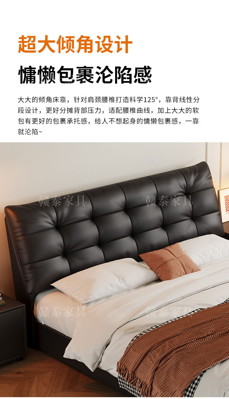 이탈리아 미니멀리스트 빅 블랙 베어 가죽 침대 부드러운 등받이 마스터 침실 빅 침대 인터넷 연예인 1.5m 더블 침대 웨딩 침대 가죽 아트 침대스토어 가기