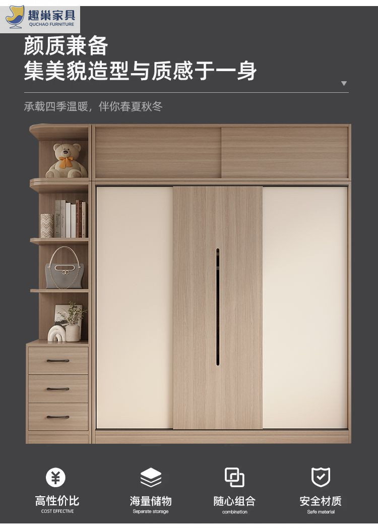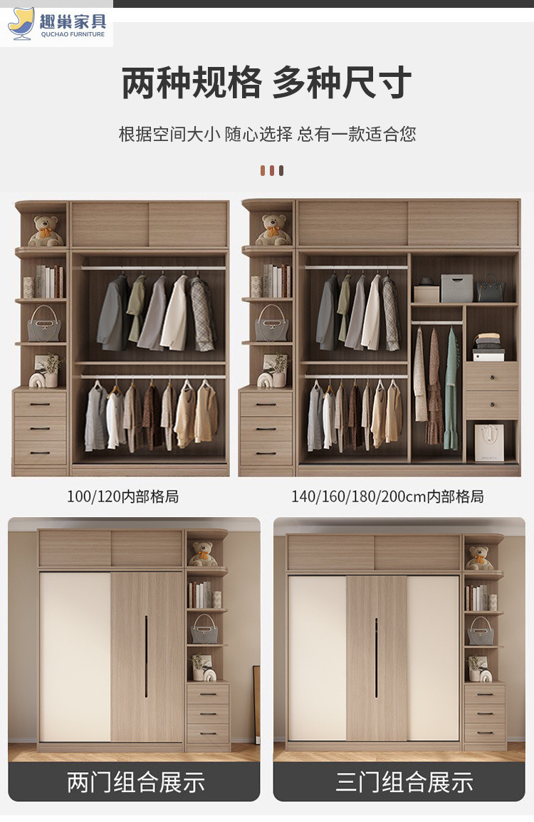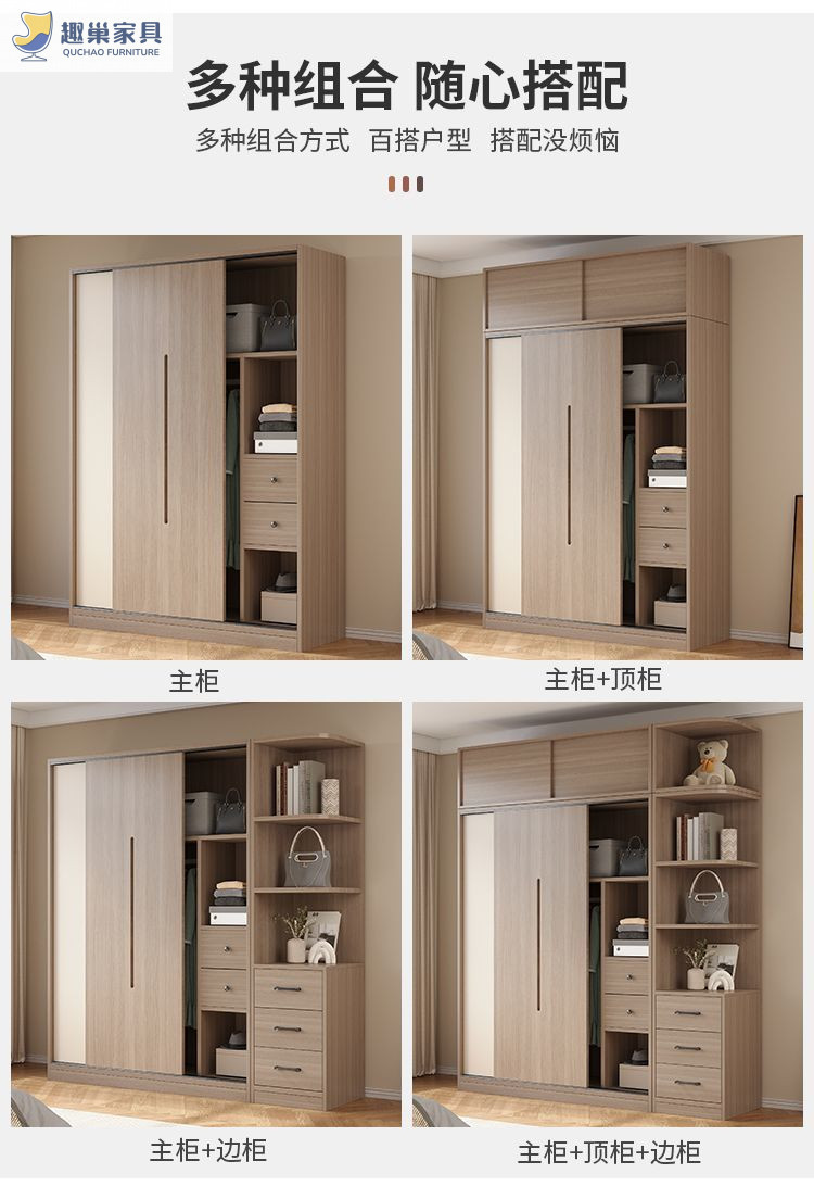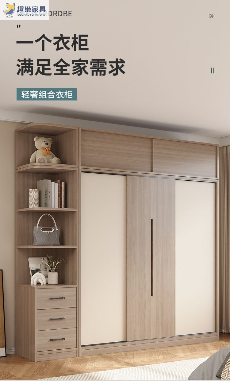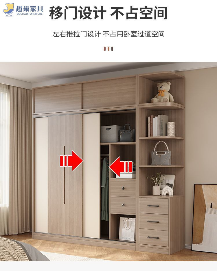 슬라이딩 도어 캐비닛 침실 홈 현대 간단한 옷장 임대실 보관 캐비닛 경제적 인 가벼운 럭셔리 대형 옷장