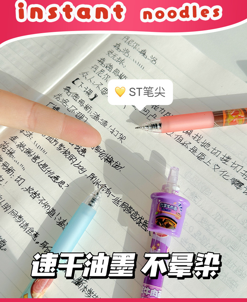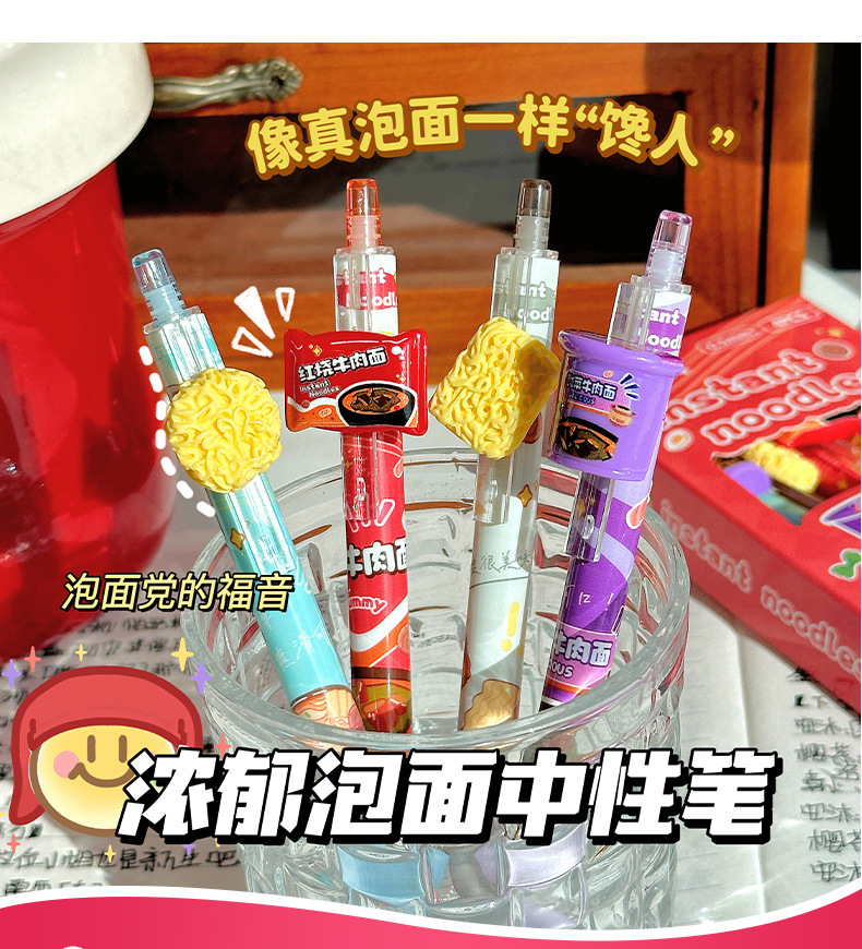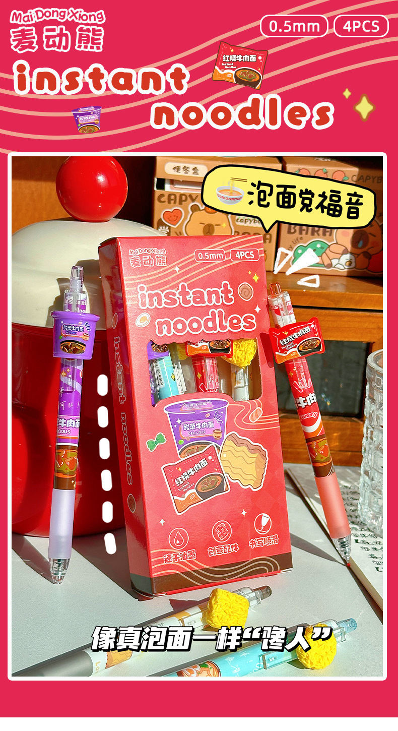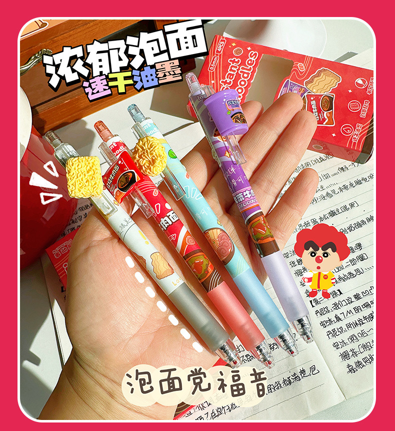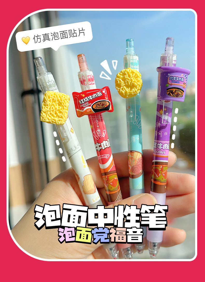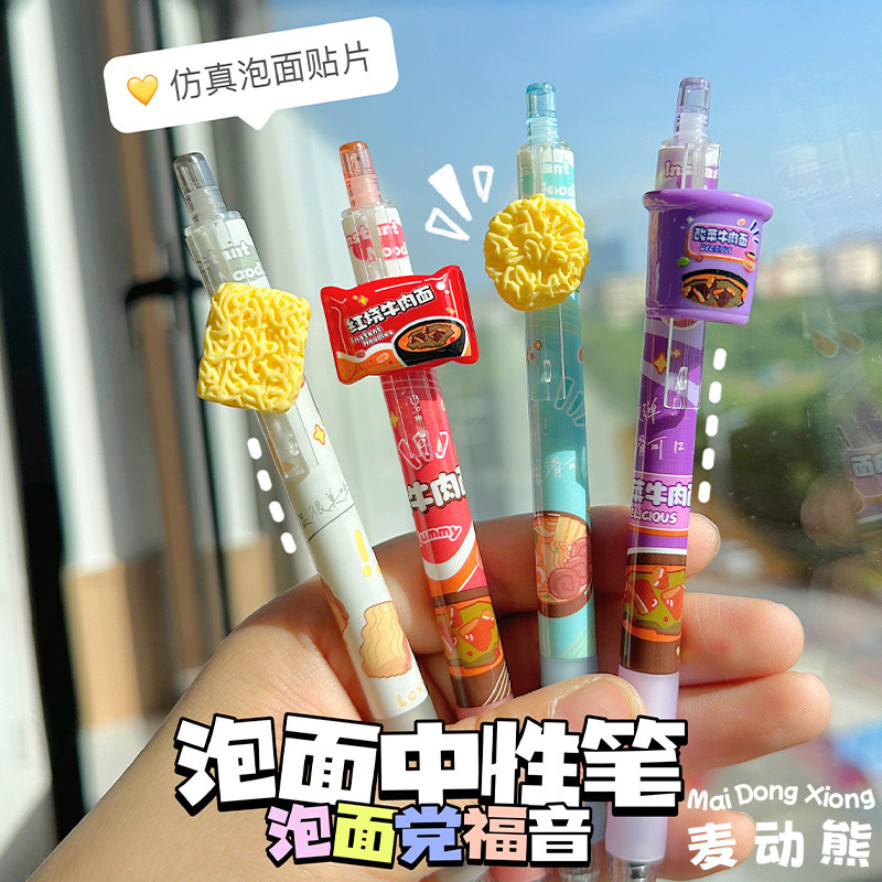 Maidongxiong 풍부한 인스턴트 국수 프레스 젤 펜 만화 귀여운 스낵 패치 검정 펜 학생 속건성 브러시 펜스토어 가기