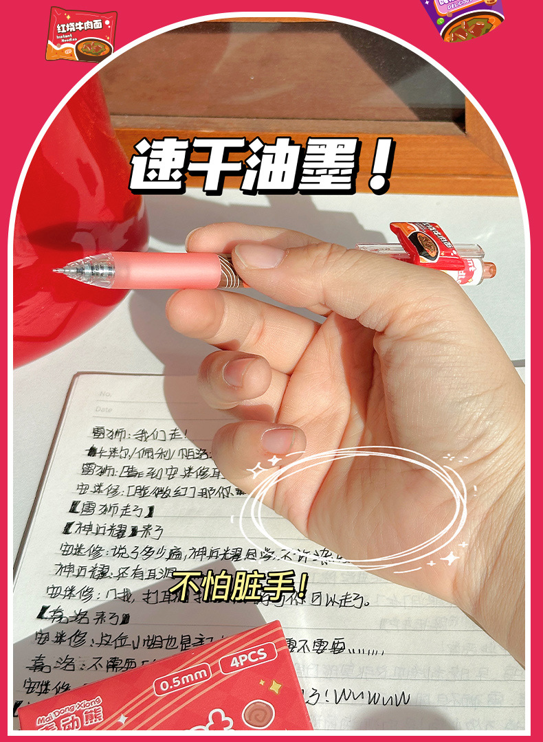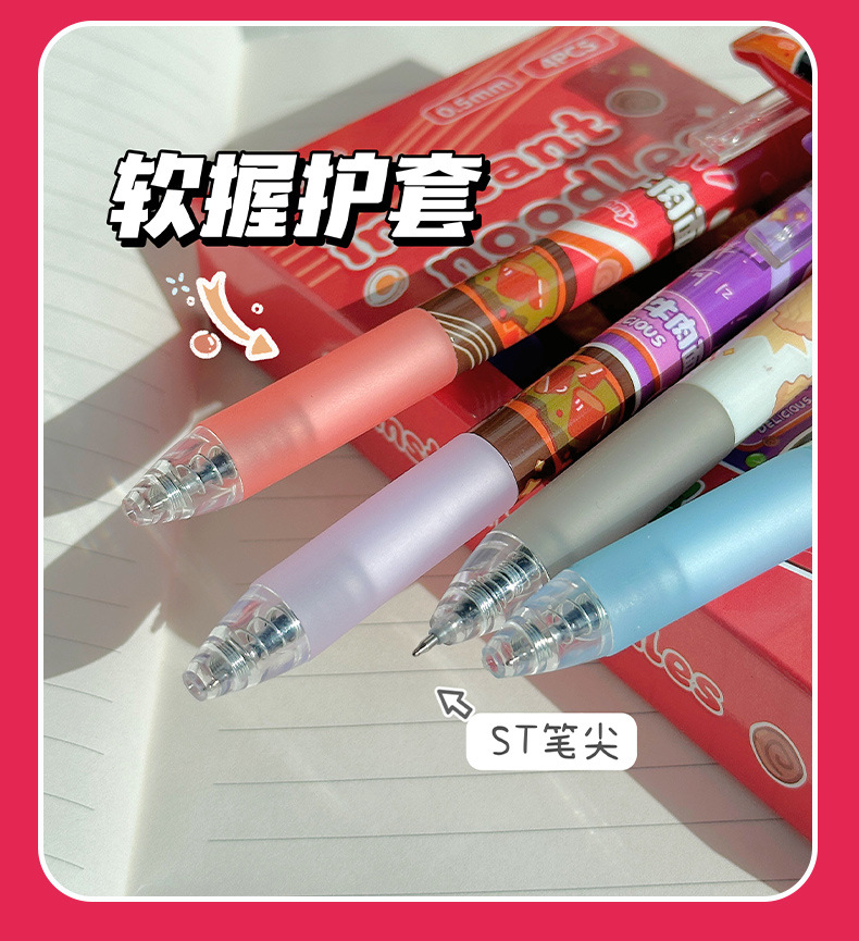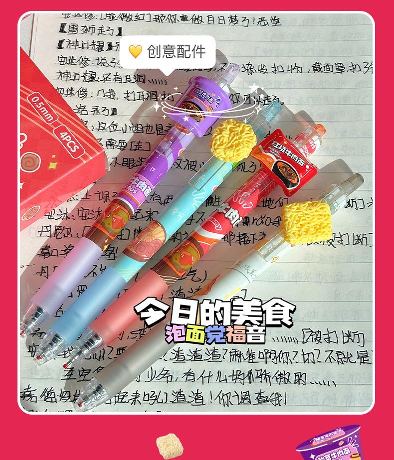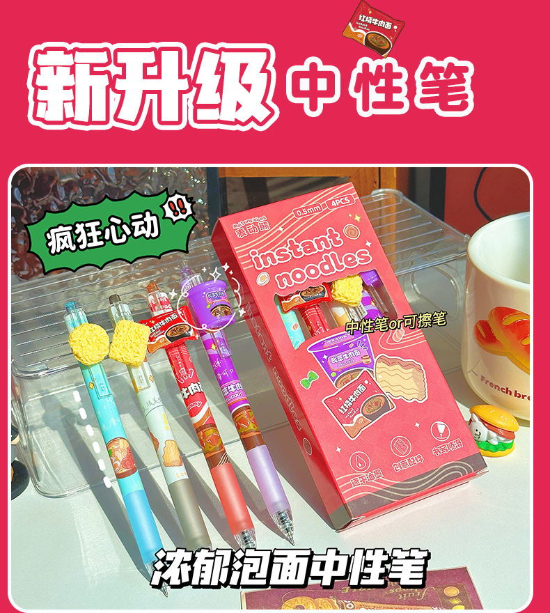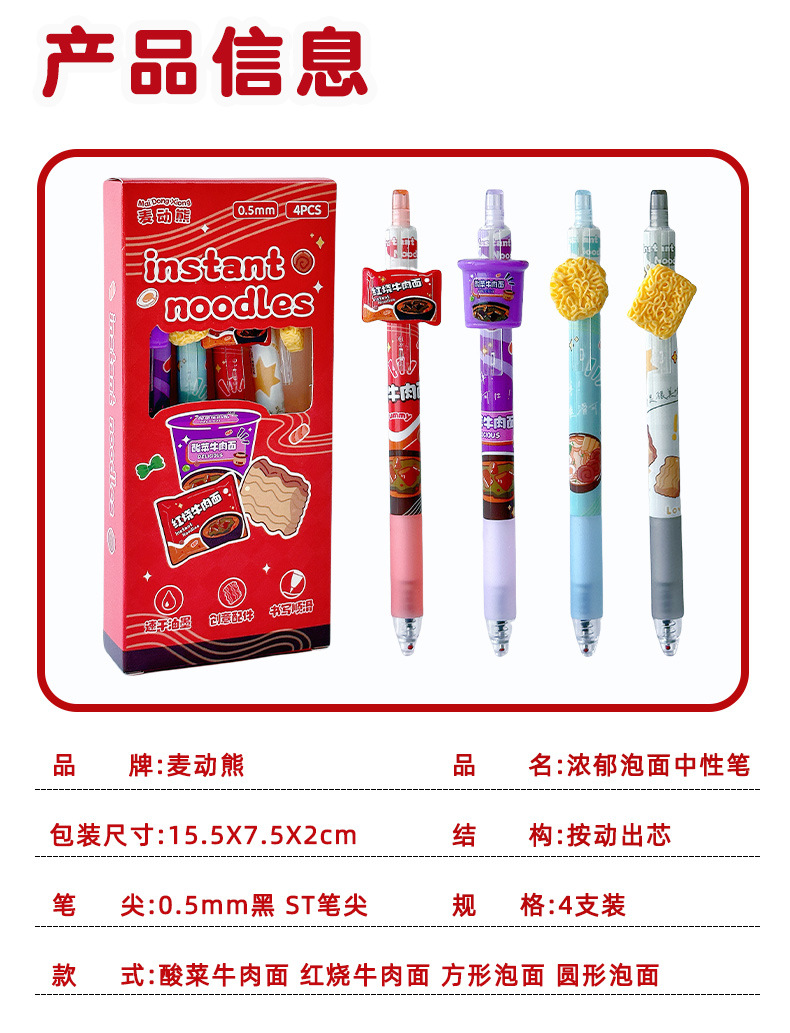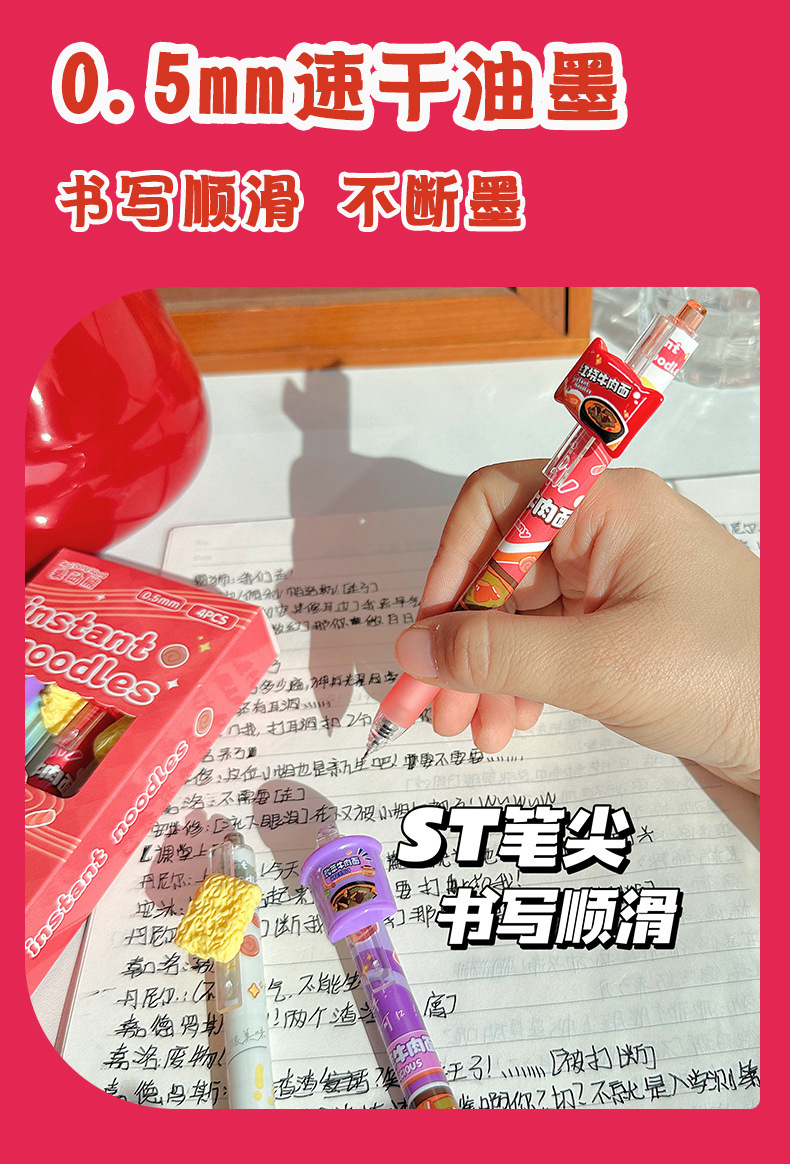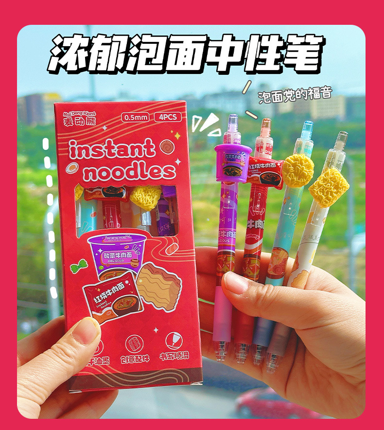 Maidongxiong 풍부한 인스턴트 국수 프레스 젤 펜 만화 귀여운 스낵 패치 검정 펜 학생 속건성 브러시 펜스토어 가기