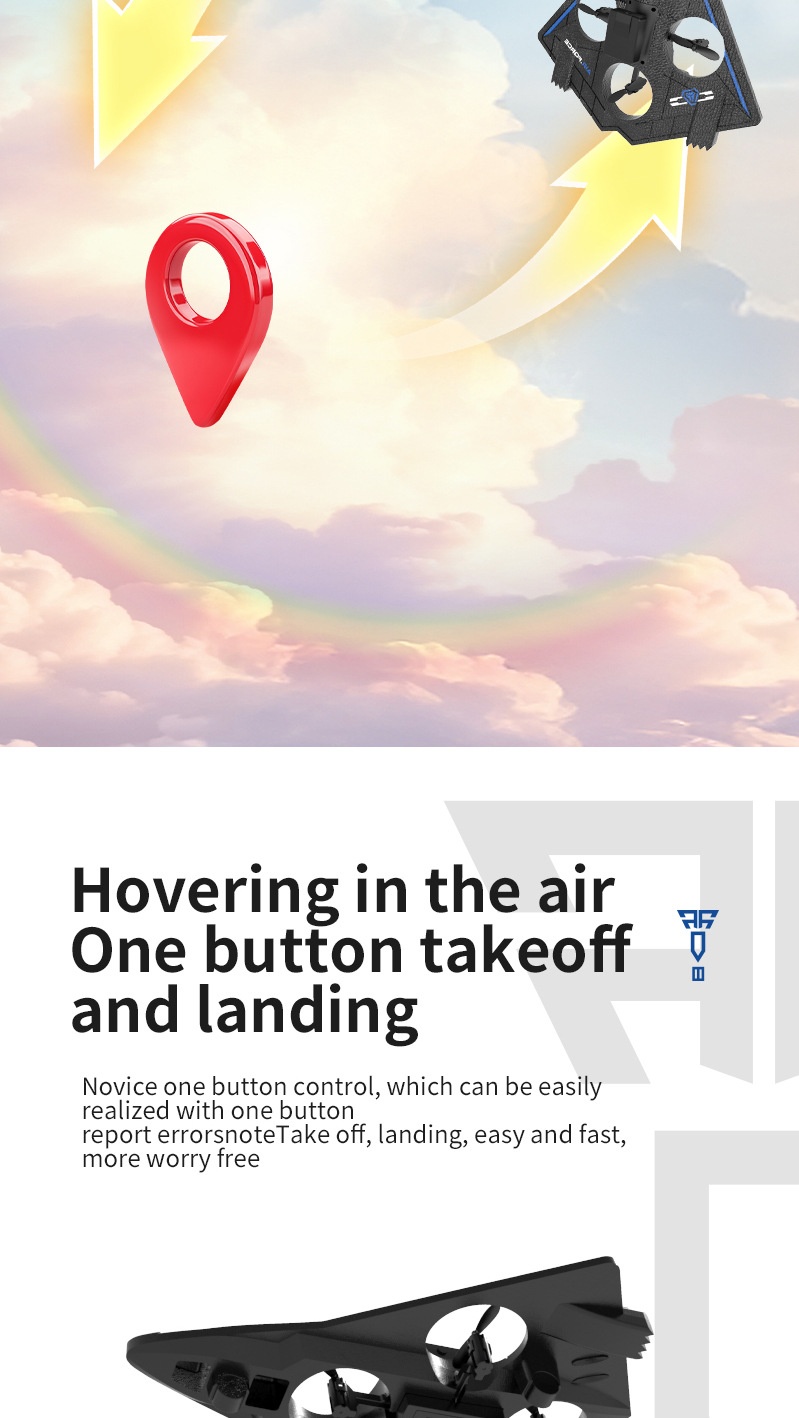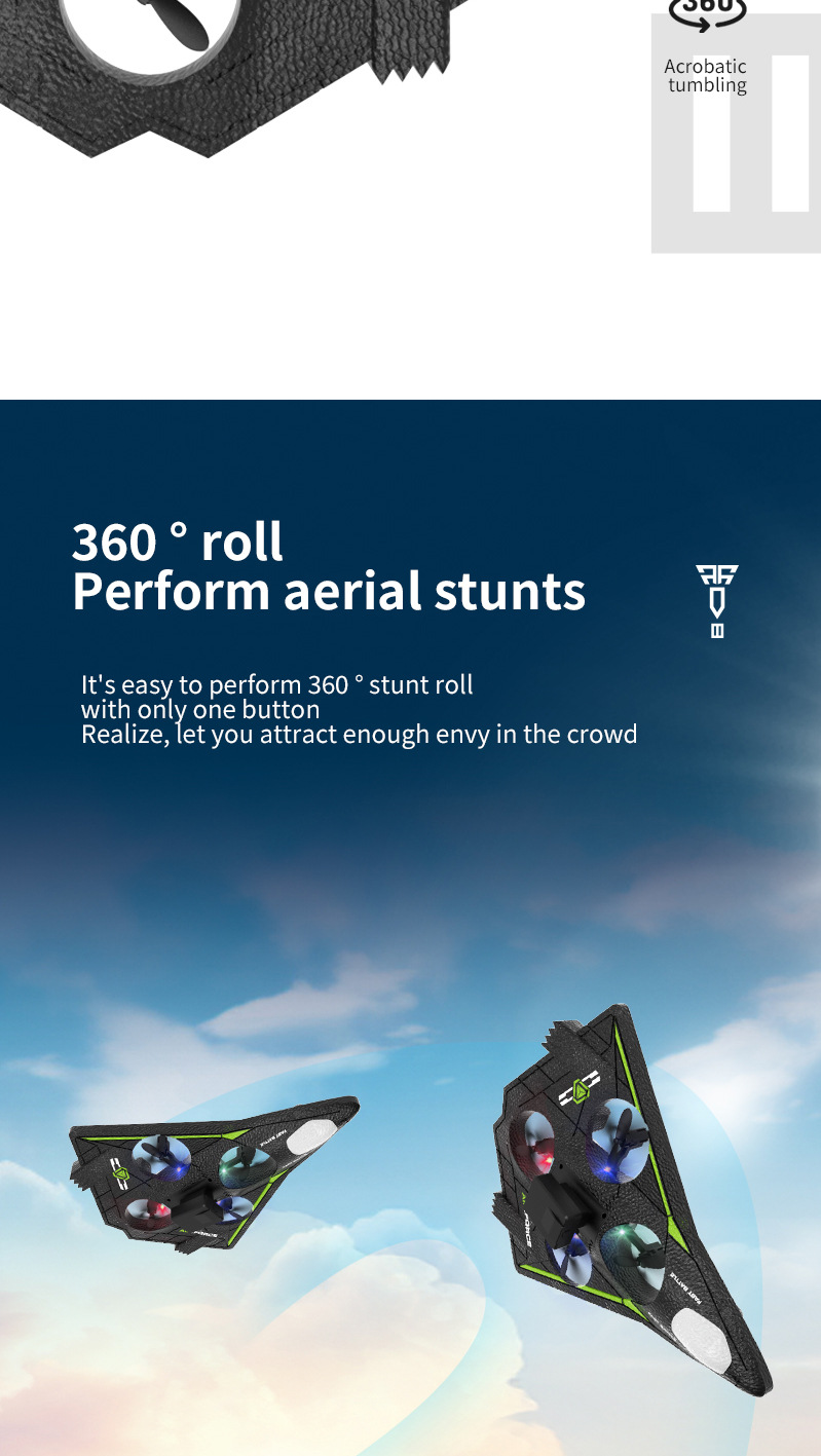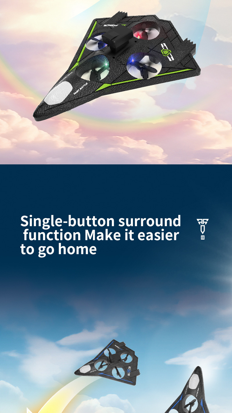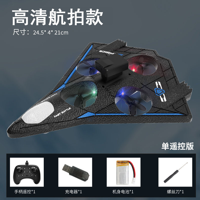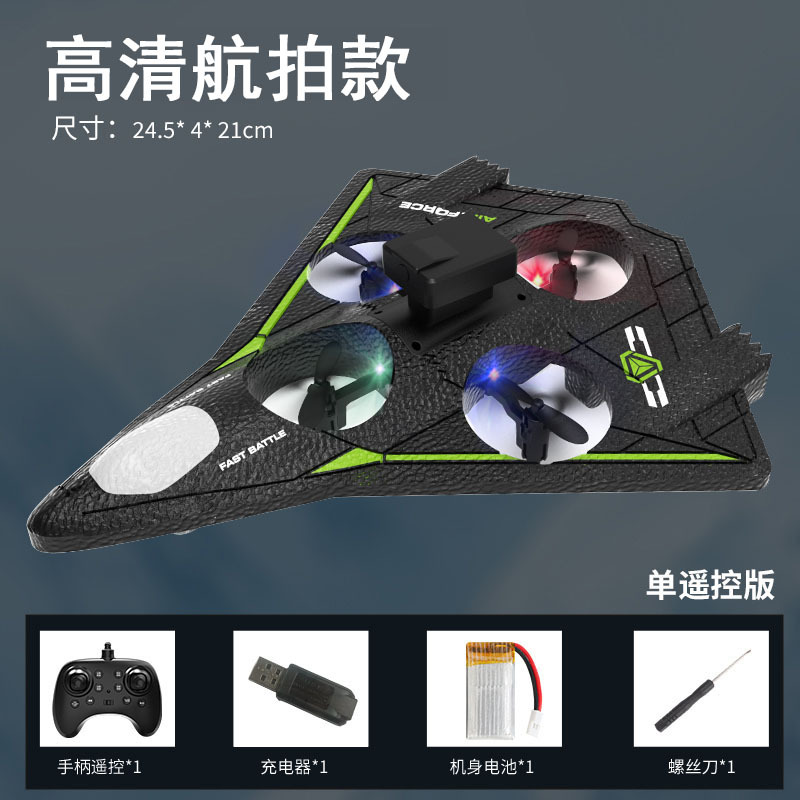 功能描述:本产品为泡沫机身四轴无人机,配置遥控器.可以前进、后退、上升、下降、左右转、左右侧飞,无头模式,一键返航,快慢速3档切换功能,360°特技翻滚,泡沫保护更安全。 配置高清航拍摄像头,遥控器配置手机支架,可以操作无人机实时进行拍照录像,并且通过APP下载到手机里面。