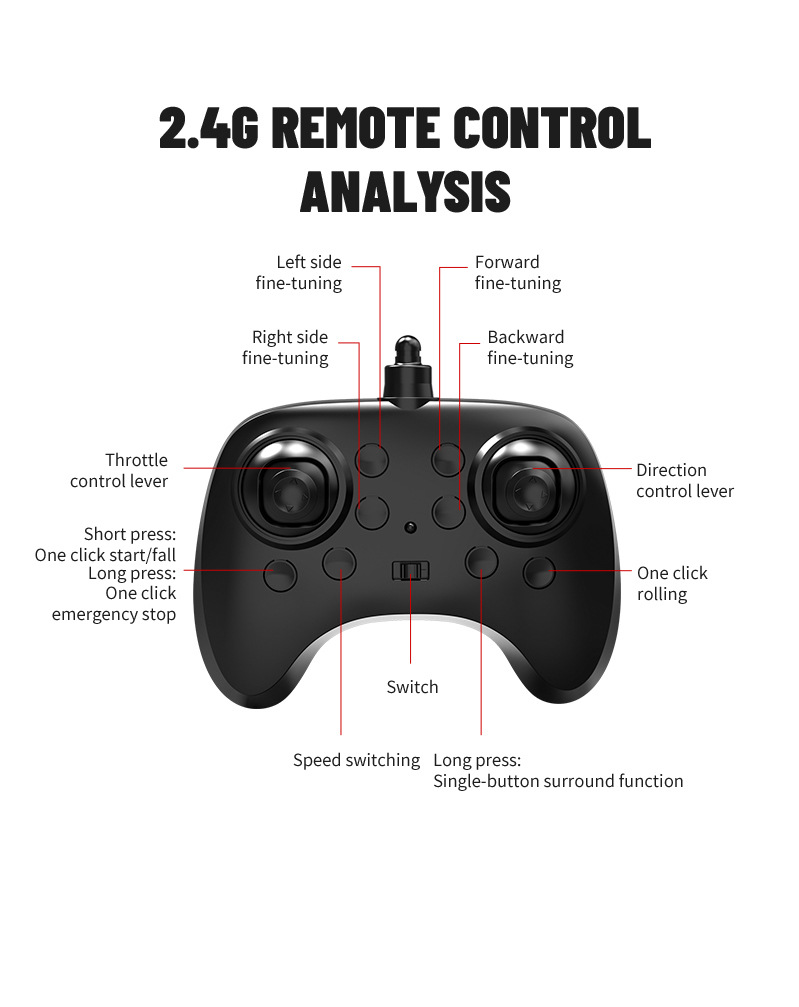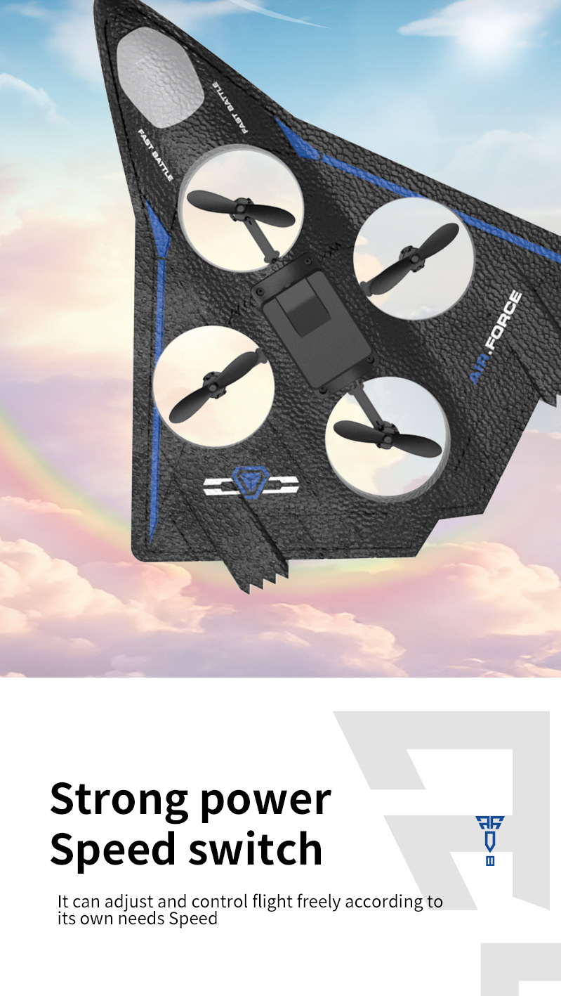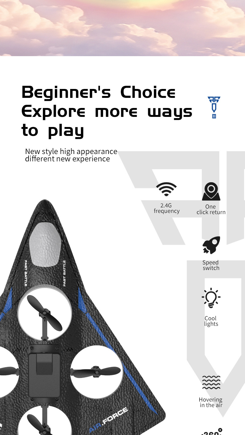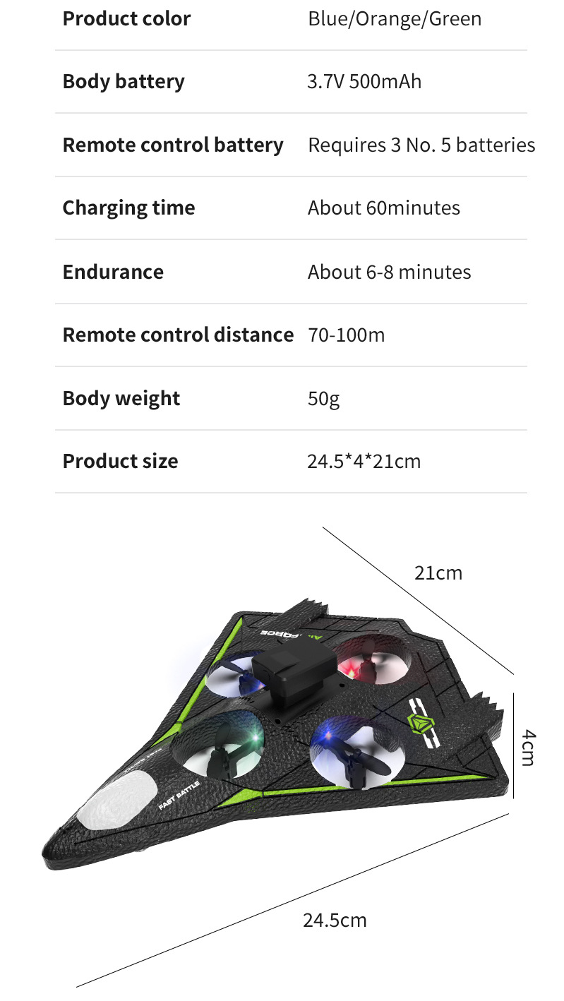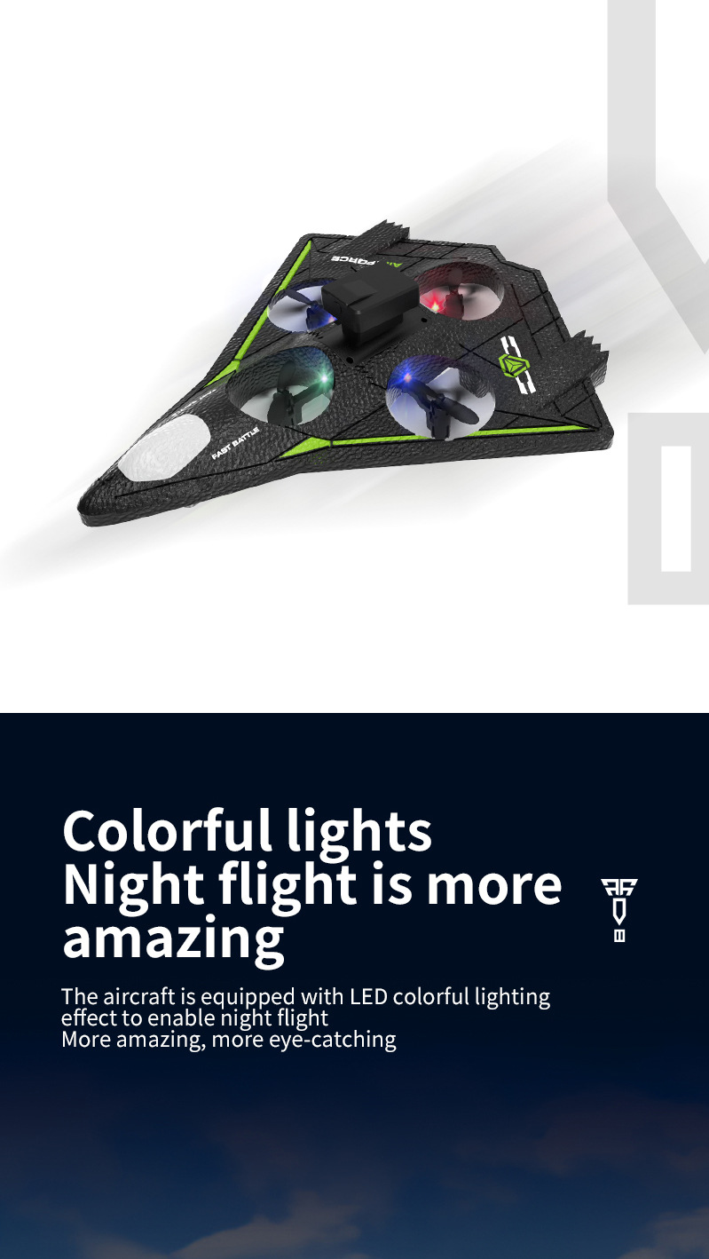 功能描述:本产品为泡沫机身四轴无人机,配置遥控器.可以前进、后退、上升、下降、左右转、左右侧飞,无头模式,一键返航,快慢速3档切换功能,360°特技翻滚,泡沫保护更安全。 配置高清航拍摄像头,遥控器配置手机支架,可以操作无人机实时进行拍照录像,并且通过APP下载到手机里面。