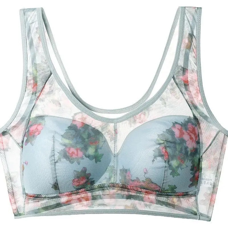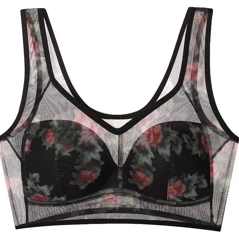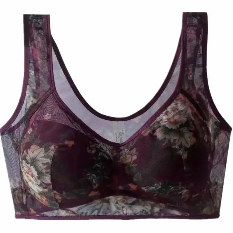 플러스 사이즈 여성 속옷 프린트 아름다운 등 와이어 프리 조끼 브라 얇은 푸시 업 처짐 방지 메쉬 튜브 탑 브라스토어 가기
