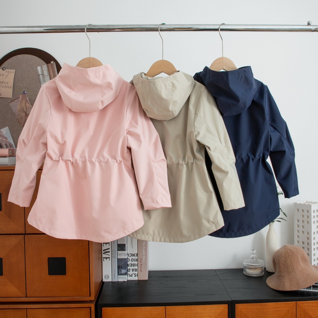 15327 여아용 봄 신상품 바람막이, 아동용 가볍고 허리를 잘록하게 잡아주는 후드 바람막이 재킷, 원피스 배송스토어 가기