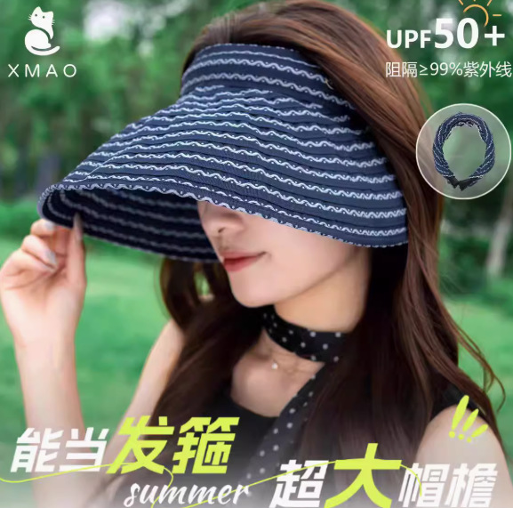 프랑스 스타일 레트로 헵번 스타일 줄무늬 빈 모자 여성의 여름 새로운 패션 우아한 얼굴 작은 접을 수있는 태양 모자