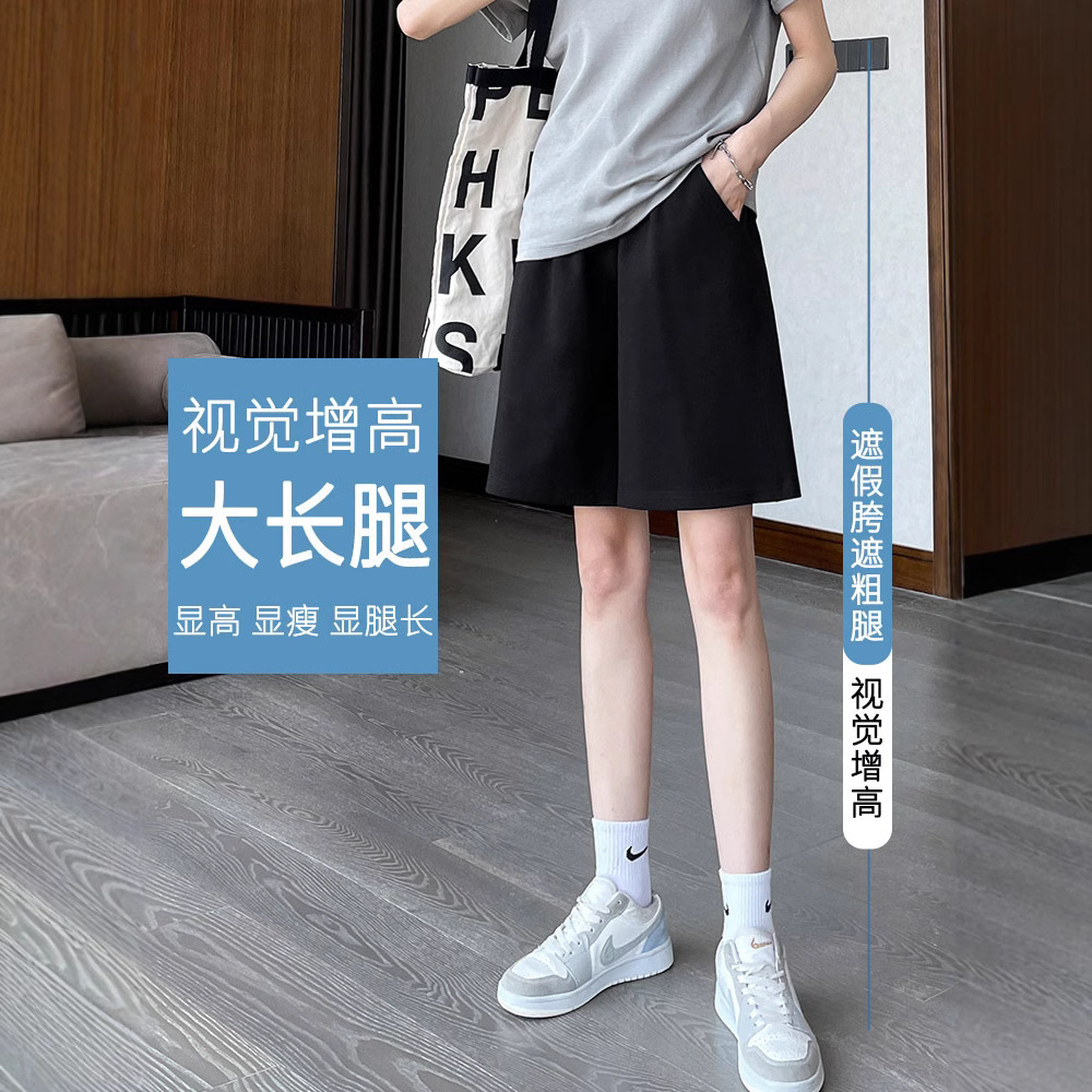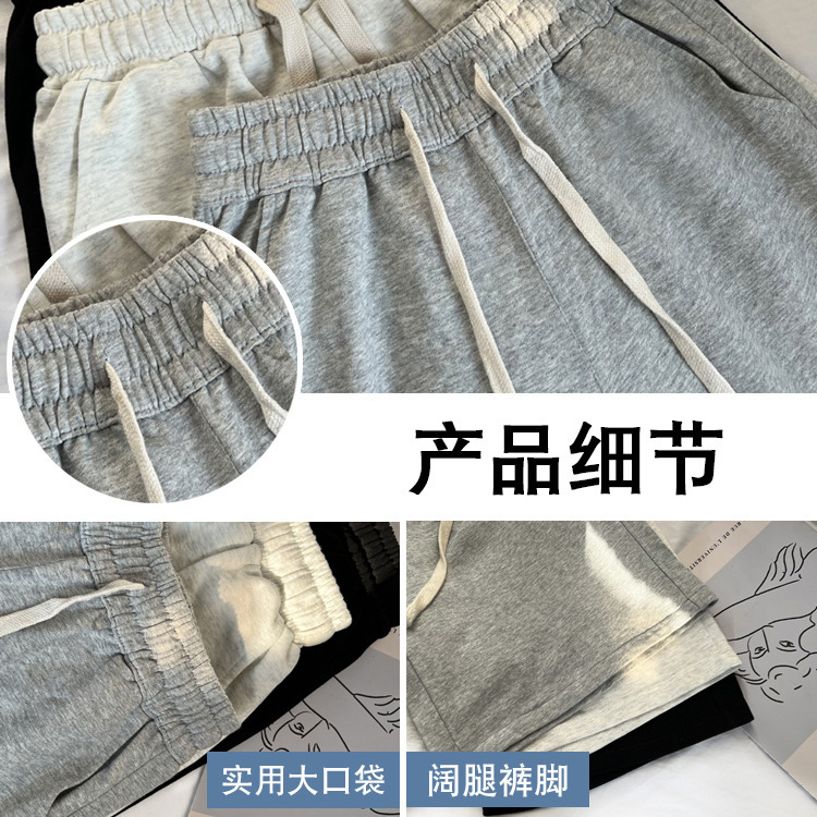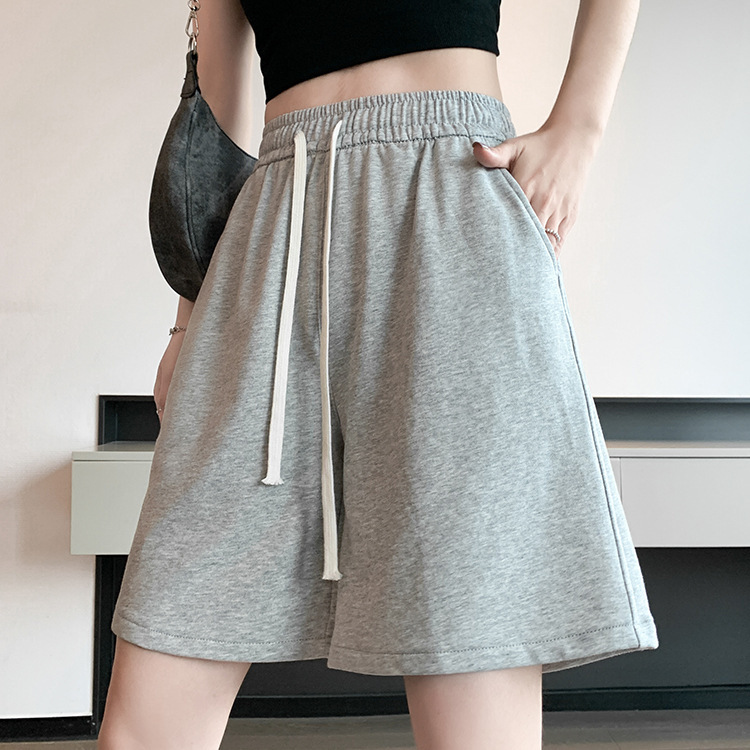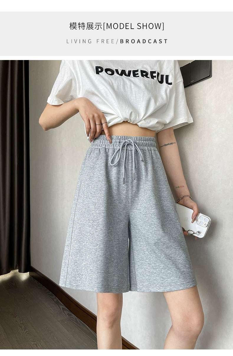 여성용 그레이 스포츠 반바지 여름 얇은 5부 팬츠 쁘띠 A라인 아우터 러닝 루즈 와이드 레그 캐주얼 팬츠스토어 가기