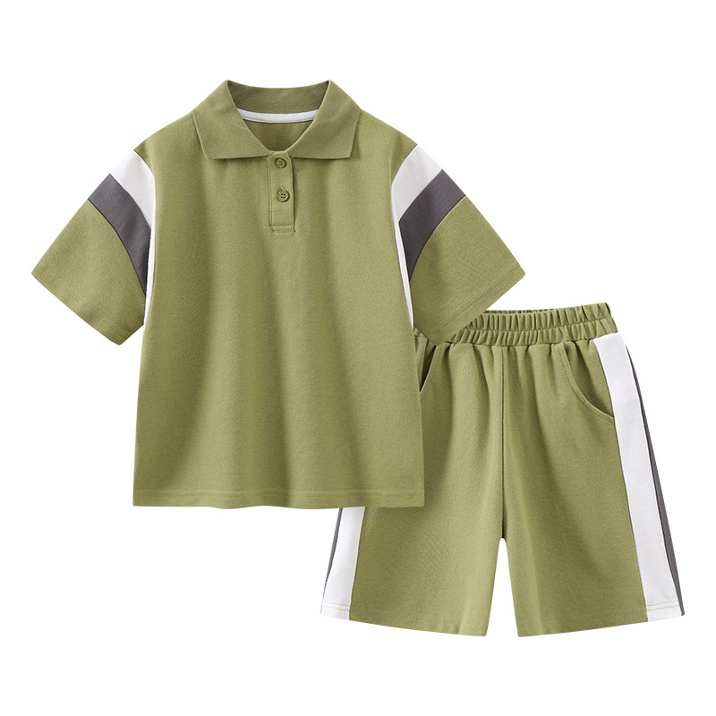 2025 여름 소년 반팔 티셔츠 정장 새로운 어린이 옷깃 폴로 셔츠 5부 바지 중대형 어린이를위한 투피스 세트