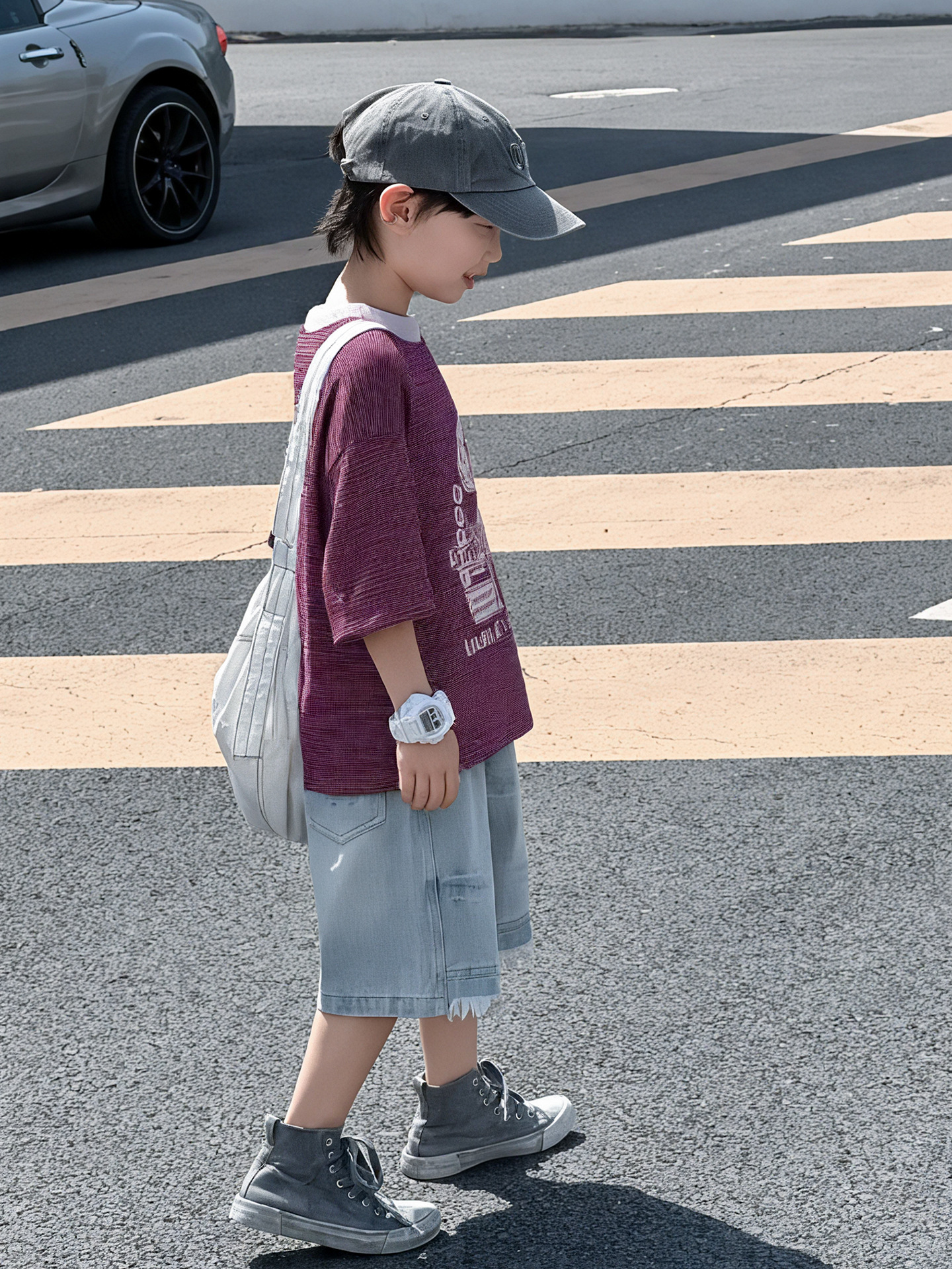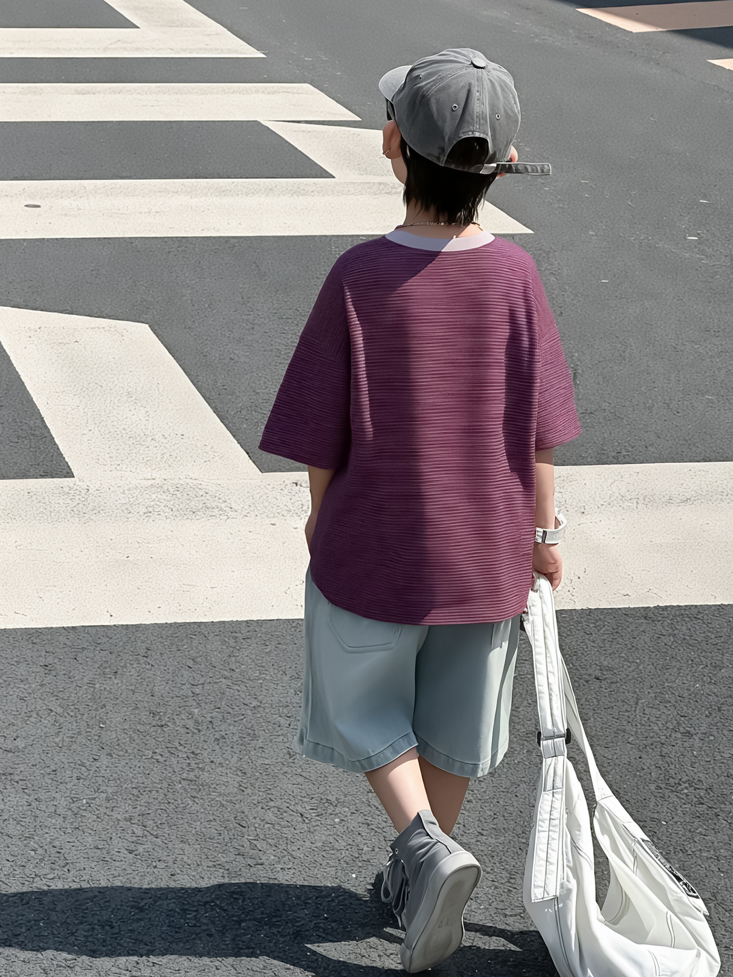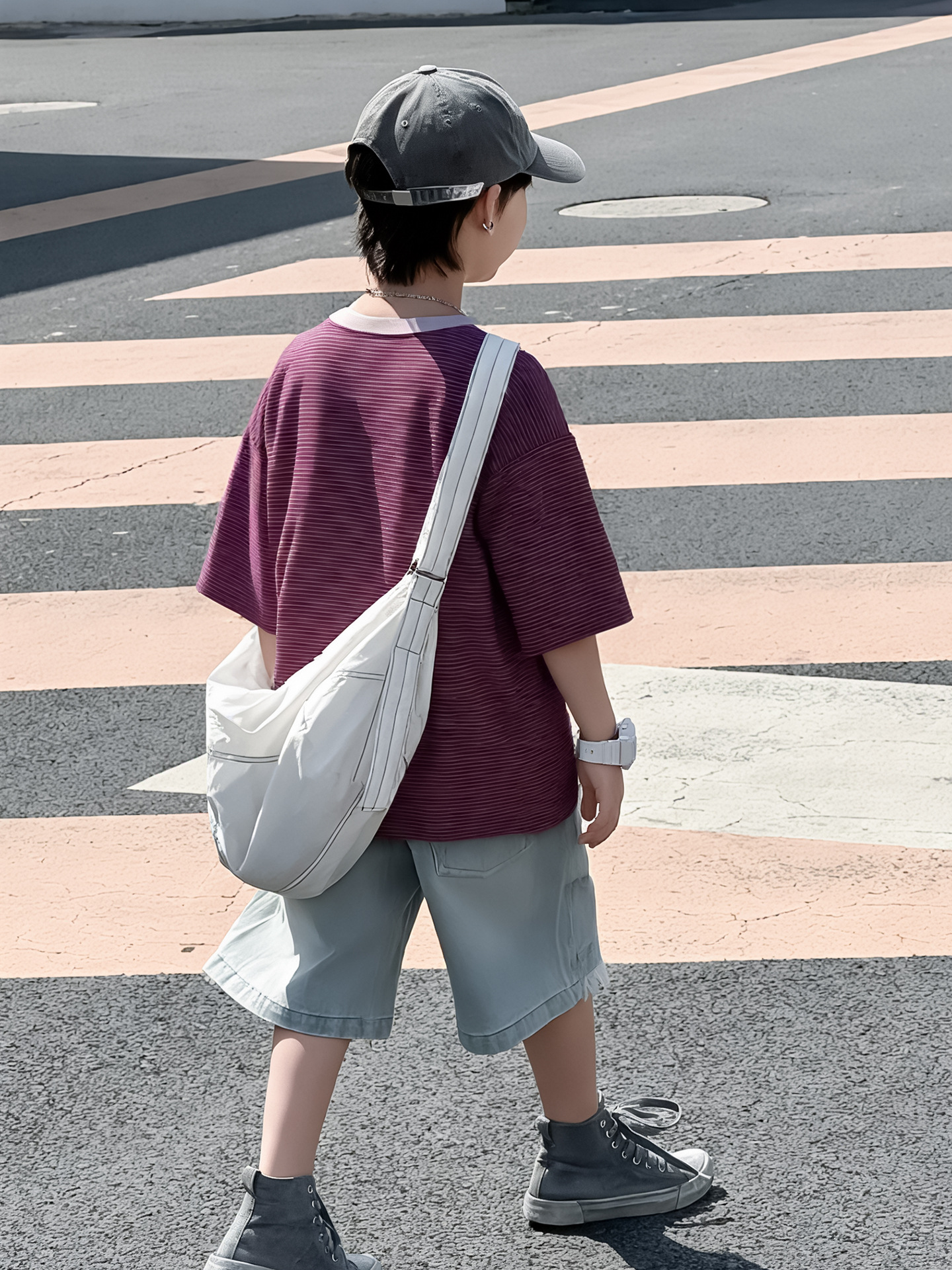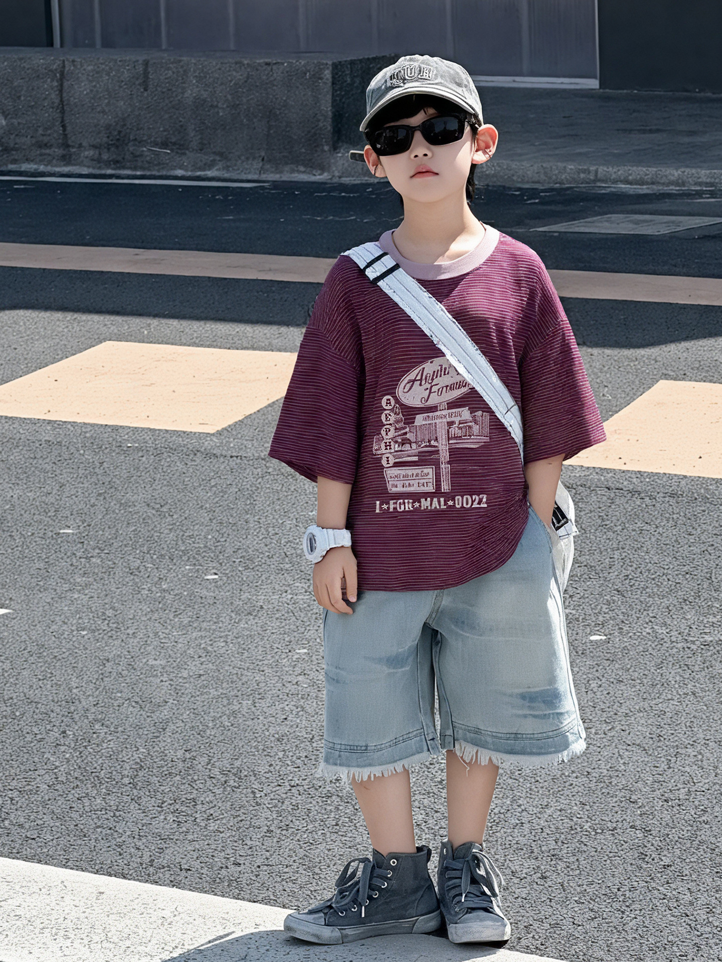 소년 여름 반팔 티셔츠 아동 여름 한국어 버전 2025 새로운 줄무늬 스포츠 유행 아동 의류 미국 스타일 느슨한