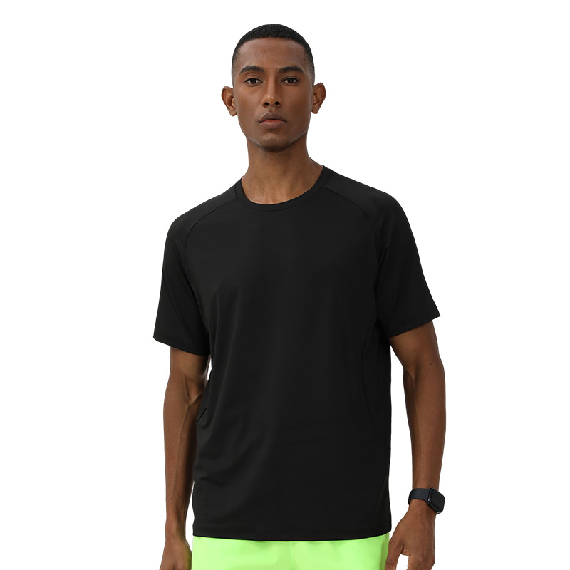 국경 간 새로운 HH 빠른 건조 스포츠 티셔츠 높은 탄성 솔리드 컬러 남성용 짧은 소매 언더암 펀칭 통기성 피트니스 짧은 소매스토어 가기