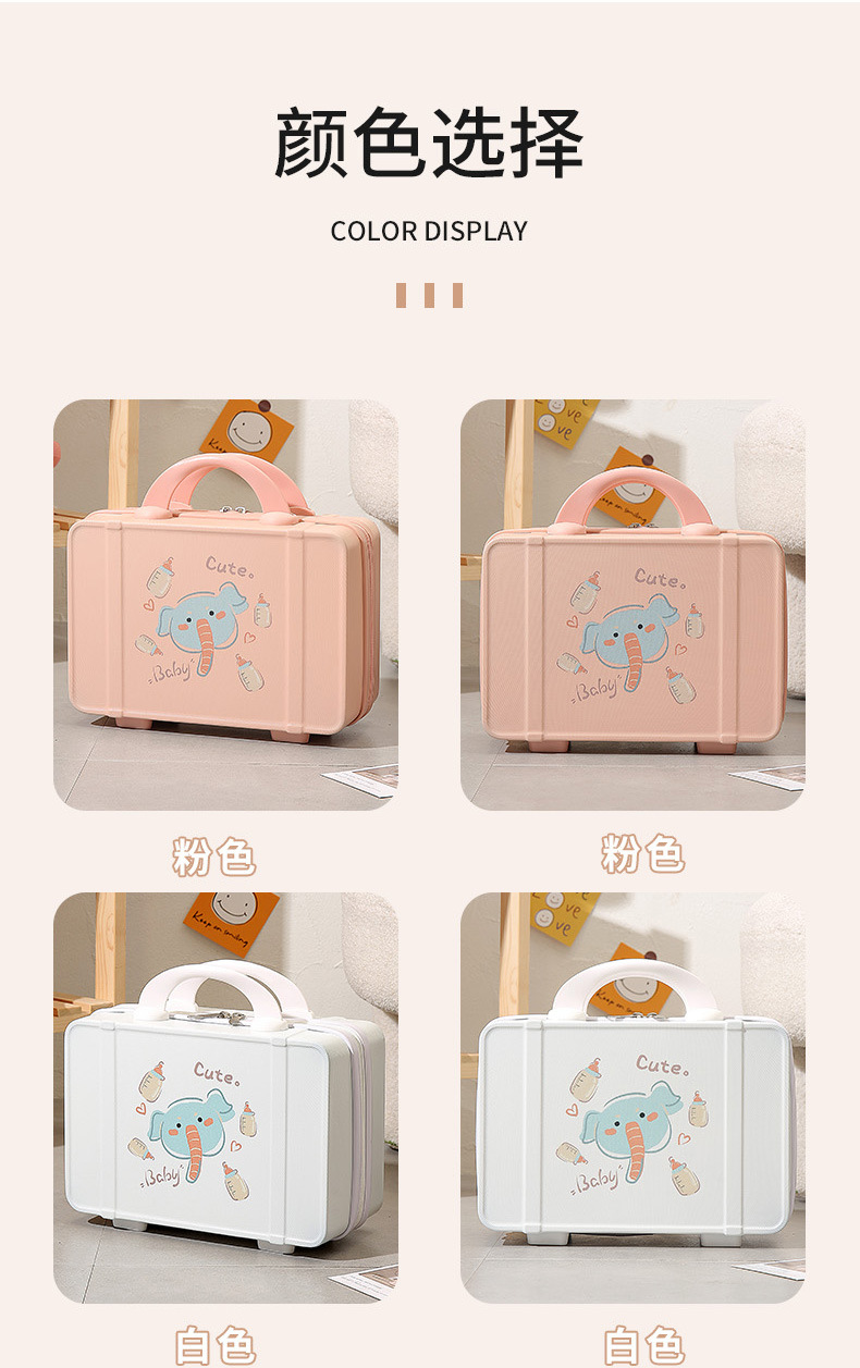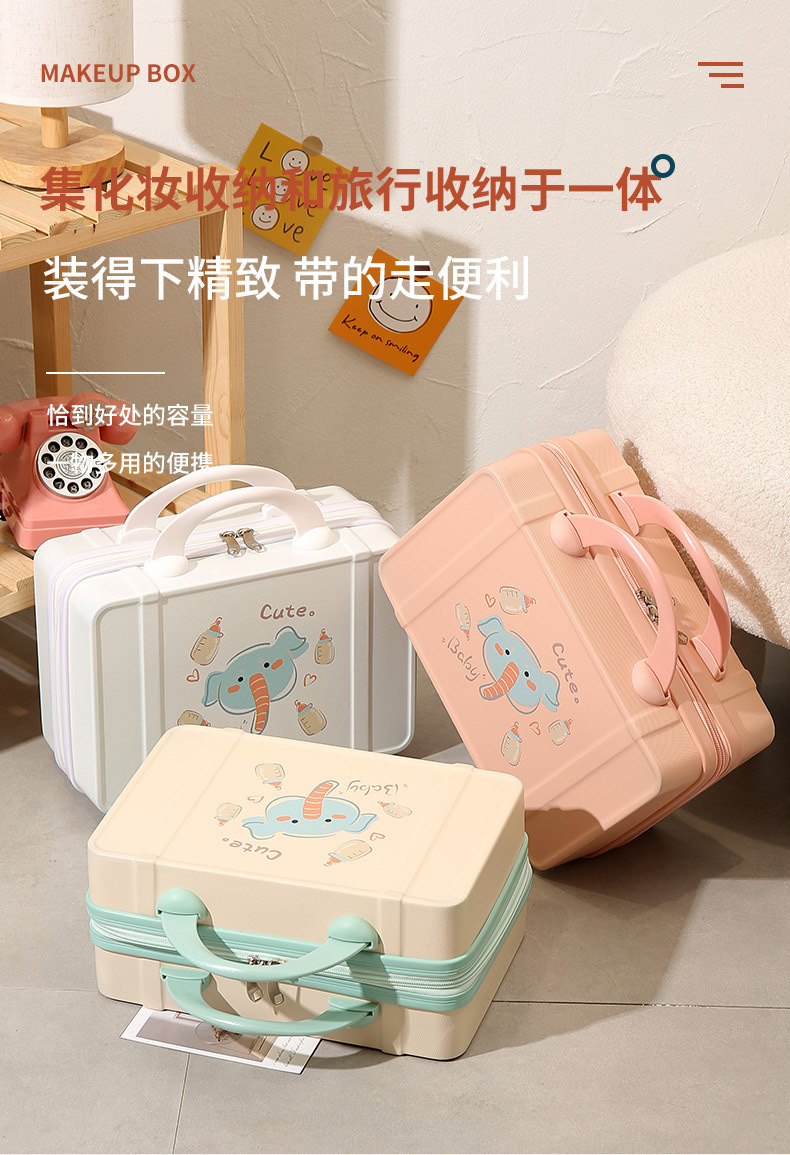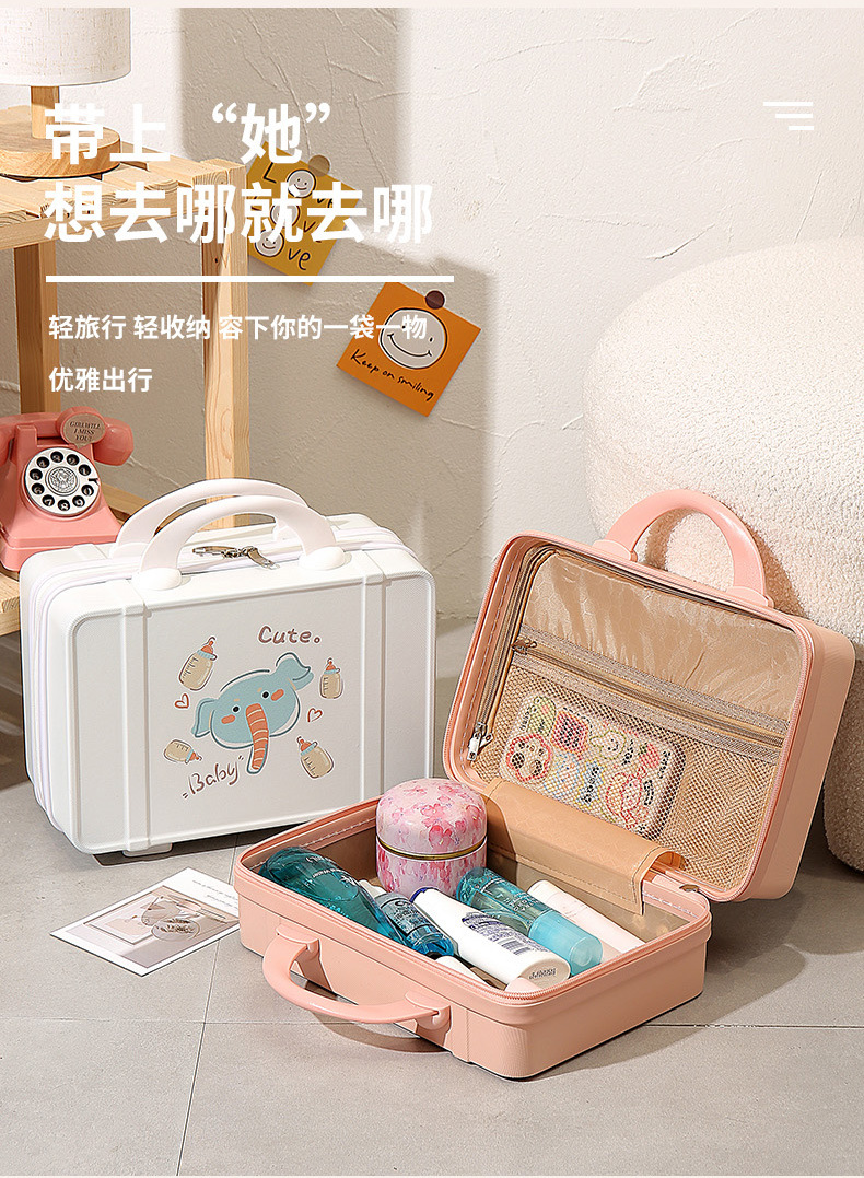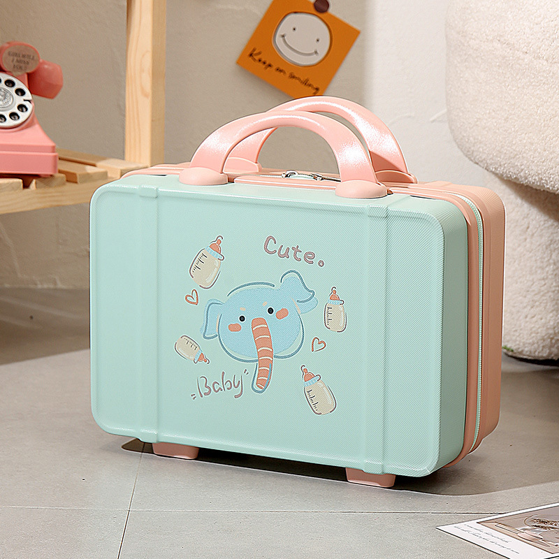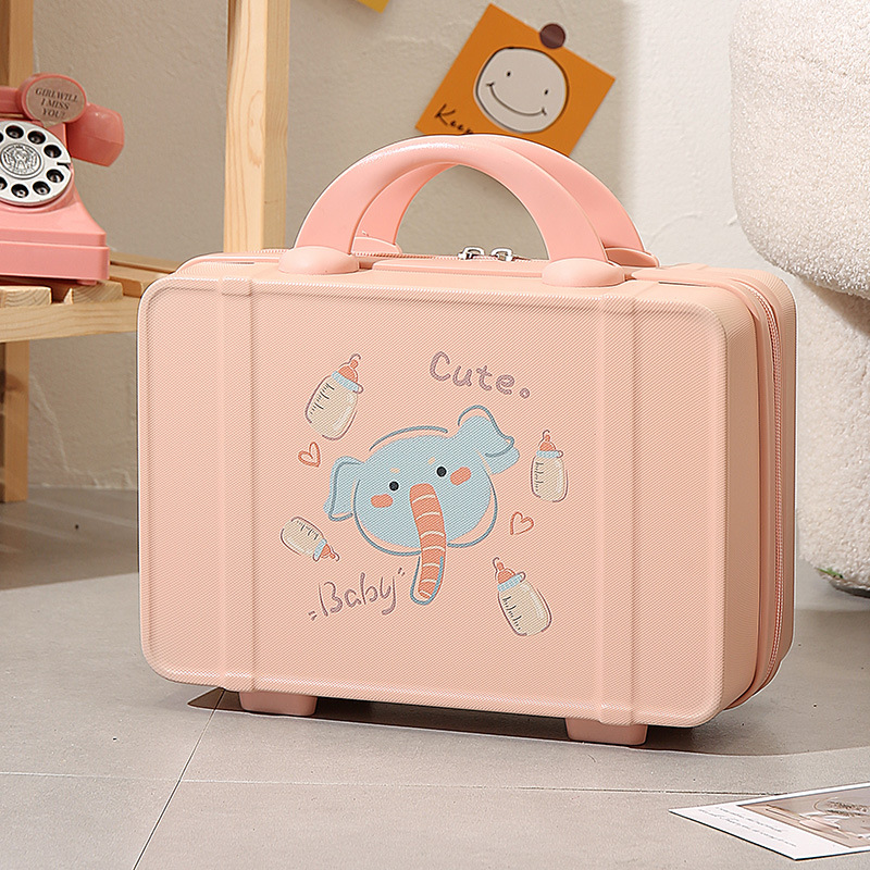 프린트 14inch 화장품 케이스 편리한 휴대용 케이스 기내용 화장품 가방 회전 바퀴 마카롱 컬러스토어 가기