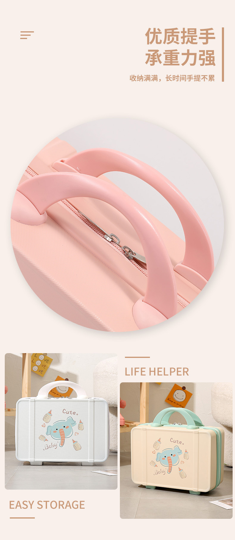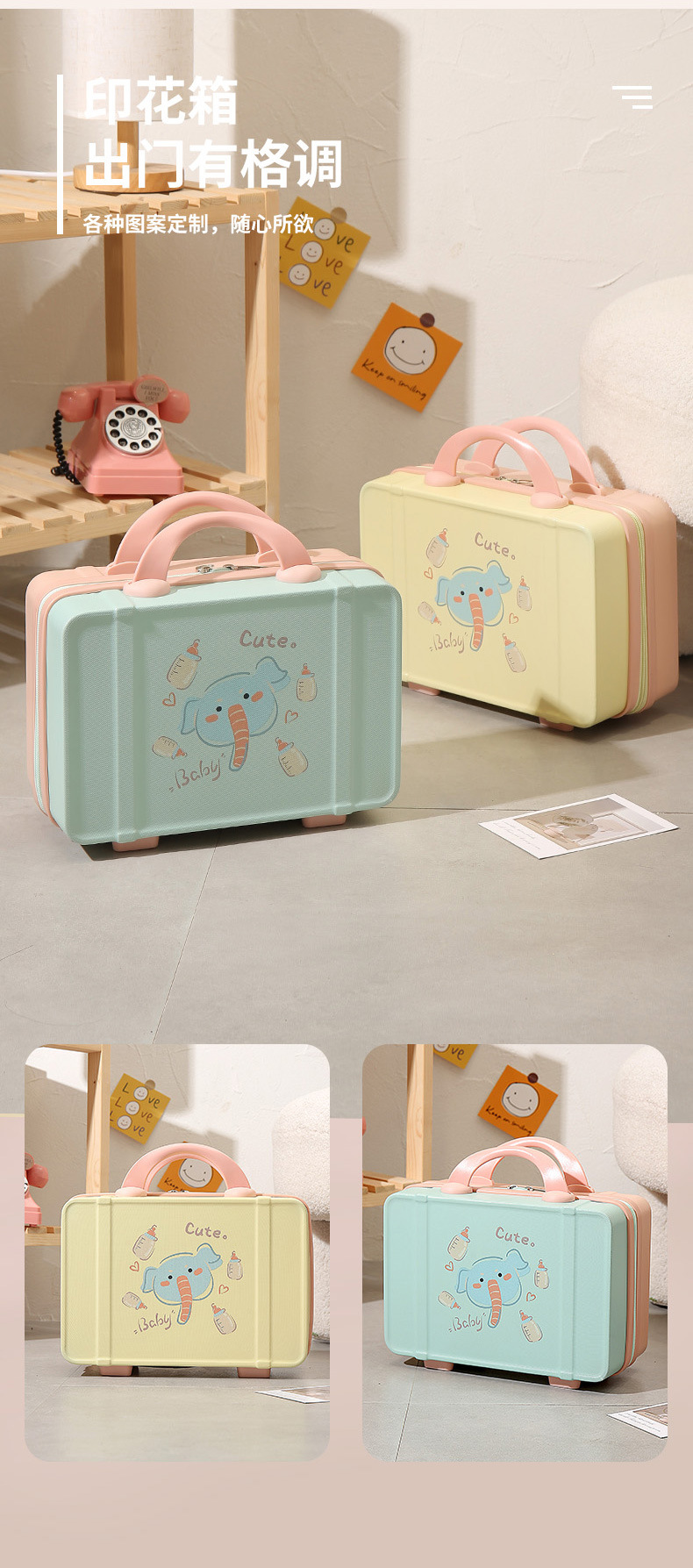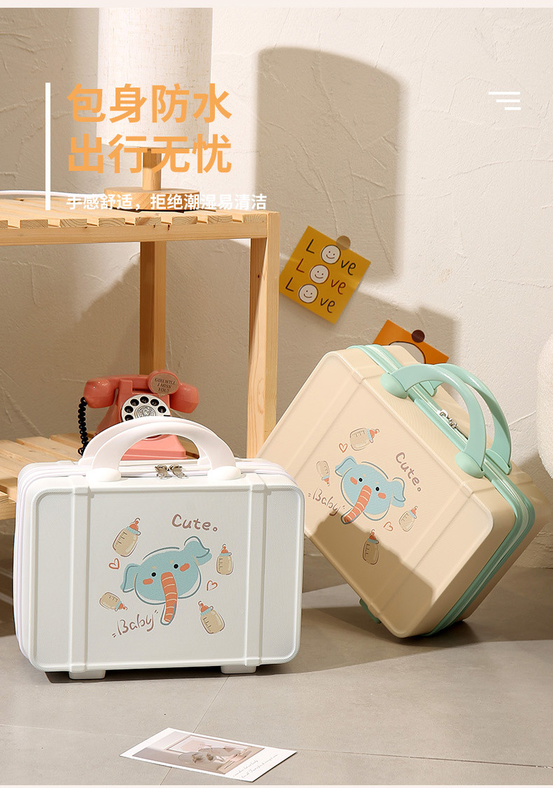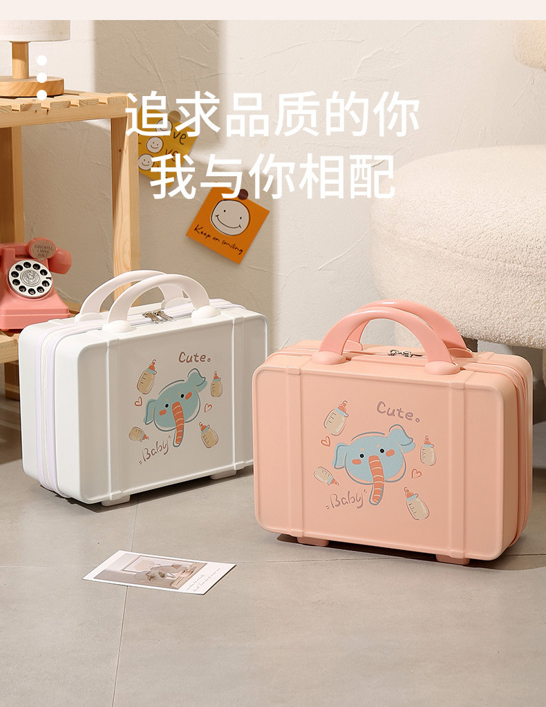 프린트 14inch 화장품 케이스 편리한 휴대용 케이스 기내용 화장품 가방 회전 바퀴 마카롱 컬러스토어 가기