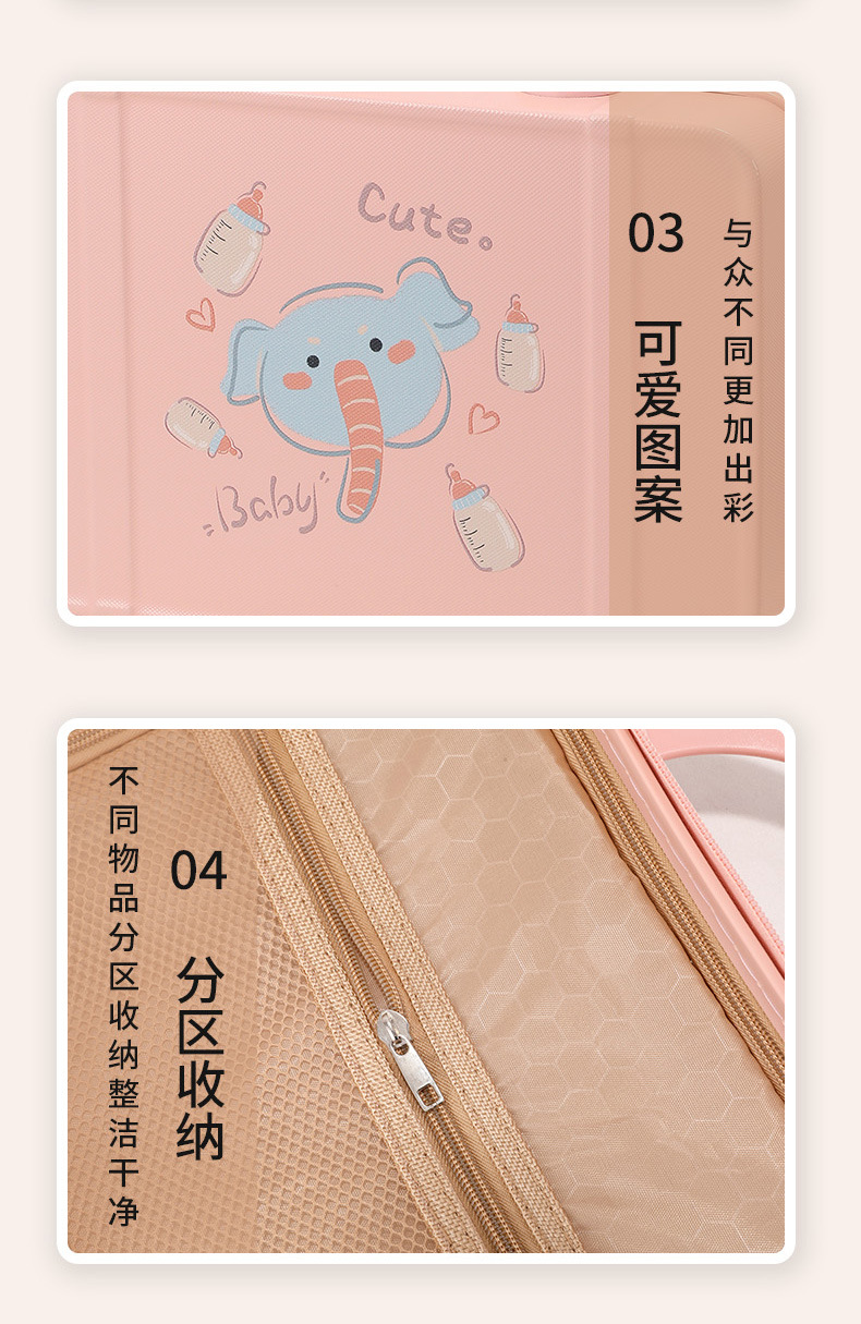 프린트 14inch 화장품 케이스 편리한 휴대용 케이스 기내용 화장품 가방 회전 바퀴 마카롱 컬러
