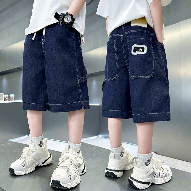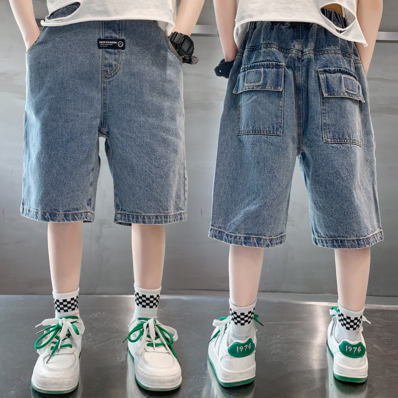 소년 여름 데님 반바지 2025 새로운 아동복 통기성 찢어진 중간 바지 소년의 세련된 얇은 5부 바지