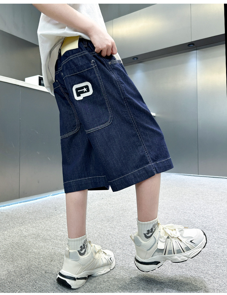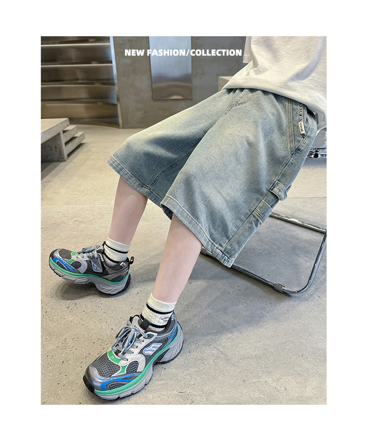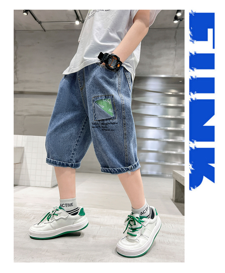 소년 여름 데님 반바지 2025 새로운 아동복 통기성 찢어진 중간 바지 소년의 세련된 얇은 5부 바지스토어 가기