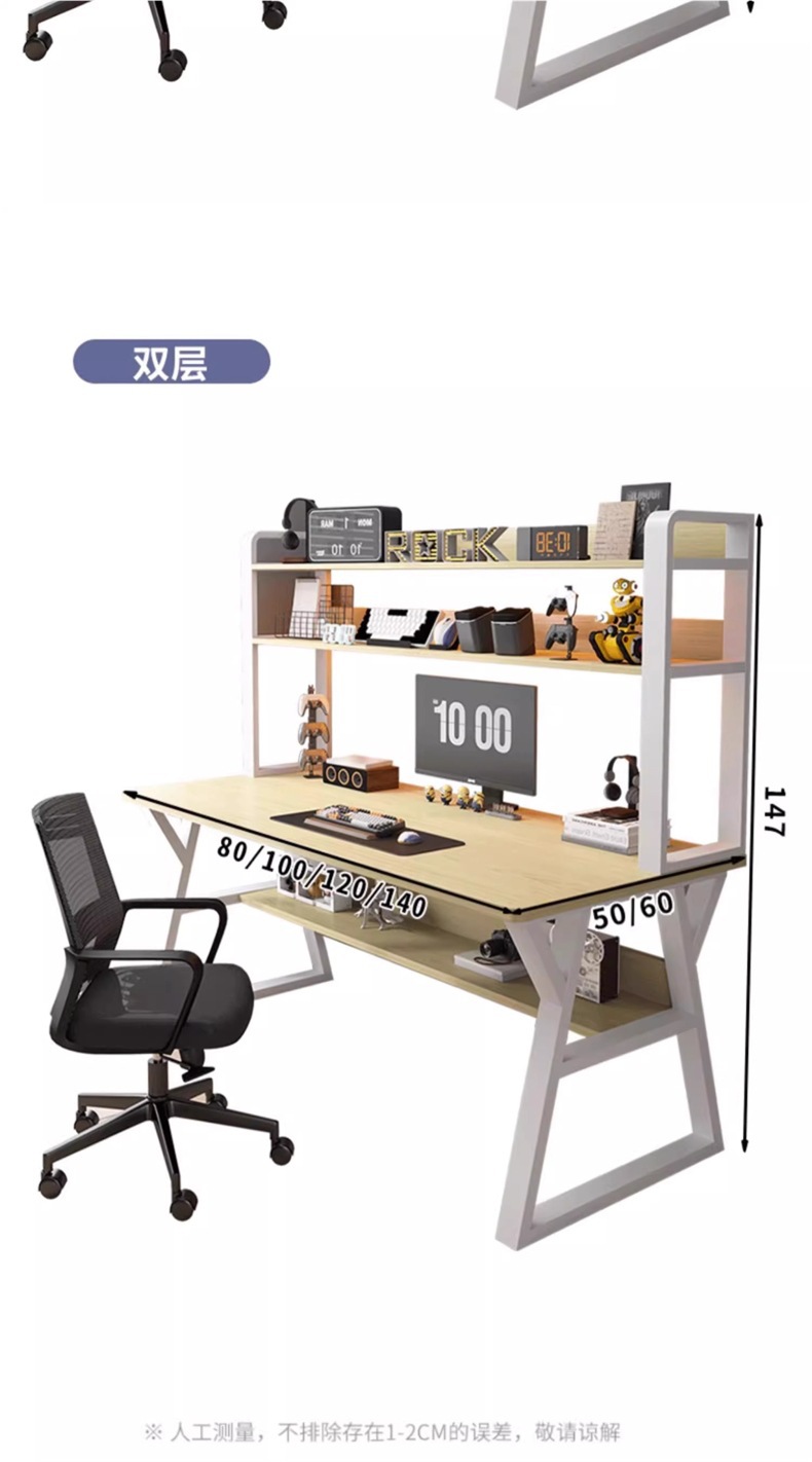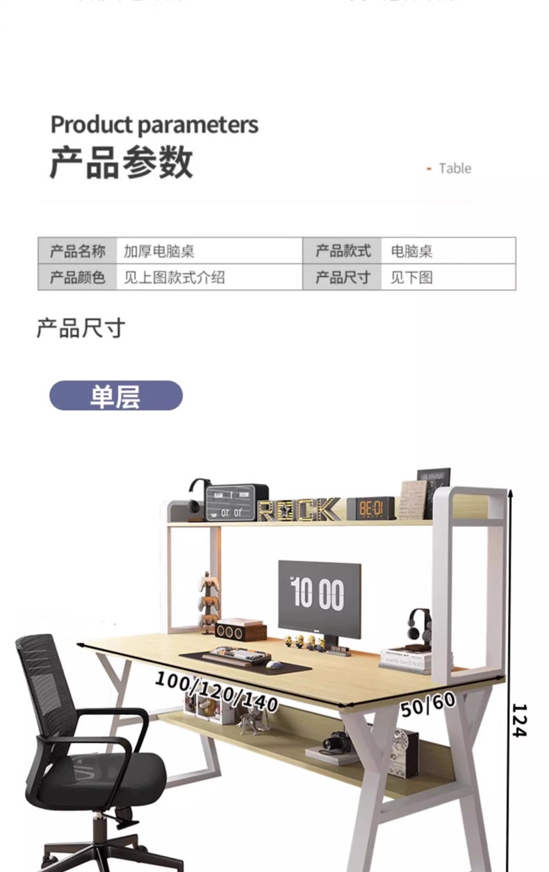 철제 컴퓨터 책상, 데스크탑 책상, 책장 일체형 책상 의자 세트, 침실 사무실 학생 학습용 책상