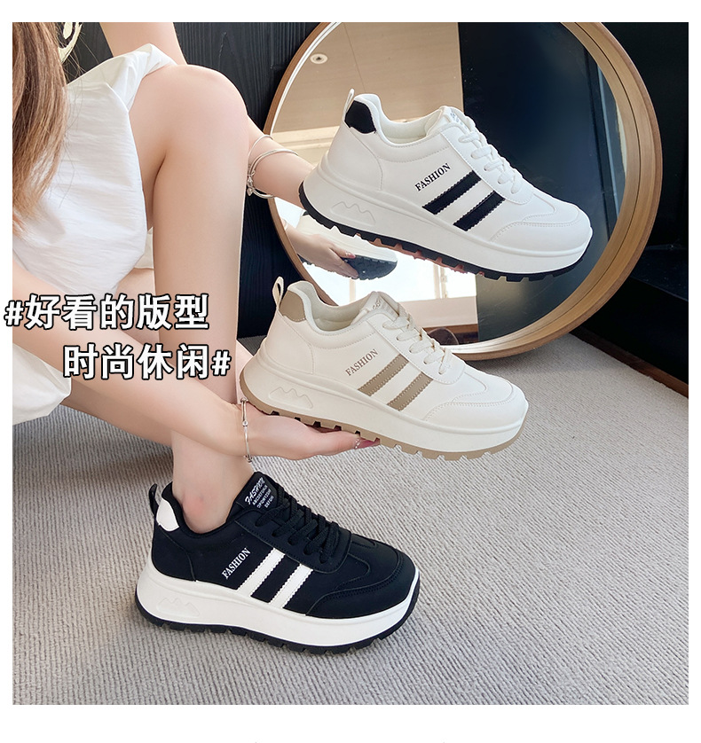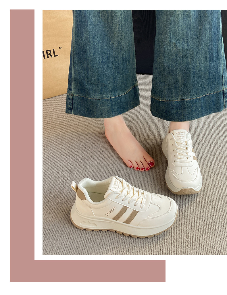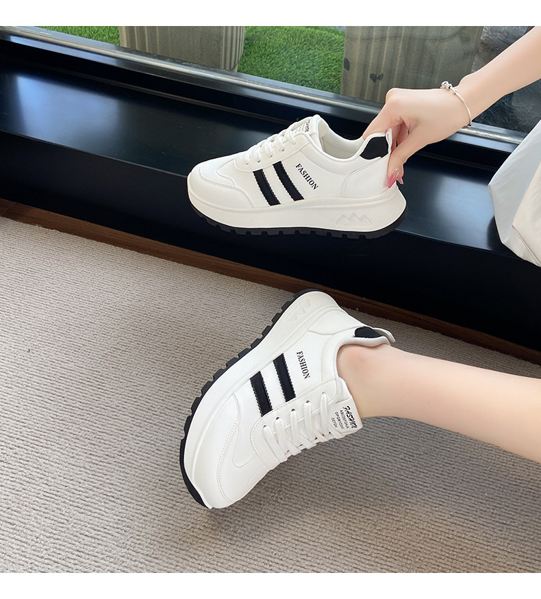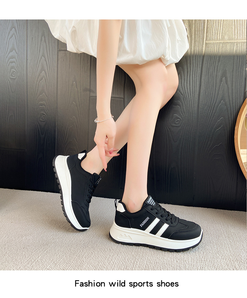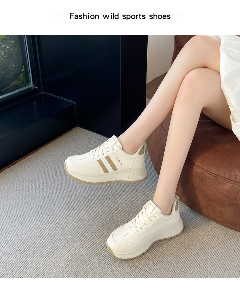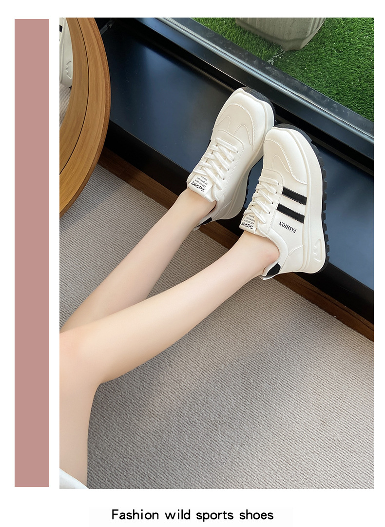 여성을위한 국경 간 스포츠 신발 2025 가을 새로운 두꺼운 밑창 줄무늬 캐주얼 신발 둥근 발가락 복고풍 높이 증가 아빠 신발 여성을위한