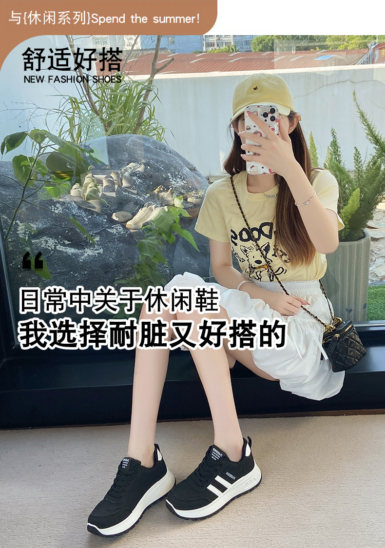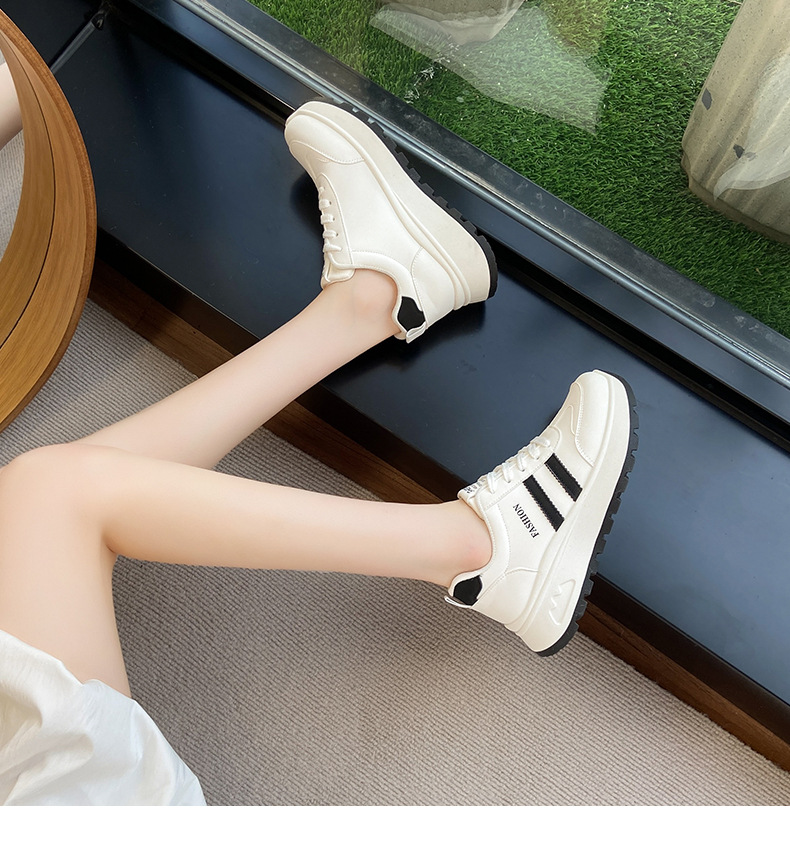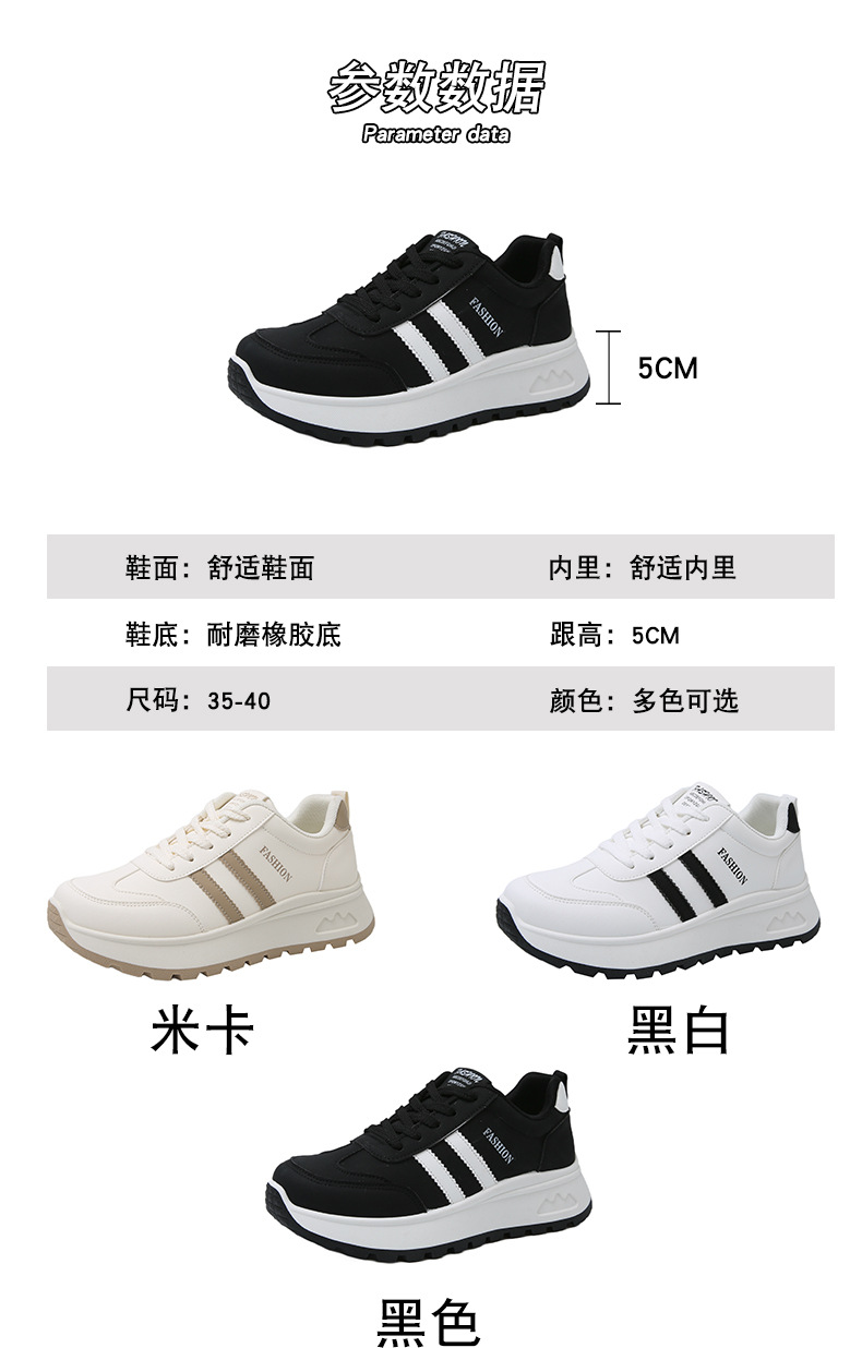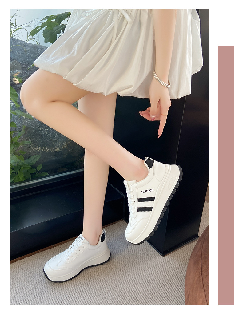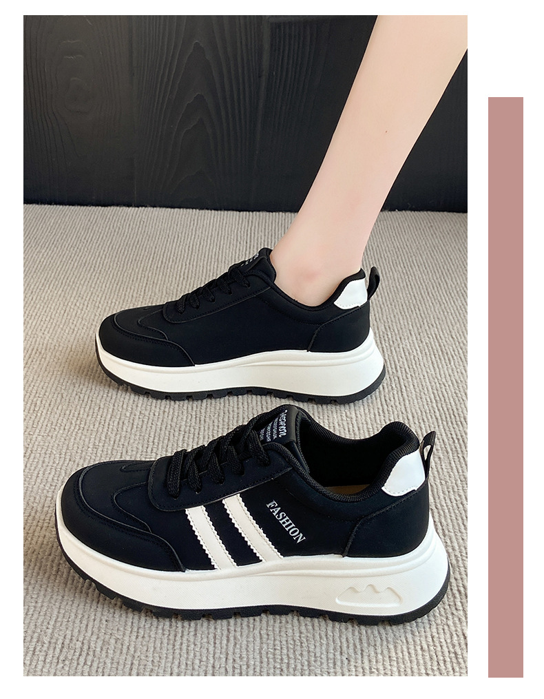여성을위한 국경 간 스포츠 신발 2025 가을 새로운 두꺼운 밑창 줄무늬 캐주얼 신발 둥근 발가락 복고풍 높이 증가 아빠 신발 여성을위한