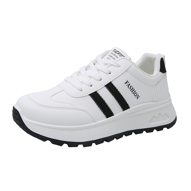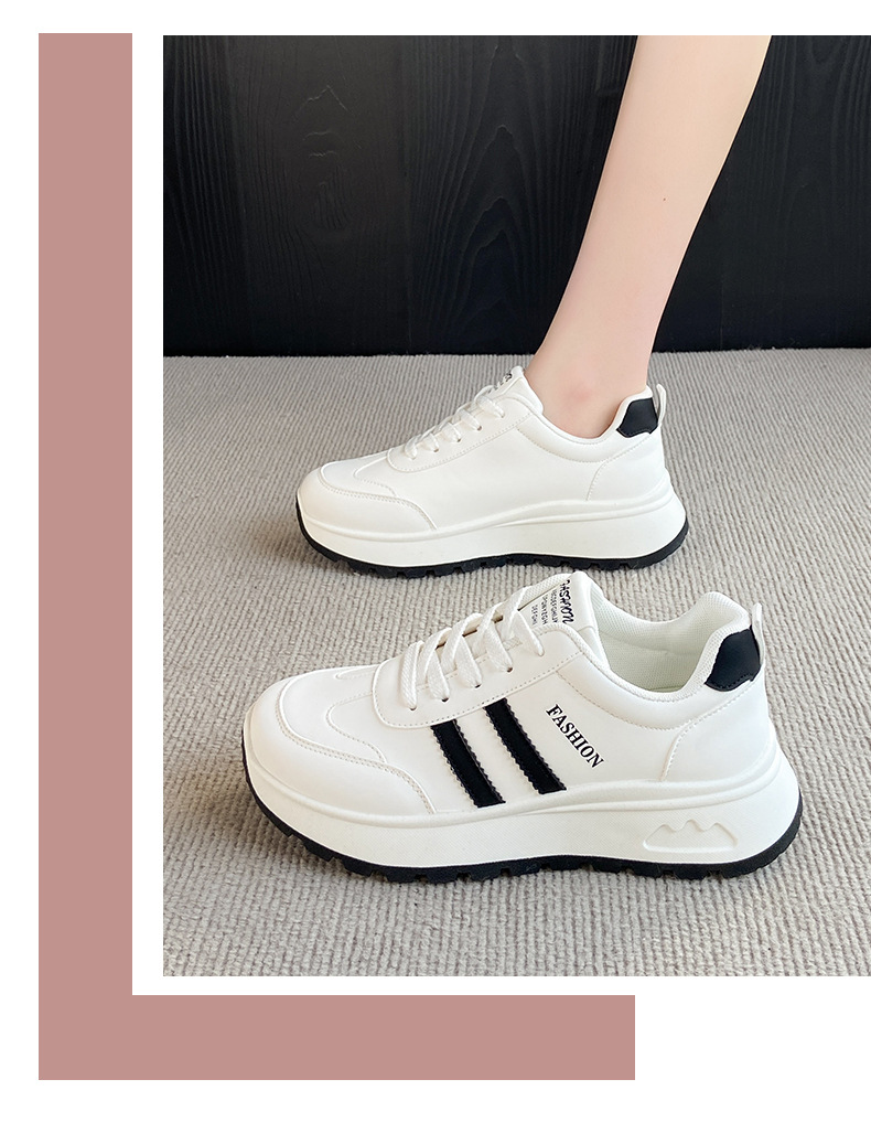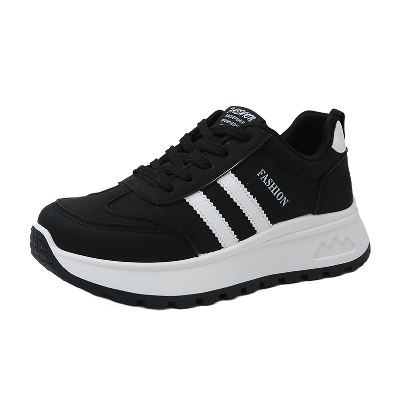 여성을위한 국경 간 스포츠 신발 2025 가을 새로운 두꺼운 밑창 줄무늬 캐주얼 신발 둥근 발가락 복고풍 높이 증가 아빠 신발 여성을위한스토어 가기