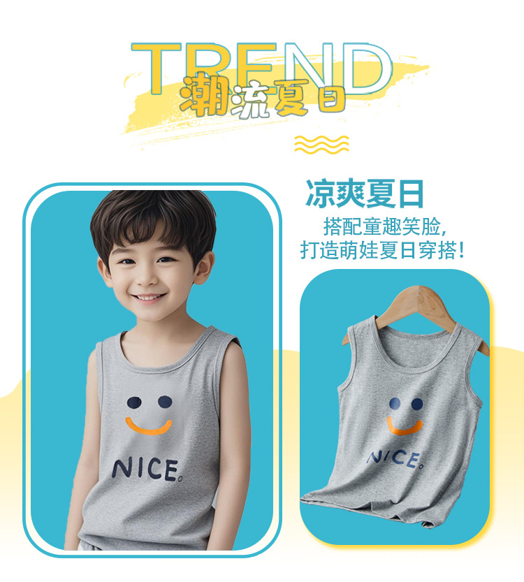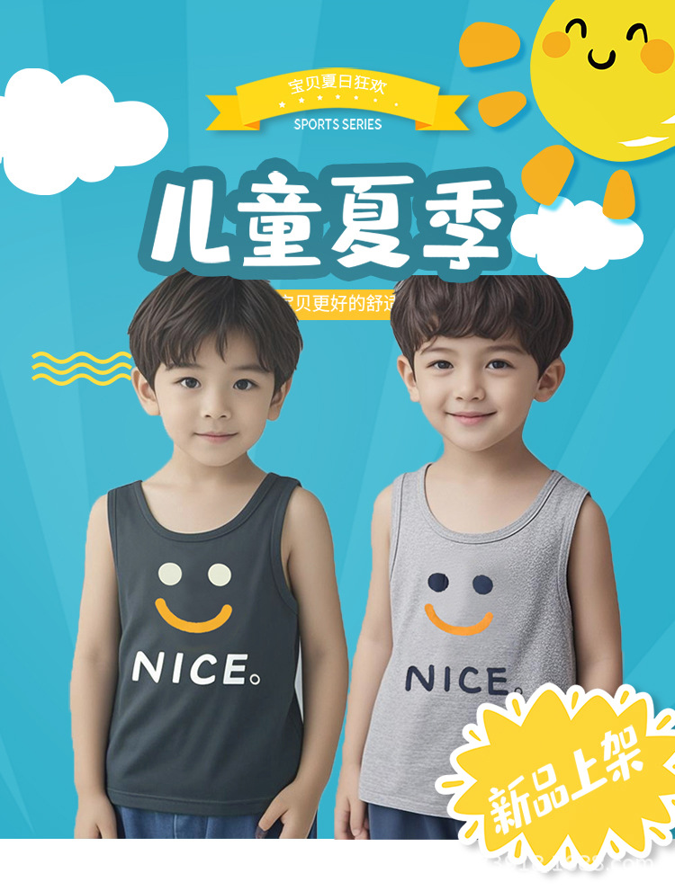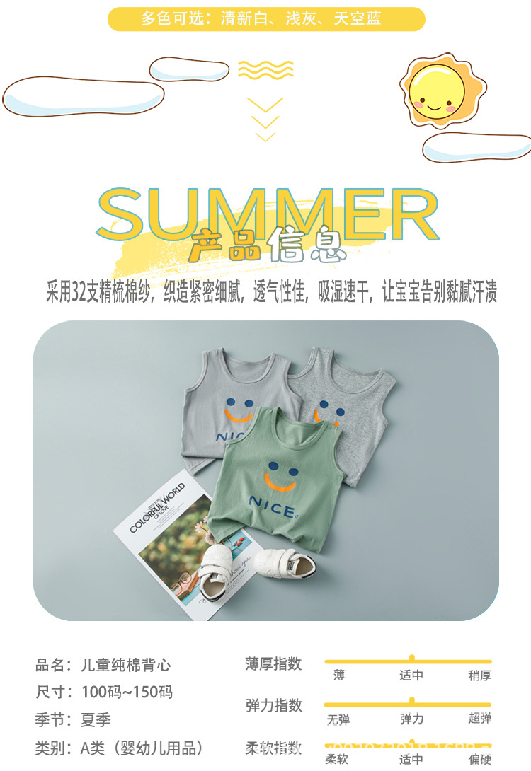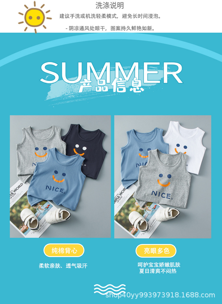 25 여름 어린이 조끼 소년 만화 I자형 조끼 통기성 면 조끼 캐주얼 이너 탑스토어 가기