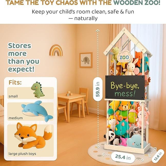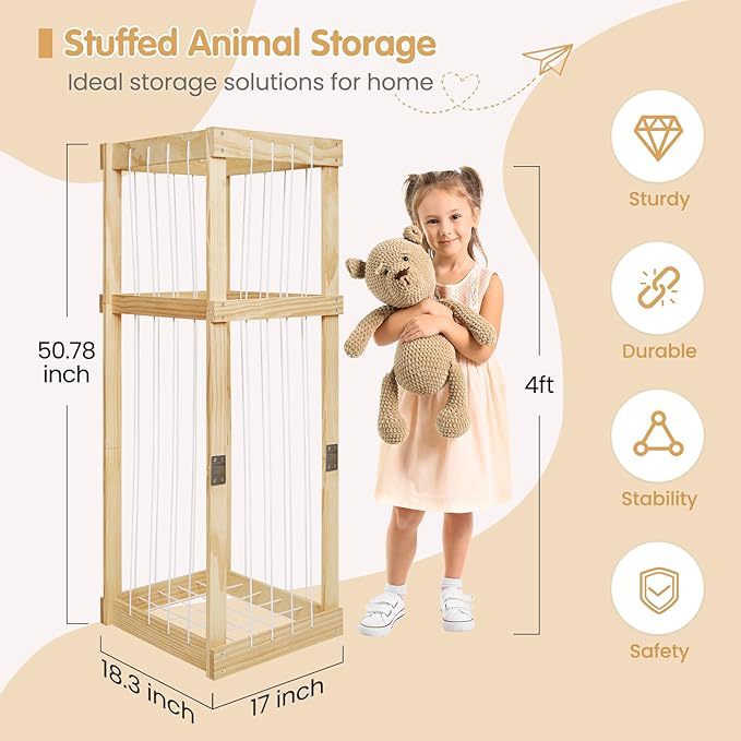 나무 장난감 보관 랙 어린이 플러시 장난감 보관 랙 가정용 단단한 나무 인형 인형 보관 및 정리 랙