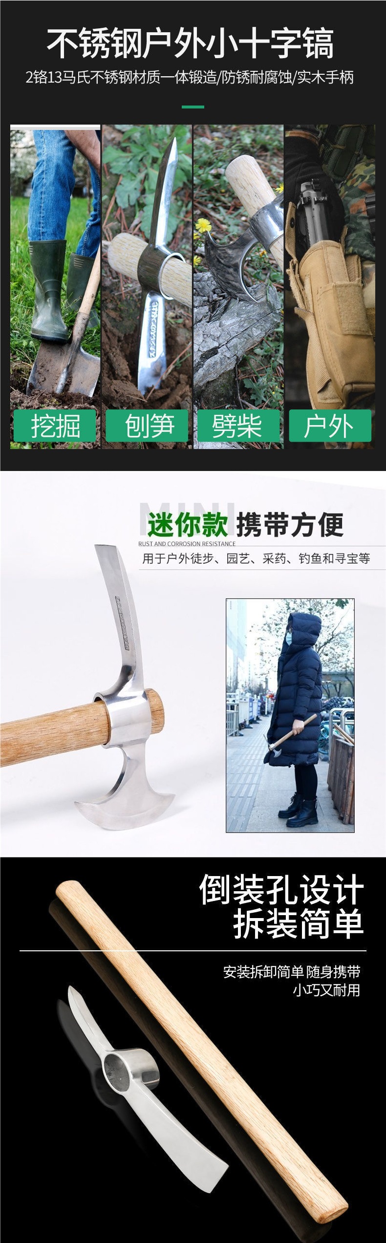 스테인레스 스틸 소형 도끼, 야외 도끼, 순수 강철, 고경도, 나무 뿌리 파기, 죽순, 양 도끼, 휴대용 얼음 도끼, 십자형 도끼스토어 가기