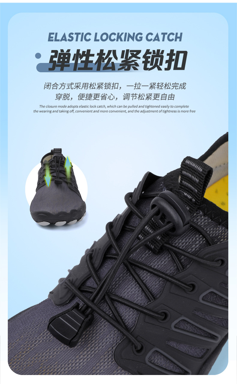 비치슈즈, 다섯손가락 강하이킹슈즈, 웨이딩슈즈, 낚시 및 수영슈즈, 다이빙슈즈, 종합피트니스슈즈, 요가런닝슈즈