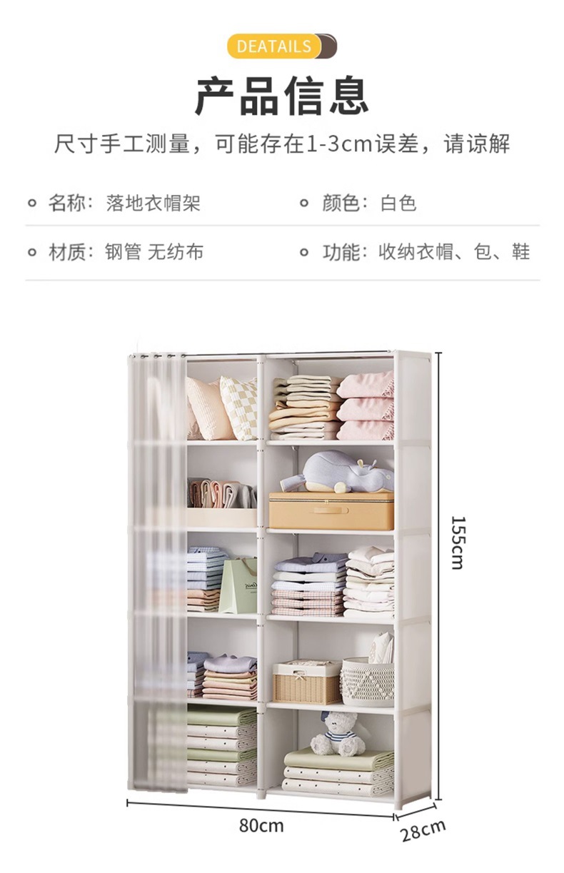 방진 옷장 홈 침실 보관 간단한 조립 보관 캐비닛 교수형 옷장 임대 작은 옷장 보관 랙