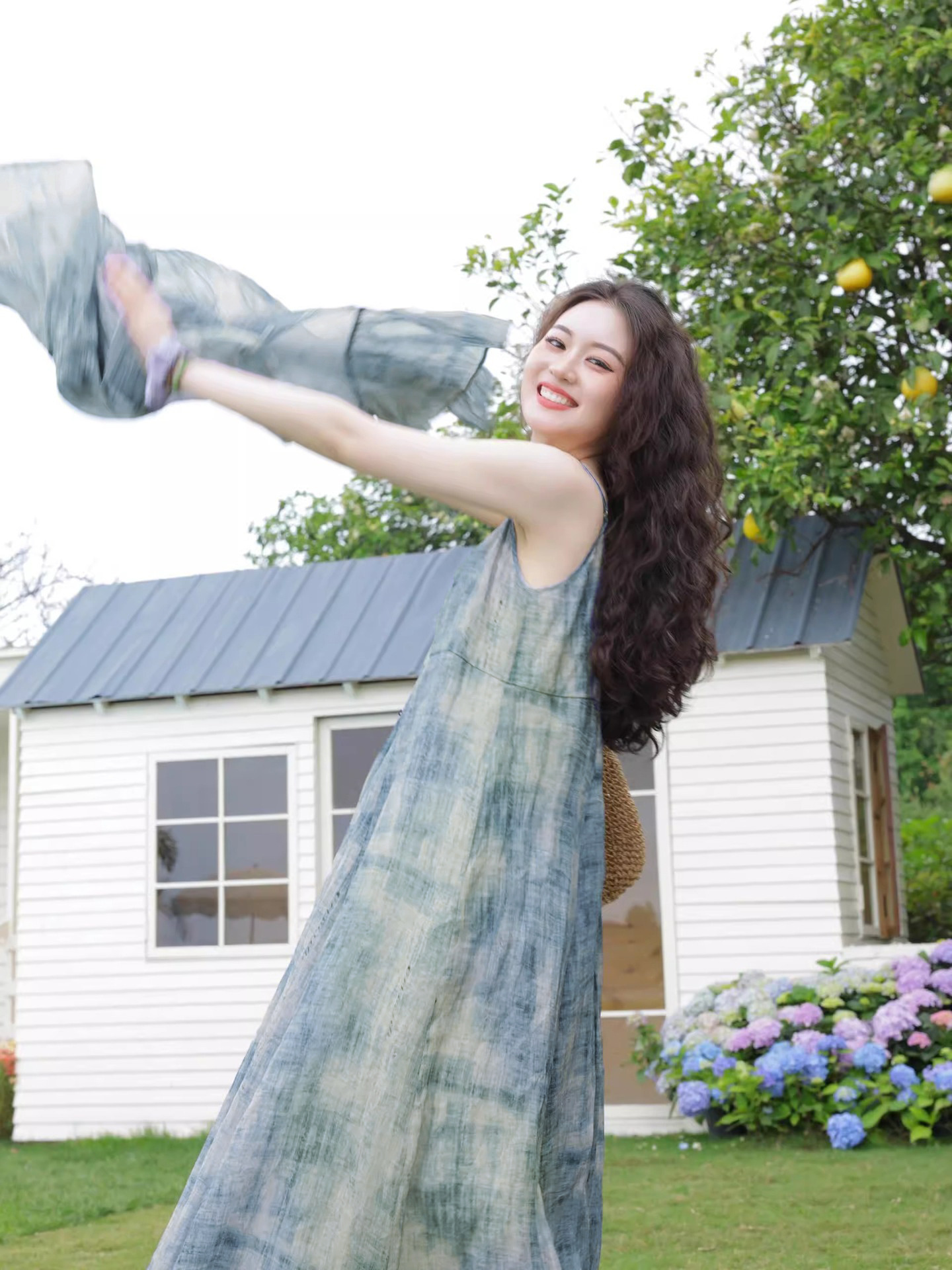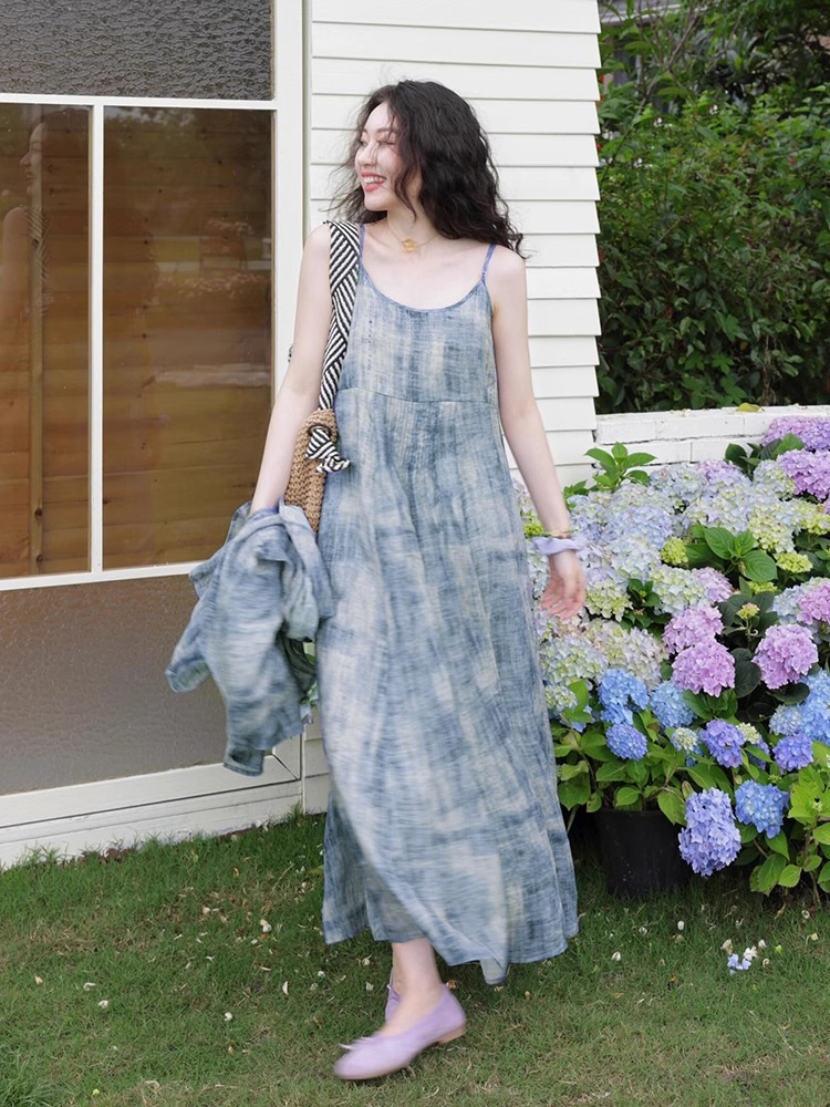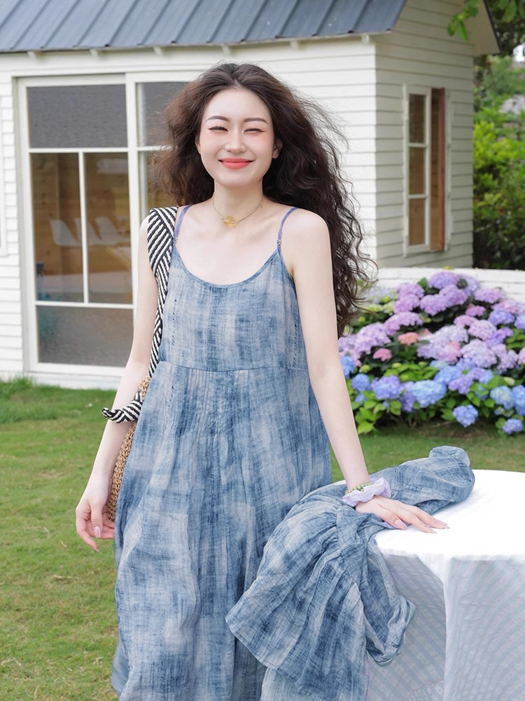 2026 봄/여름 투피스 세트 라미 프린트 셔츠 탑과 멜빵 원피스 B0423 롱 드레스스토어 가기