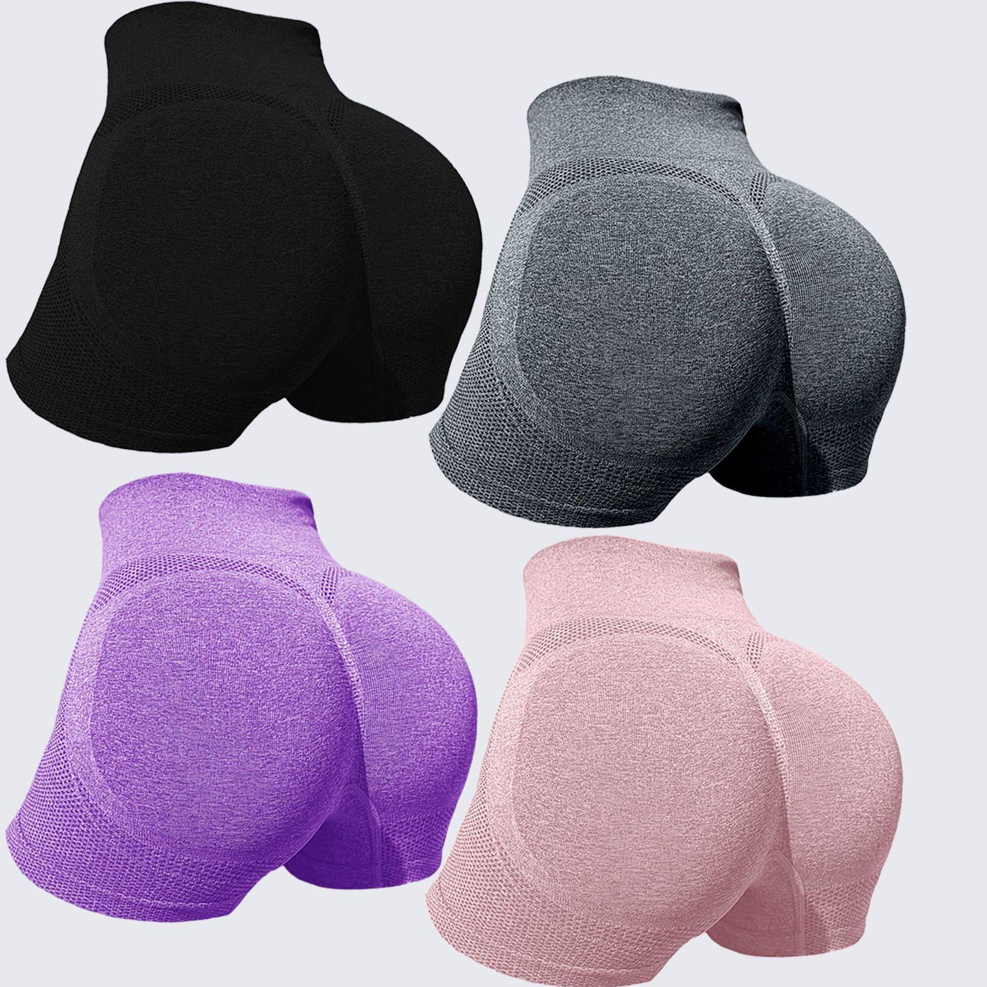 고품질 크로스보더 웃는 얼굴 복숭아 엉덩이 반바지 하이 웨이스트 타이트 3점 피트니스 스포츠 요가 반바지 여성용 5 사이즈스토어 가기