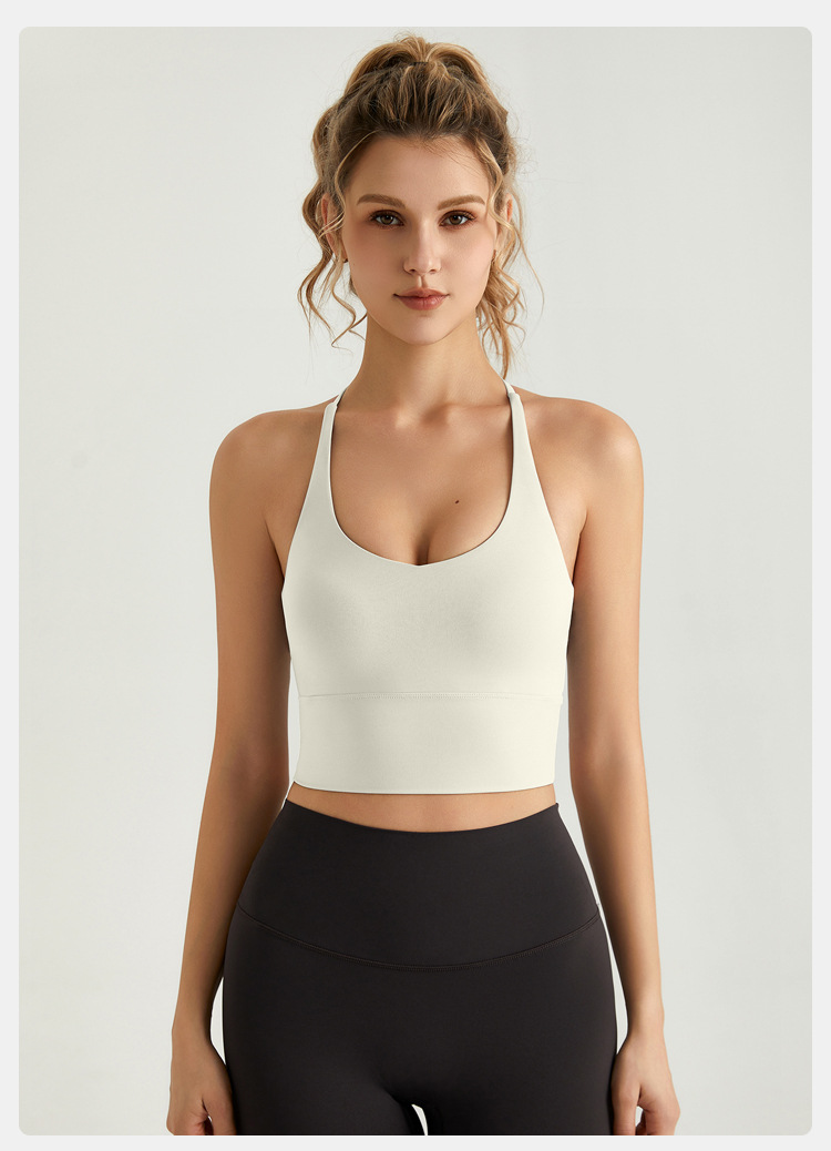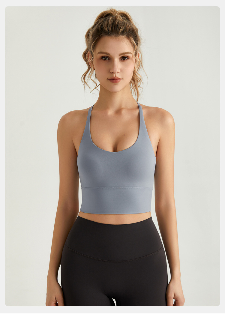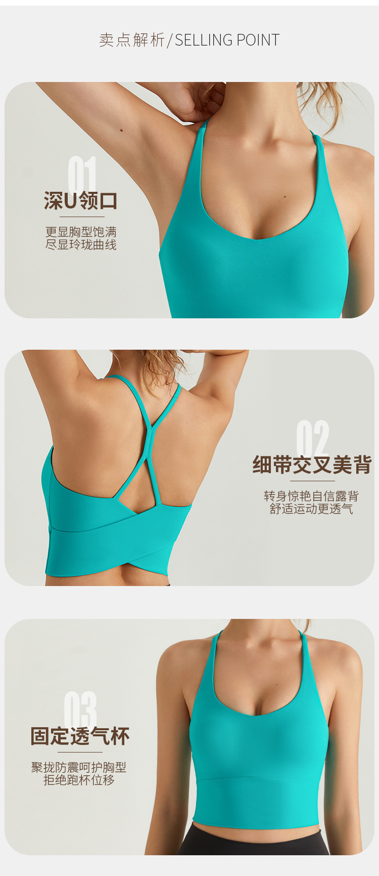 여름용 스포츠 캐미솔 여성용 일체형 고정형 가슴 패드 피트니스 브라 충격 방지 크로스백 요가 속옷스토어 가기