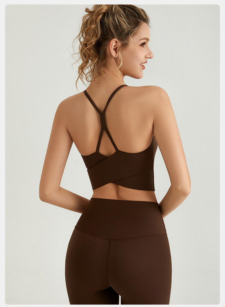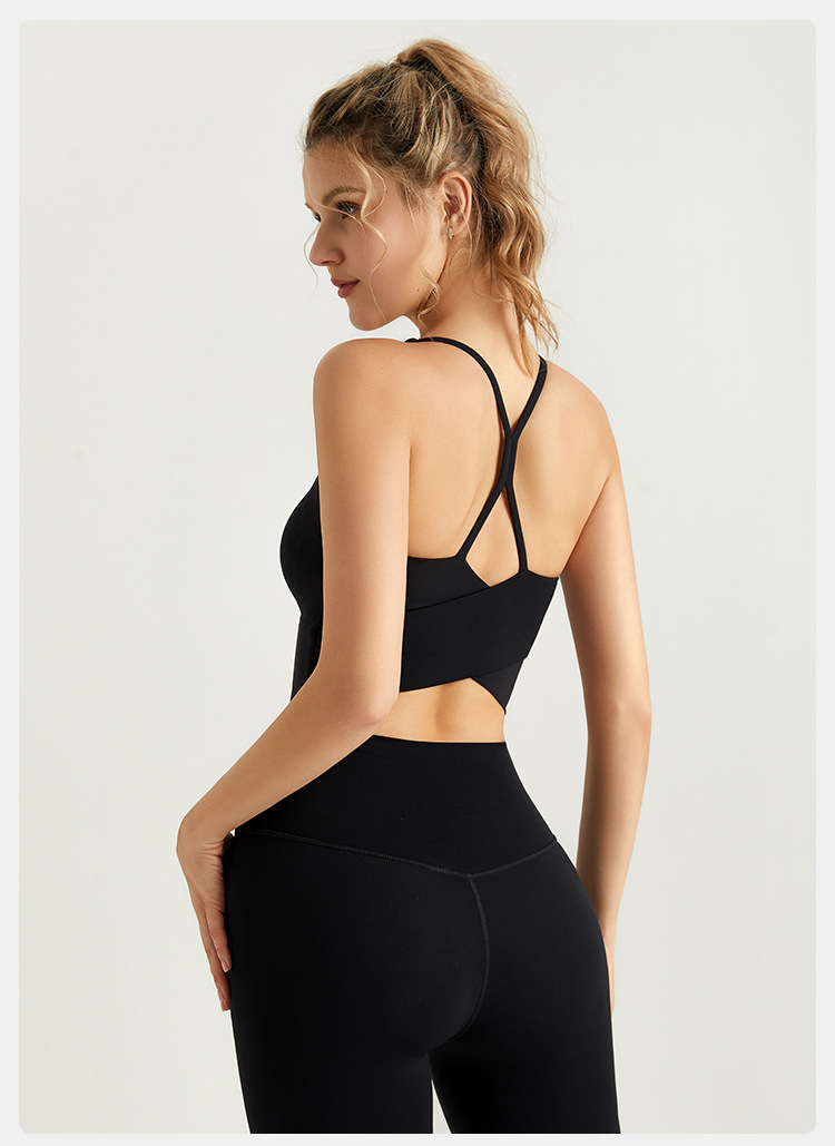 여름용 스포츠 캐미솔 여성용 일체형 고정형 가슴 패드 피트니스 브라 충격 방지 크로스백 요가 속옷