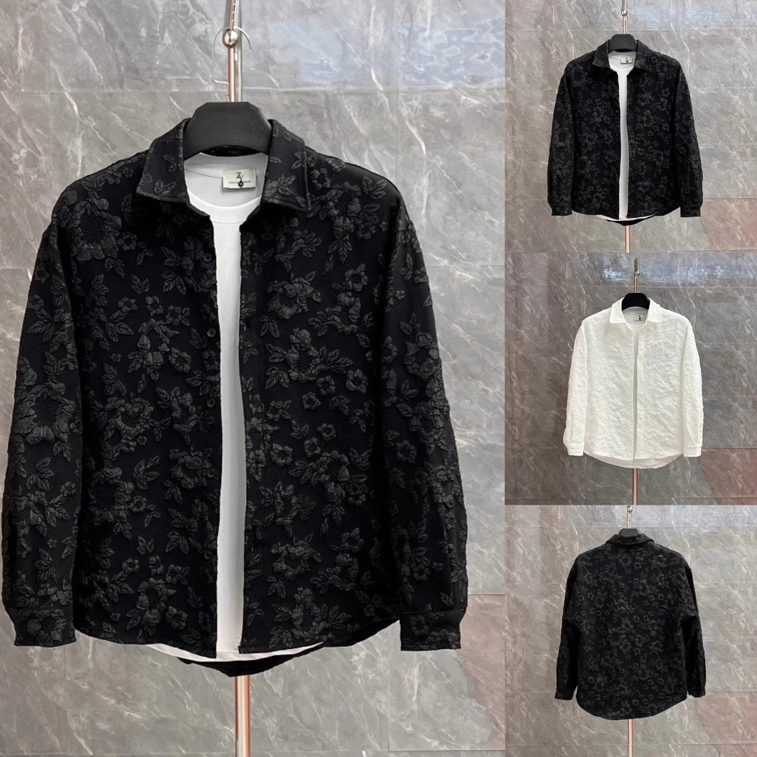 남성용 양각 엠보싱 핸섬 긴팔 스왈로우 테일 라펠 셔츠, 봄 트렌드, 다재다능하고 루즈한 커플용 얇은 재킷스토어 가기