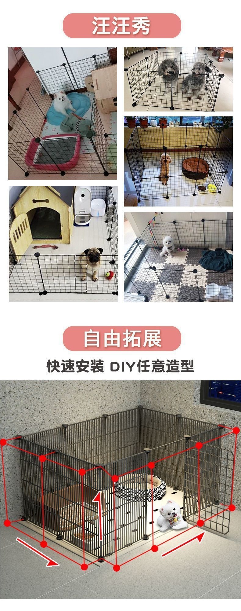 개 울타리 유형 가정용 실내 애완 동물 울타리 테디 비숑 코기 치와와 작은 개 문 울타리 개 케이지스토어 가기