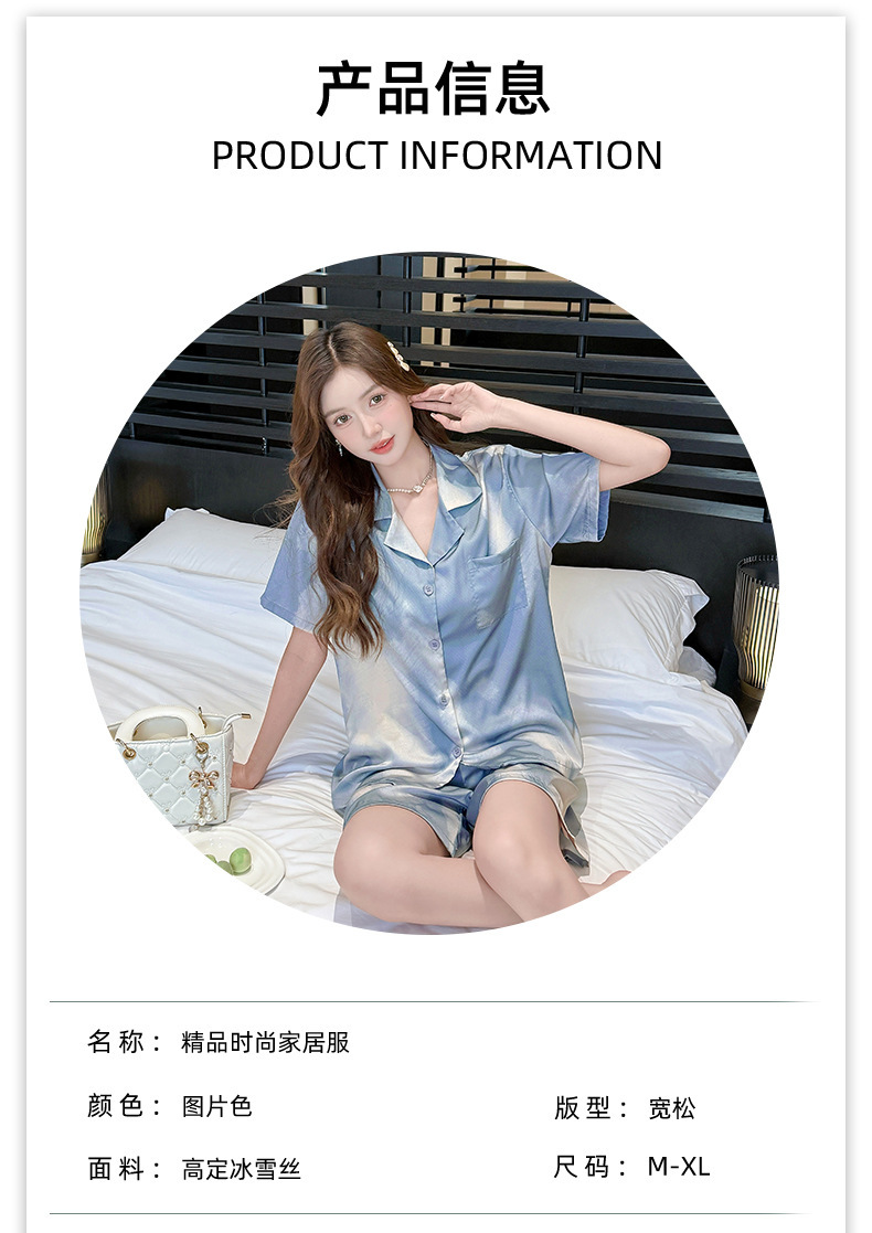 소스 공장 제품 2025 아이스 실크 커플 잠옷 여성 봄 얇은 반팔 Douyin 라이브 패션 인쇄 유행 브랜드 웹스토어 가기