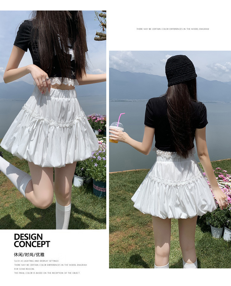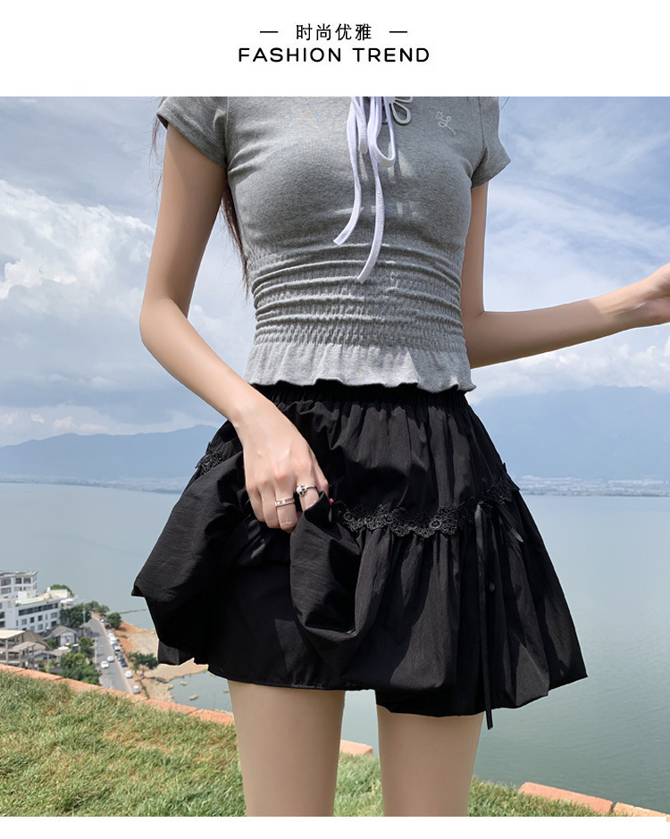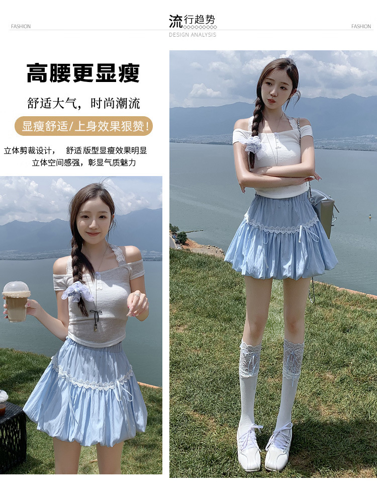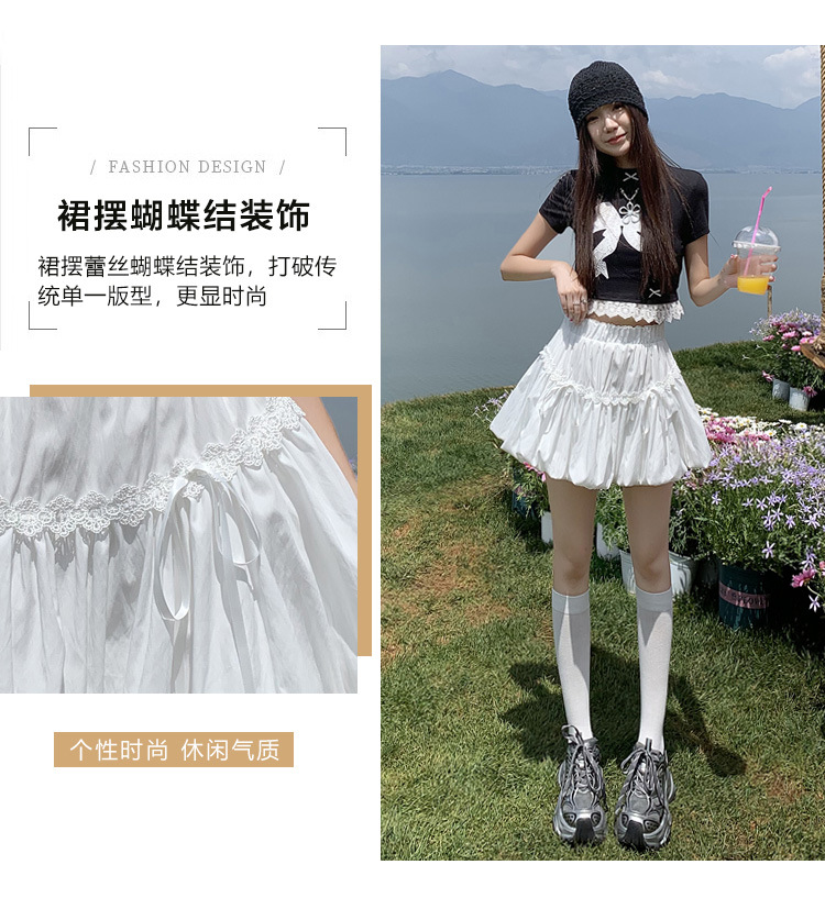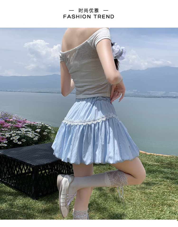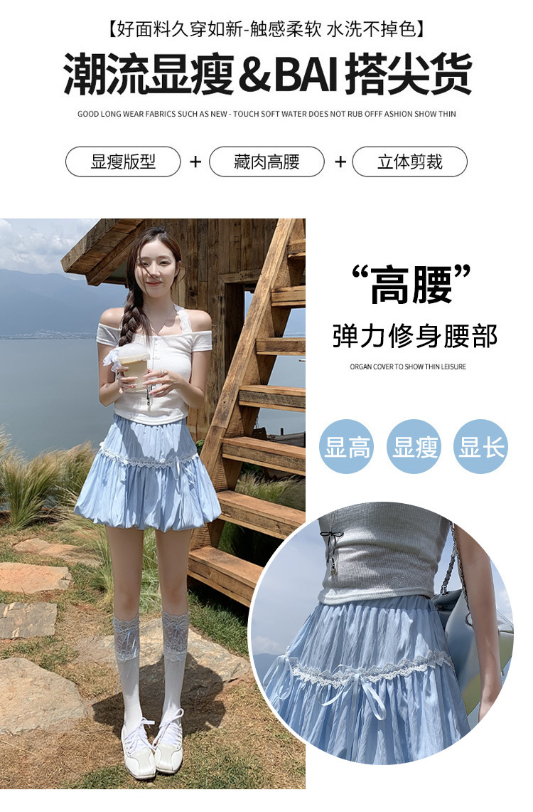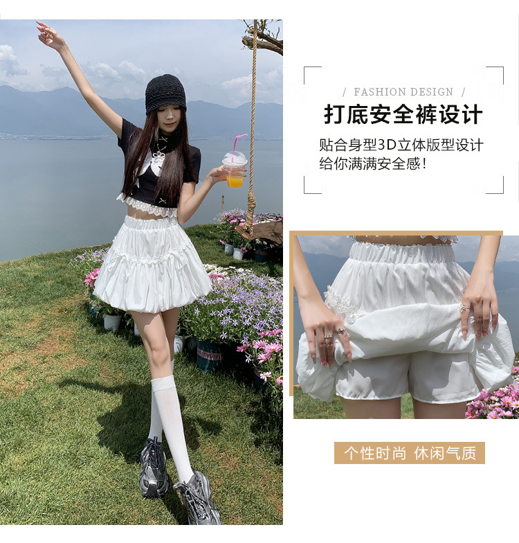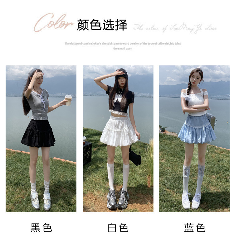 인터넷 연예인 같은 스타일의 랜턴 스커트 여성용 신축성 있는 하이 웨이스트 슬리밍 및 다리 길이 노출 방지 버블 스커트 짧은 스커트스토어 가기