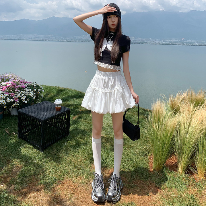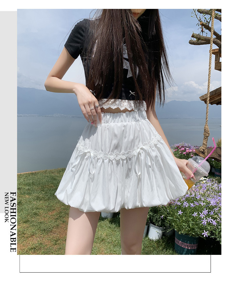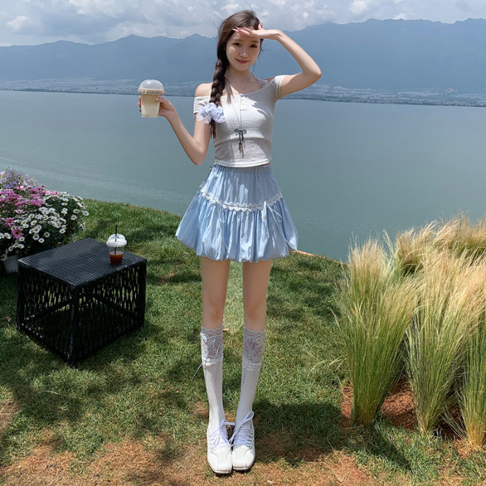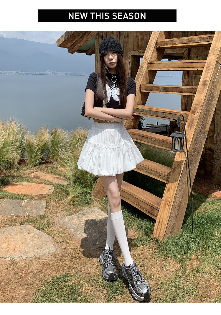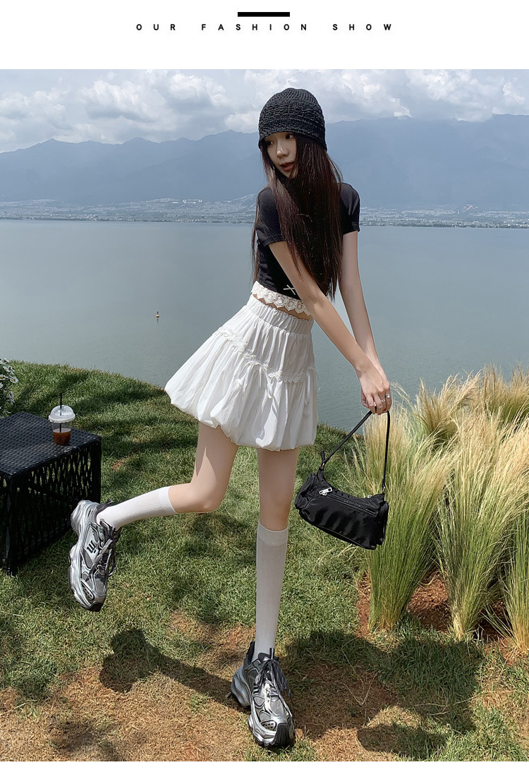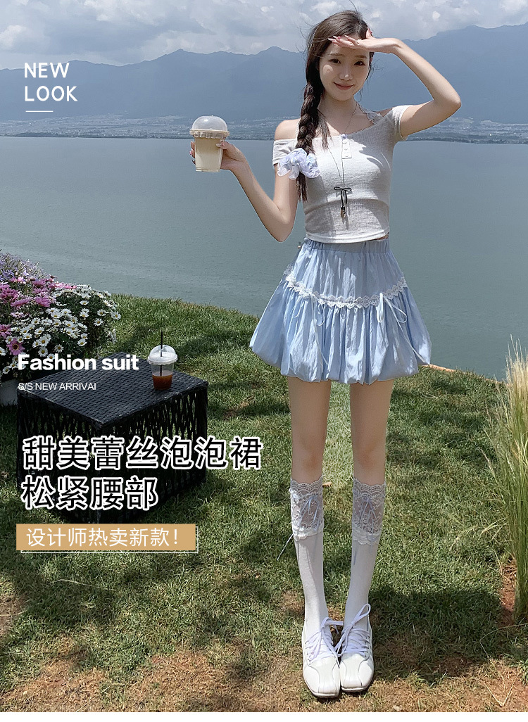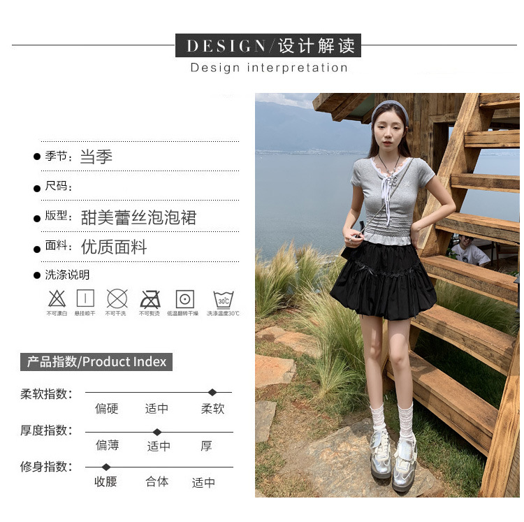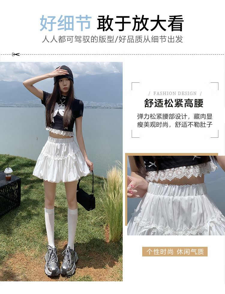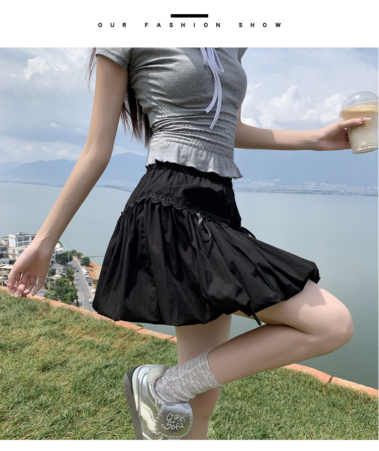 인터넷 연예인 같은 스타일의 랜턴 스커트 여성용 신축성 있는 하이 웨이스트 슬리밍 및 다리 길이 노출 방지 버블 스커트 짧은 스커트스토어 가기