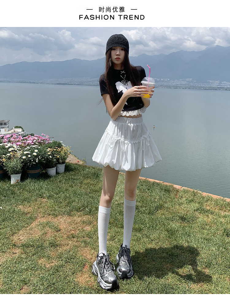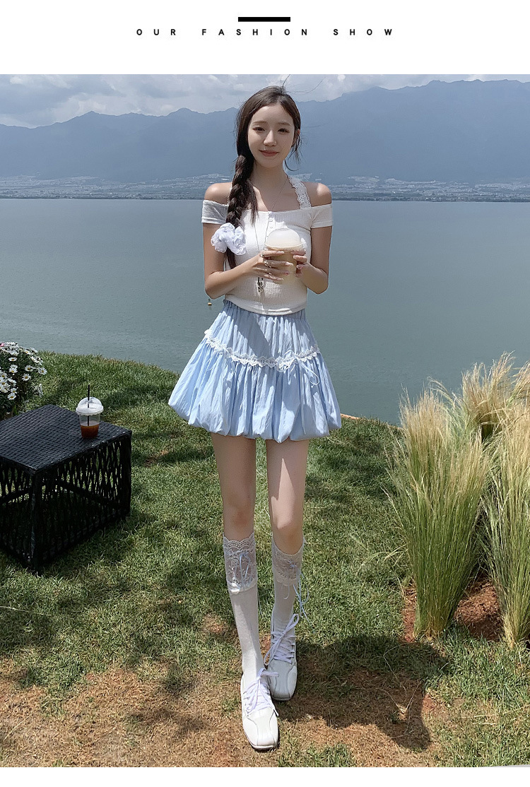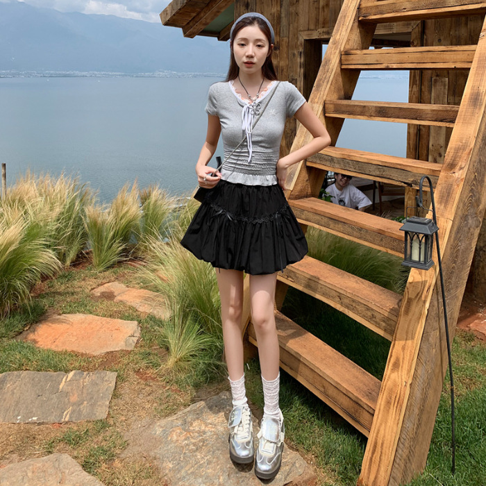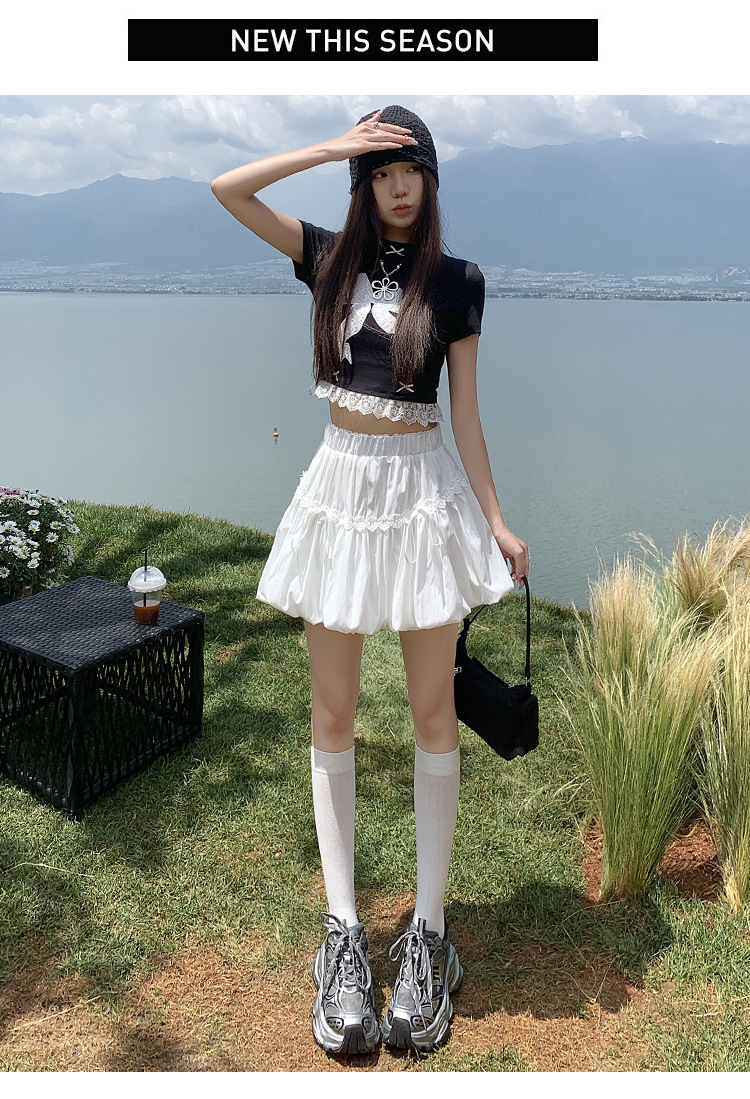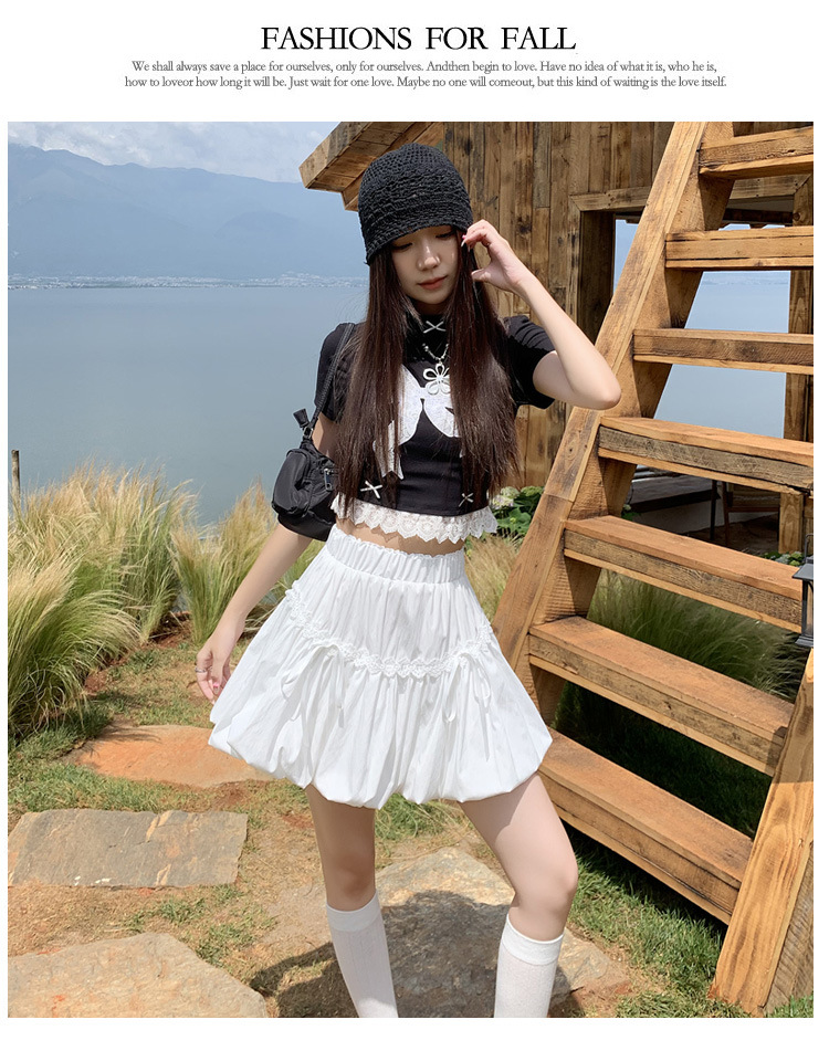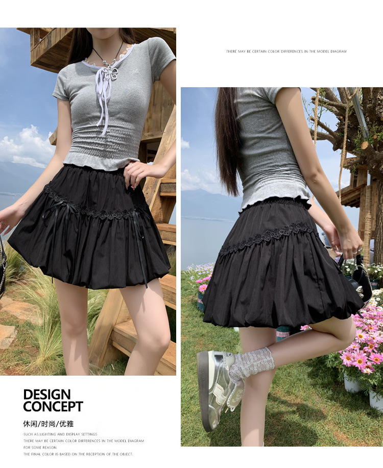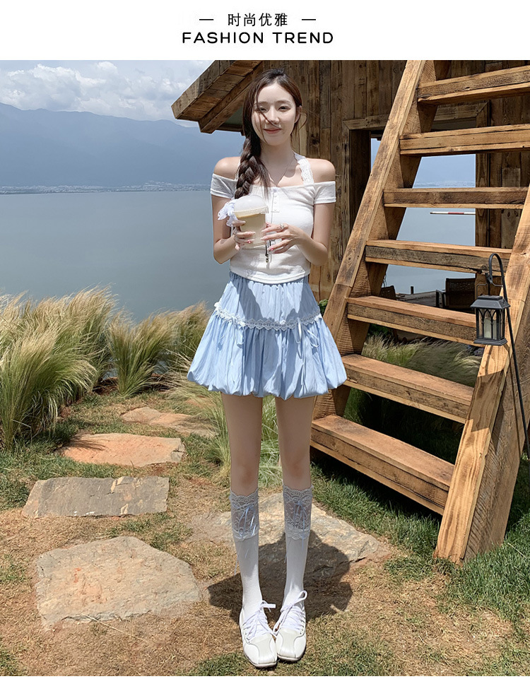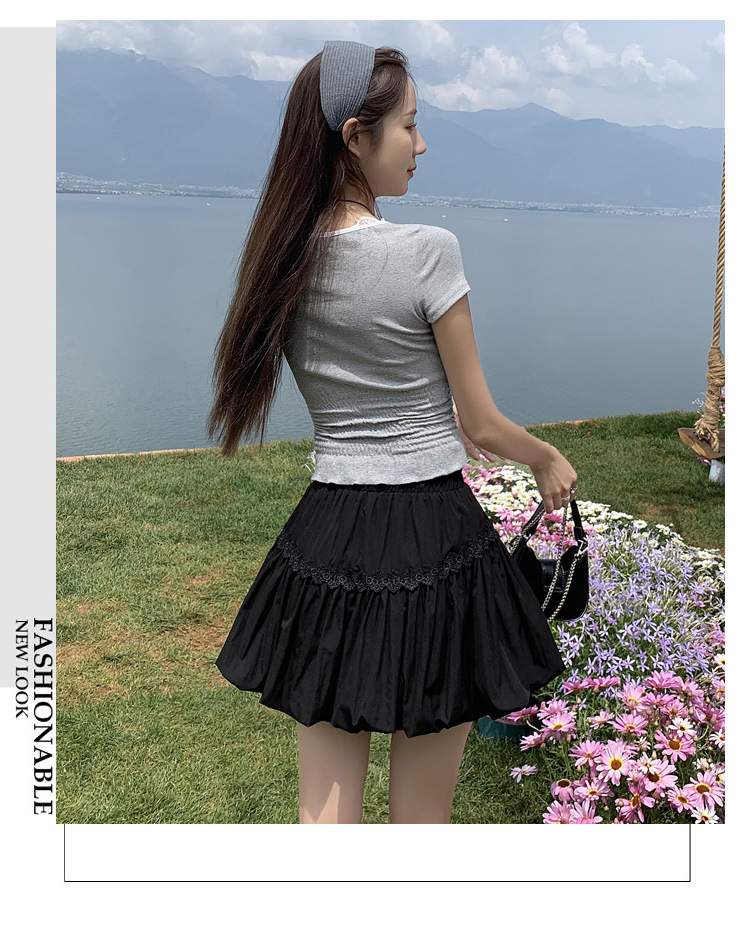 인터넷 연예인 같은 스타일의 랜턴 스커트 여성용 신축성 있는 하이 웨이스트 슬리밍 및 다리 길이 노출 방지 버블 스커트 짧은 스커트스토어 가기