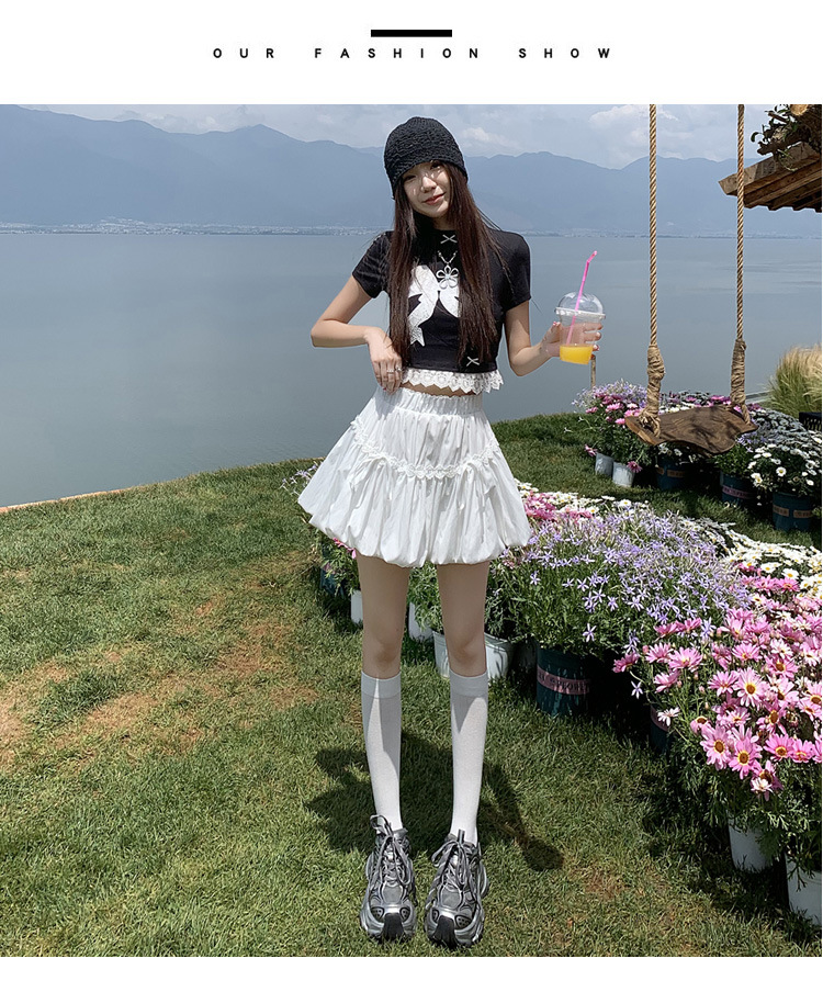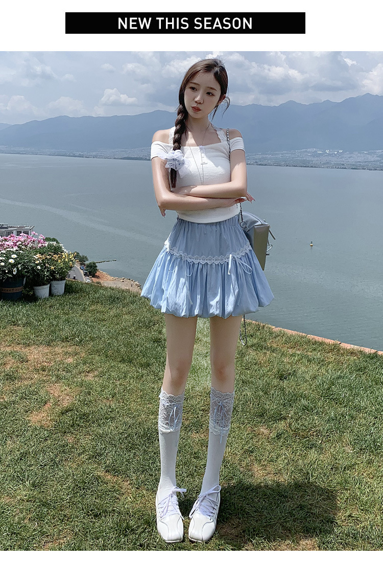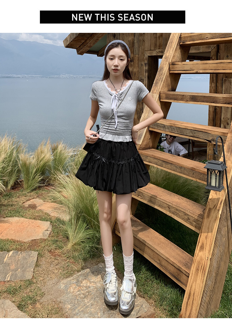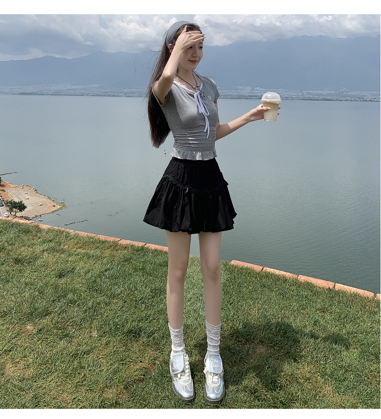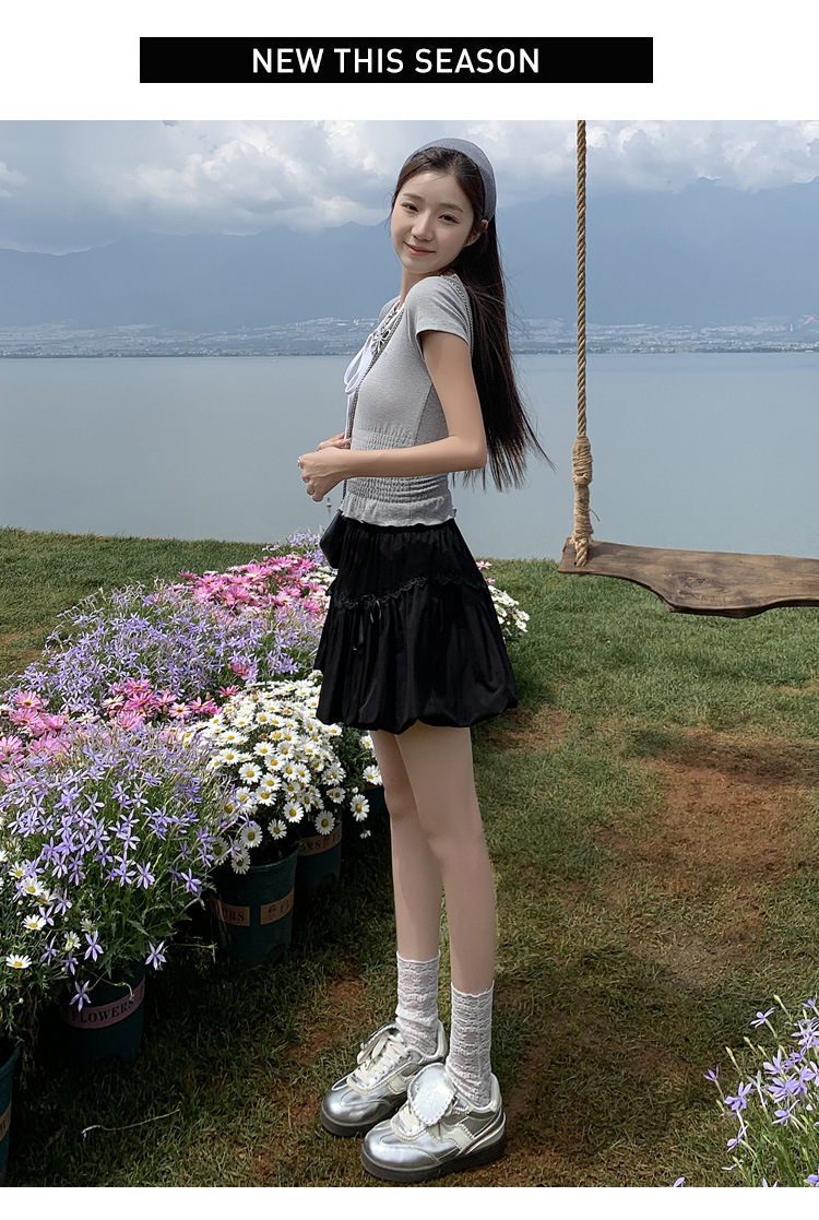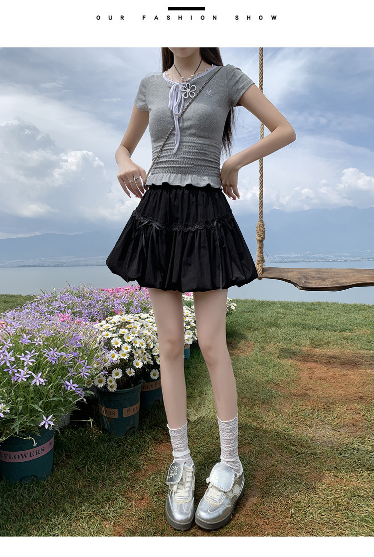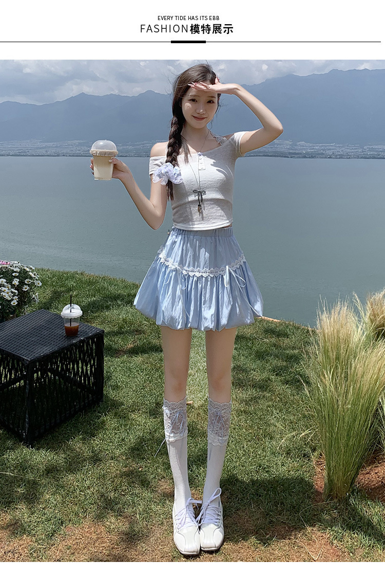 인터넷 연예인 같은 스타일의 랜턴 스커트 여성용 신축성 있는 하이 웨이스트 슬리밍 및 다리 길이 노출 방지 버블 스커트 짧은 스커트스토어 가기