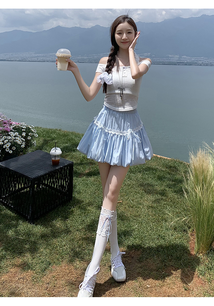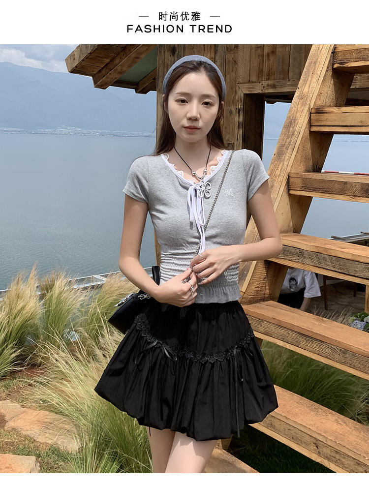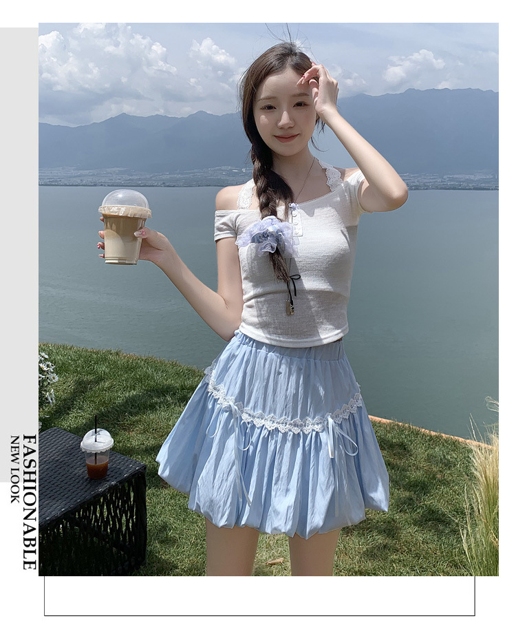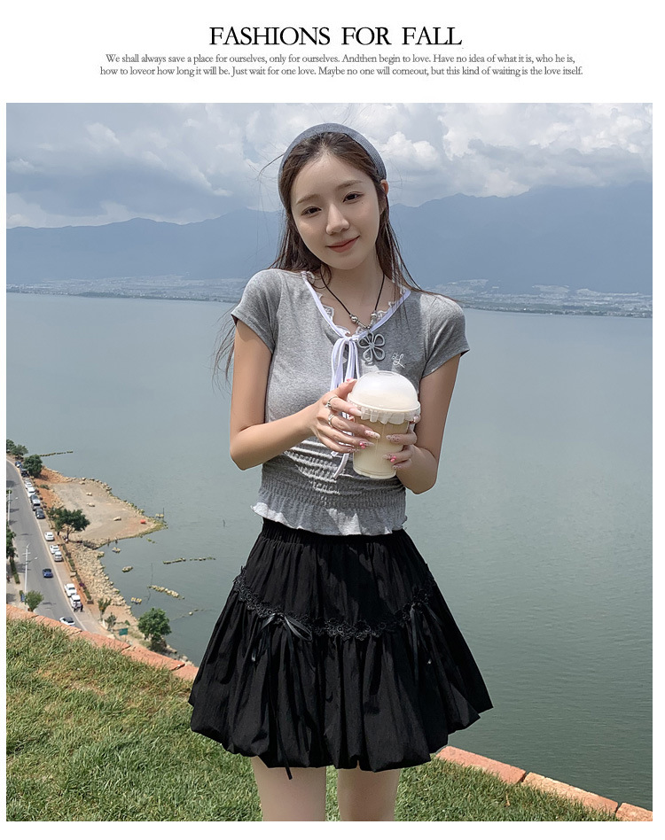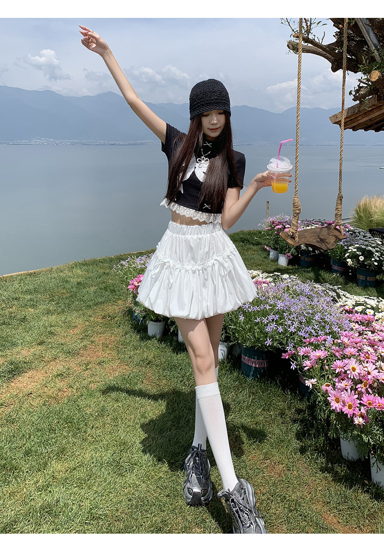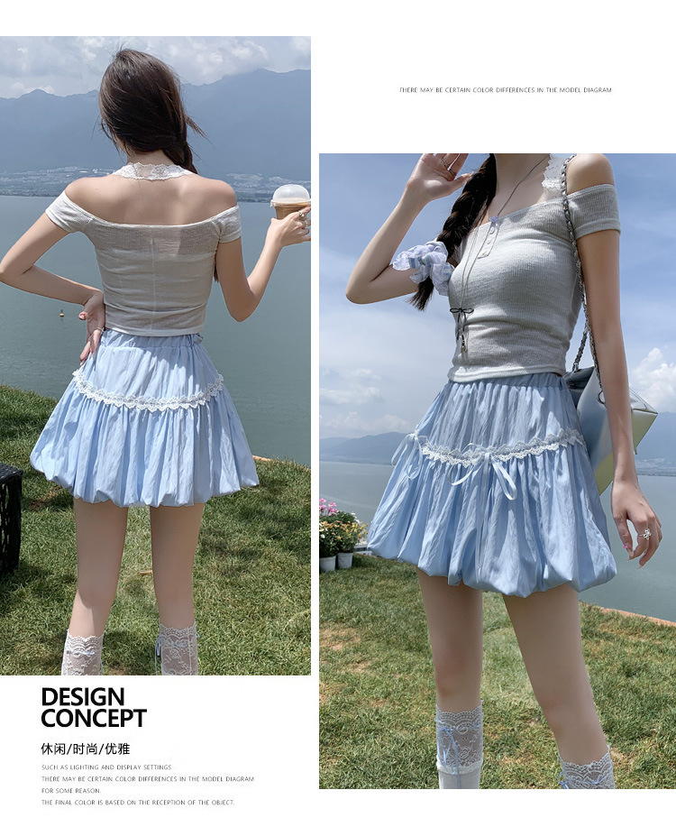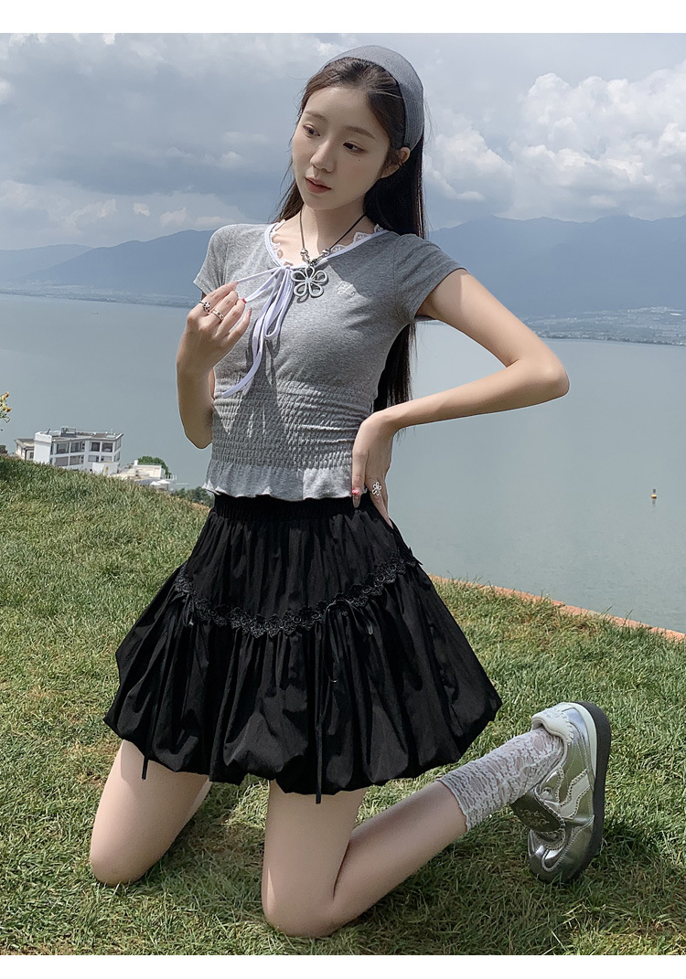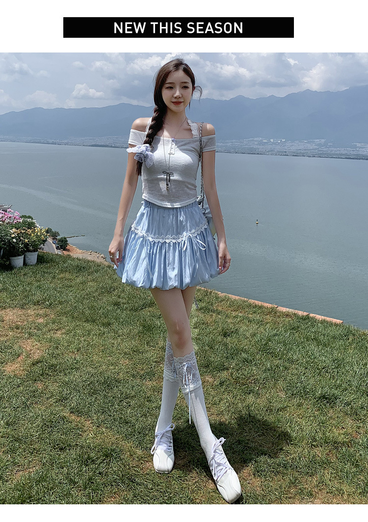 인터넷 연예인 같은 스타일의 랜턴 스커트 여성용 신축성 있는 하이 웨이스트 슬리밍 및 다리 길이 노출 방지 버블 스커트 짧은 스커트스토어 가기