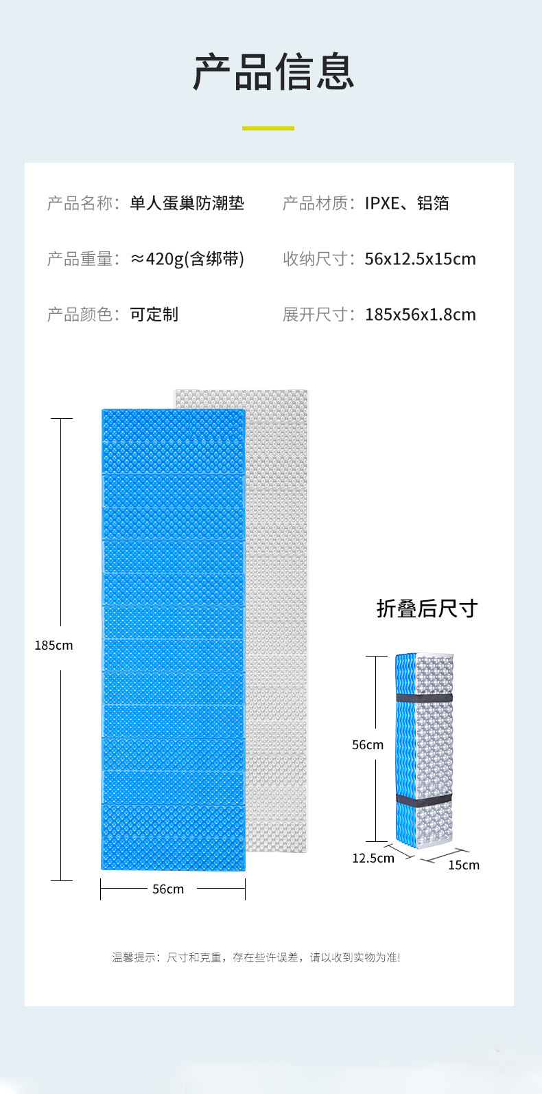 야외 캠핑 휴대용 텐트 슬리핑 패드 ​ 1인용 두꺼운 낮잠 피크닉 매트 xpe 접이식 계란 둥지 방습 매트스토어 가기