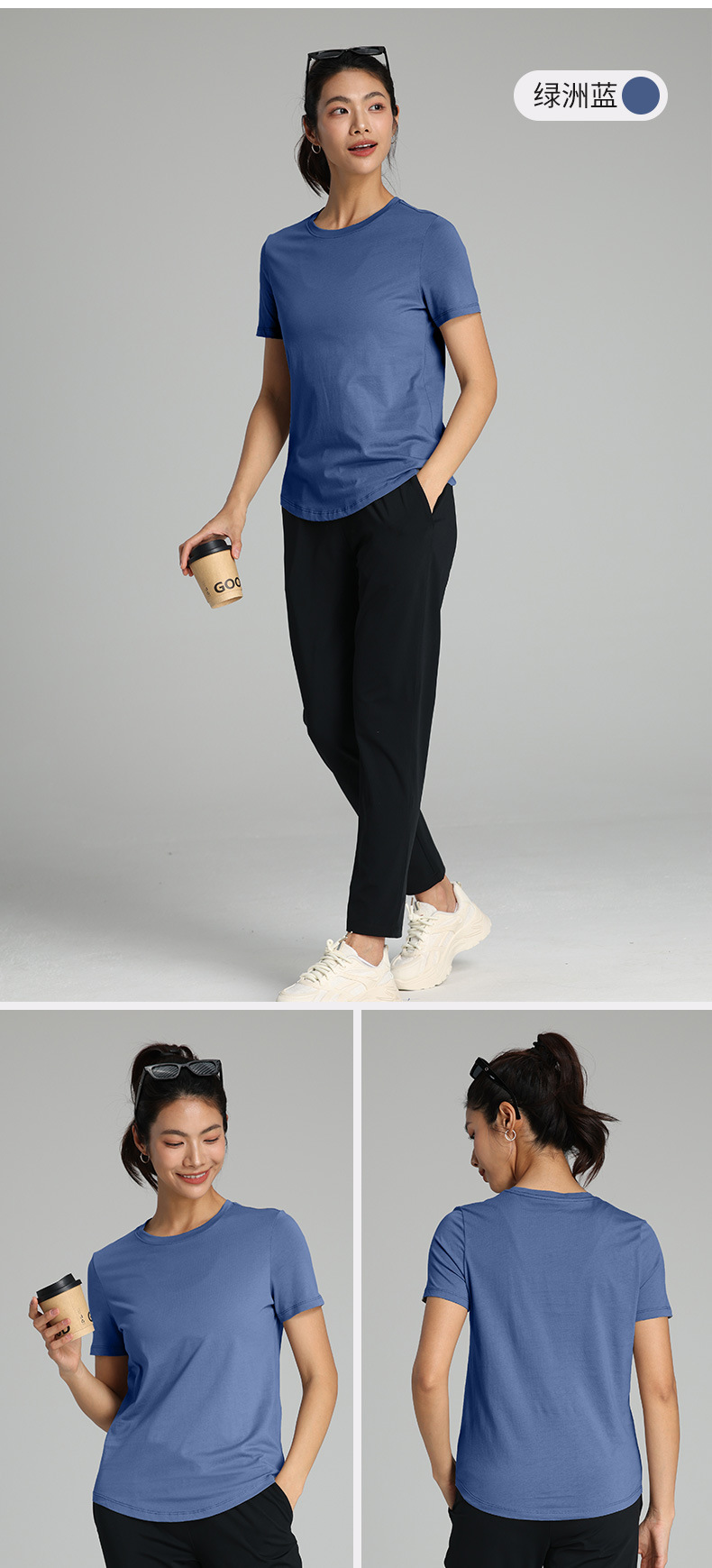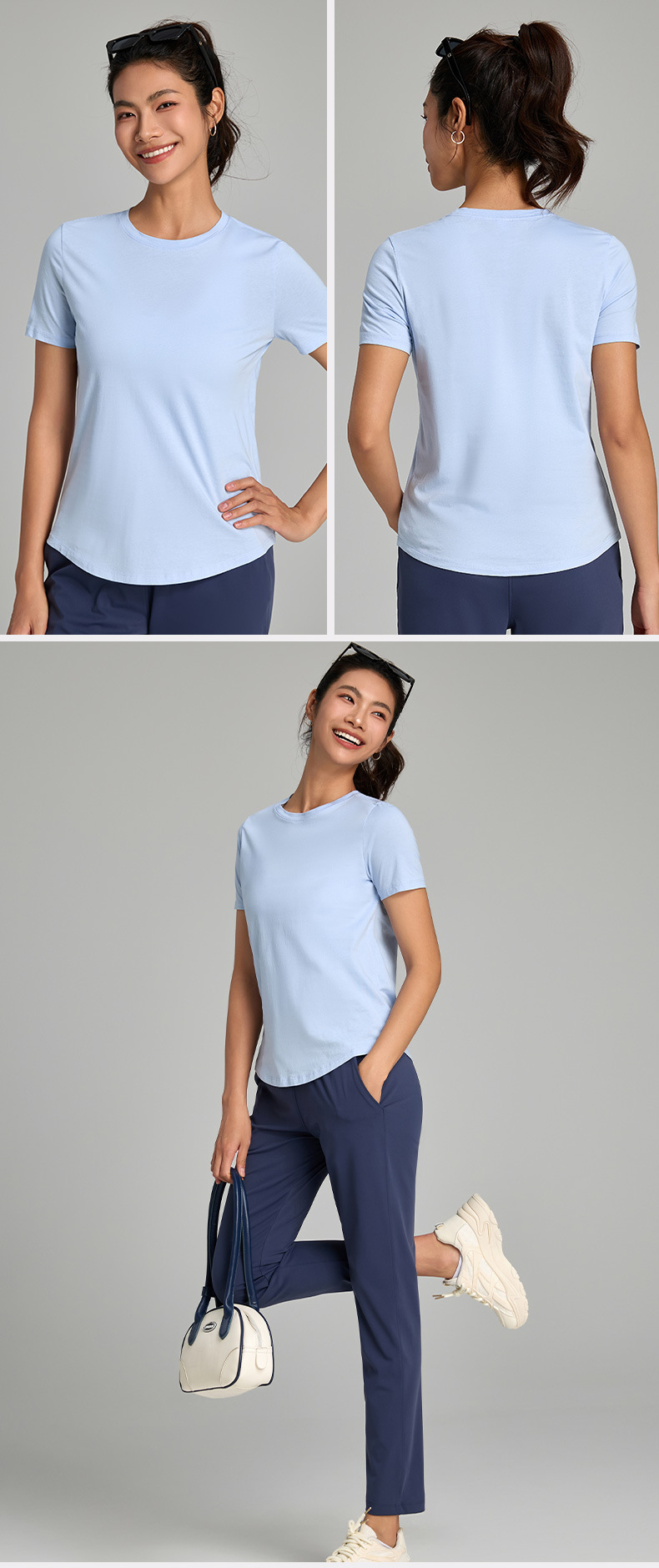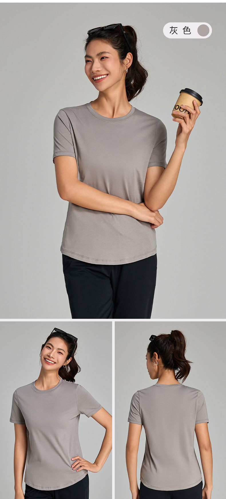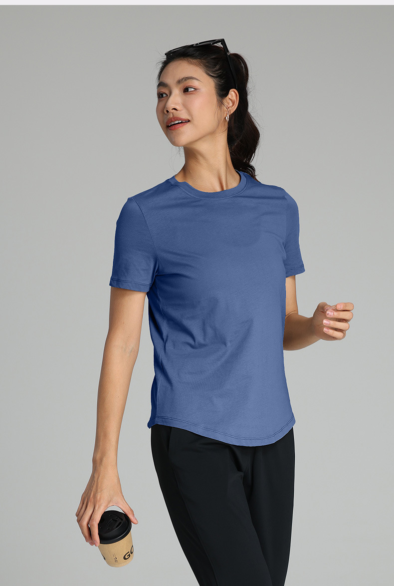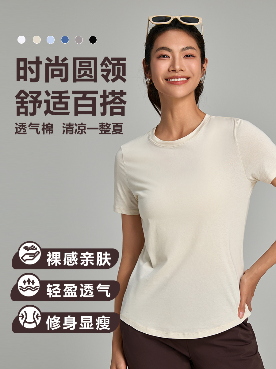 순면 새 여름 구름 같은 캐주얼 티셔츠, 편안하고 가볍고 통기성이 좋은 요가복, 라운드 넥, 다용도 스포츠 반팔 여성스토어 가기