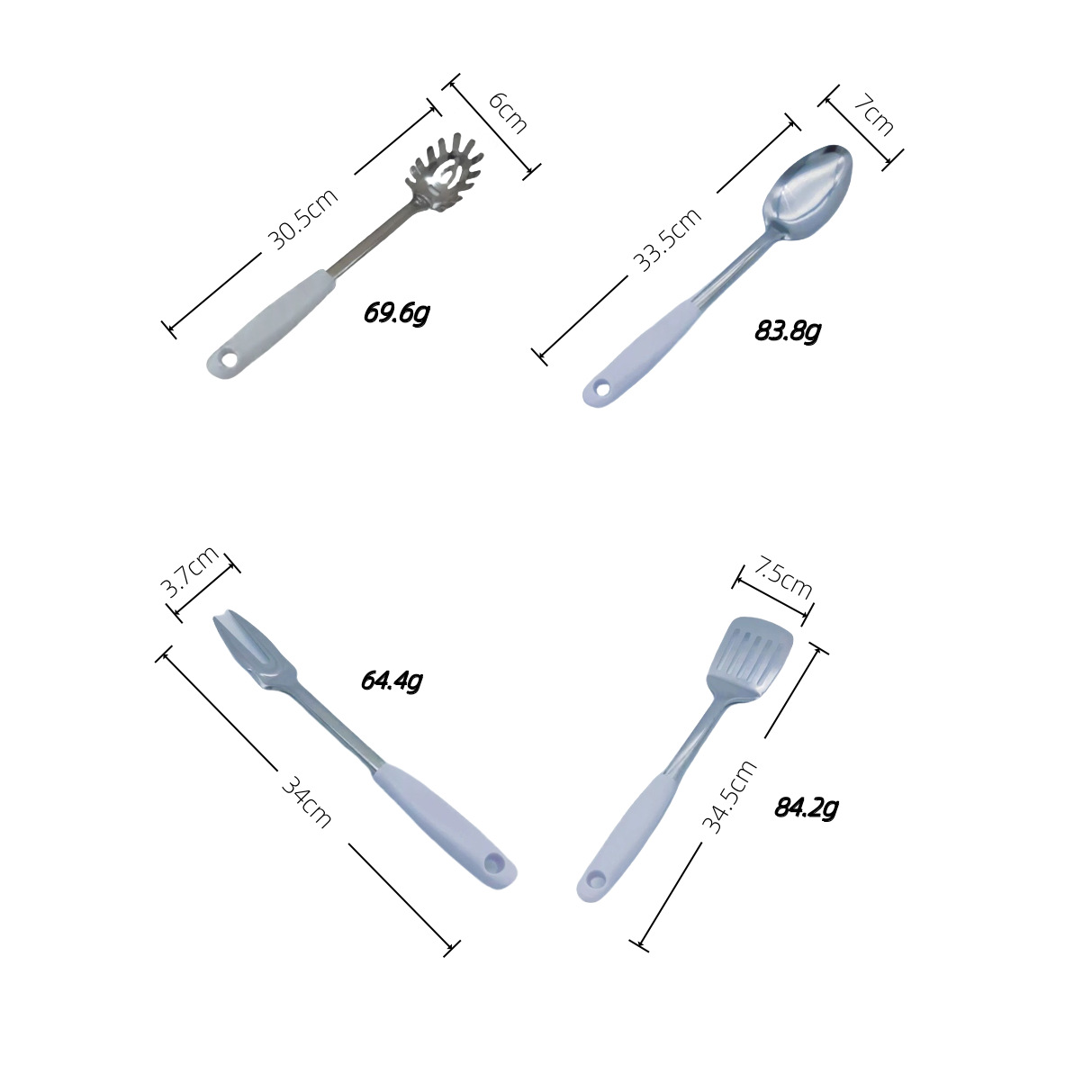 • 흰색 플라스틱 손잡이가 있는 오일 텅 스푼