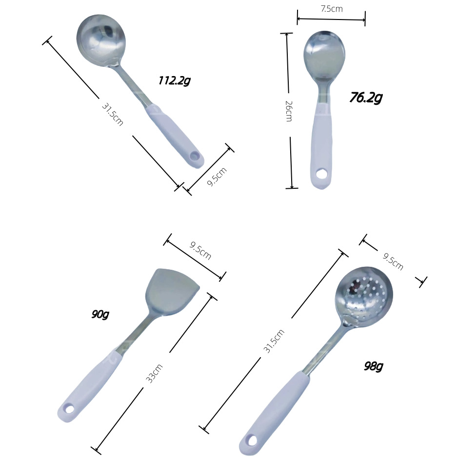 플라스틱 손잡이 대형 소쿠리 요리 주걱 조리기구 스테인레스 스틸 주걱 가정용 두꺼운 요리 도구 주방 세트