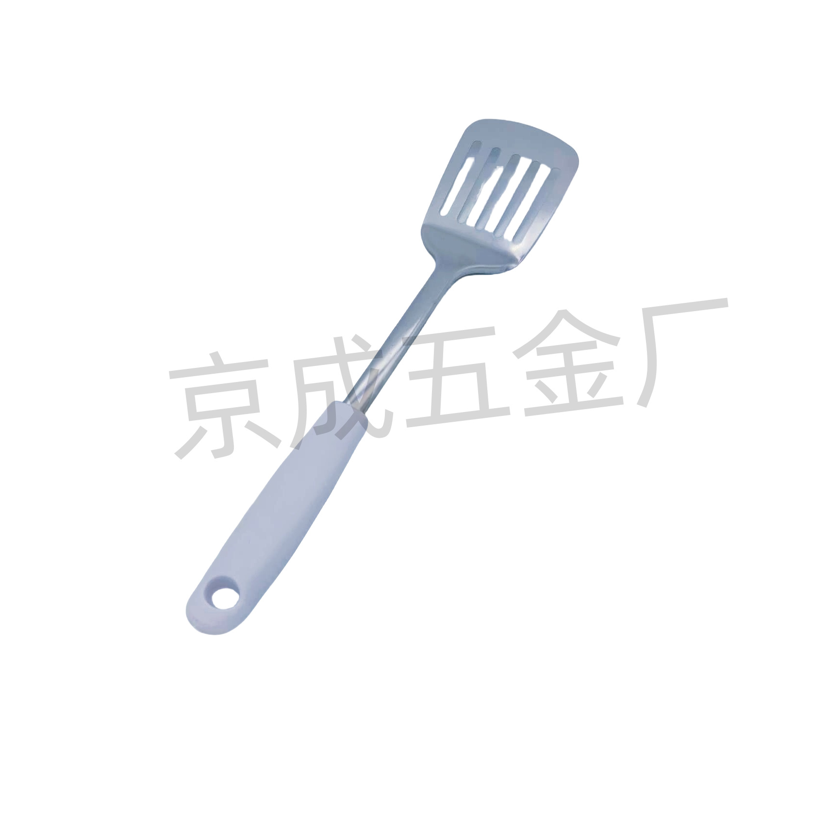 • 흰색 플라스틱 손잡이가 달린 튀김 주걱