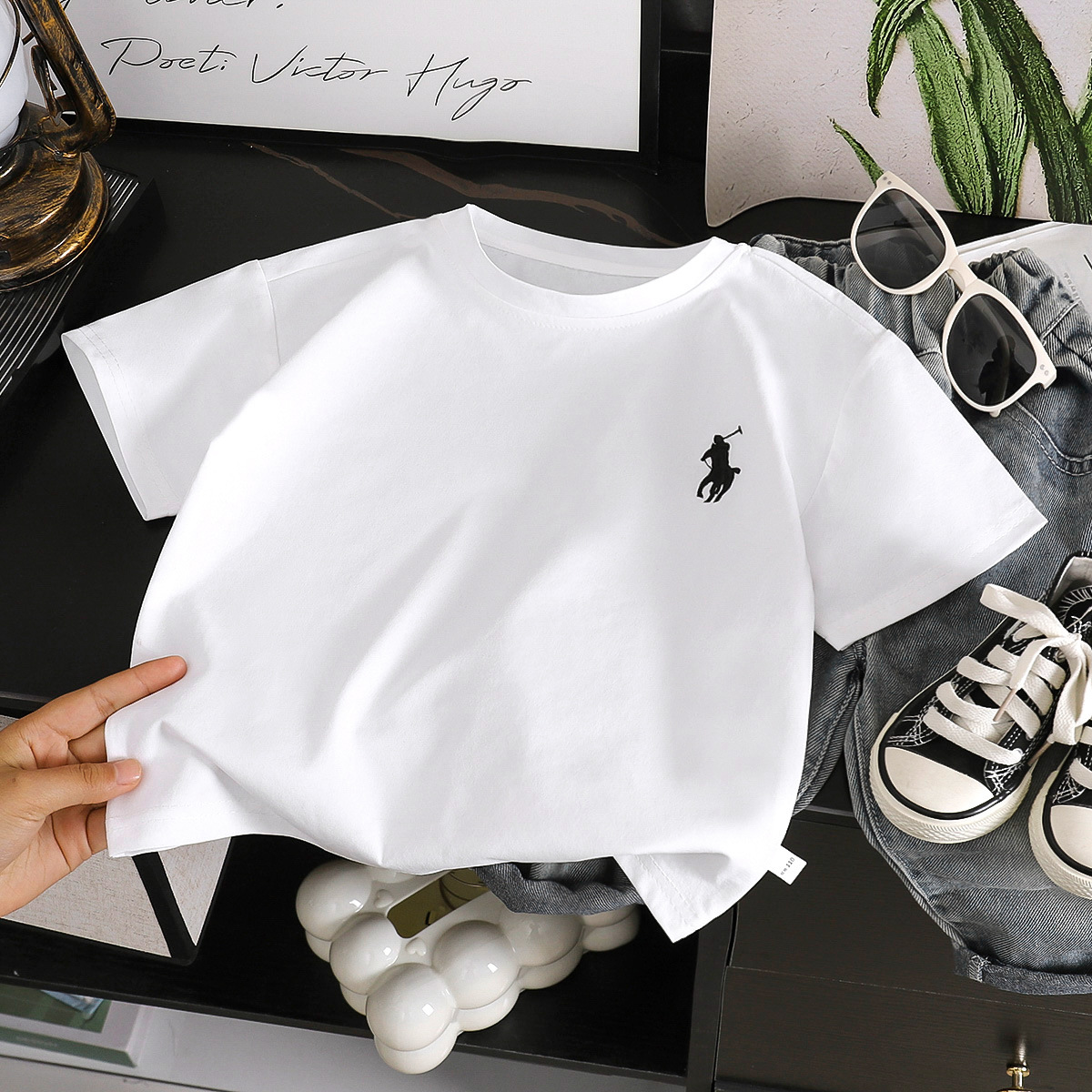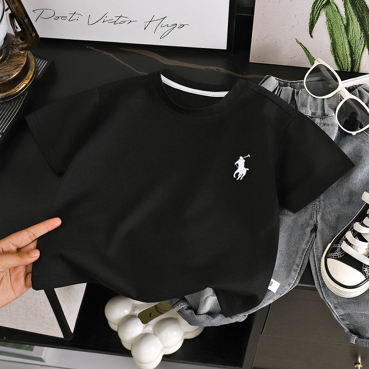 여름 신상 아동 패션 티셔츠, 남아용 다용도 자수 상의, 여아용 단색 한국 스타일 캐주얼 라운드넥 반팔스토어 가기