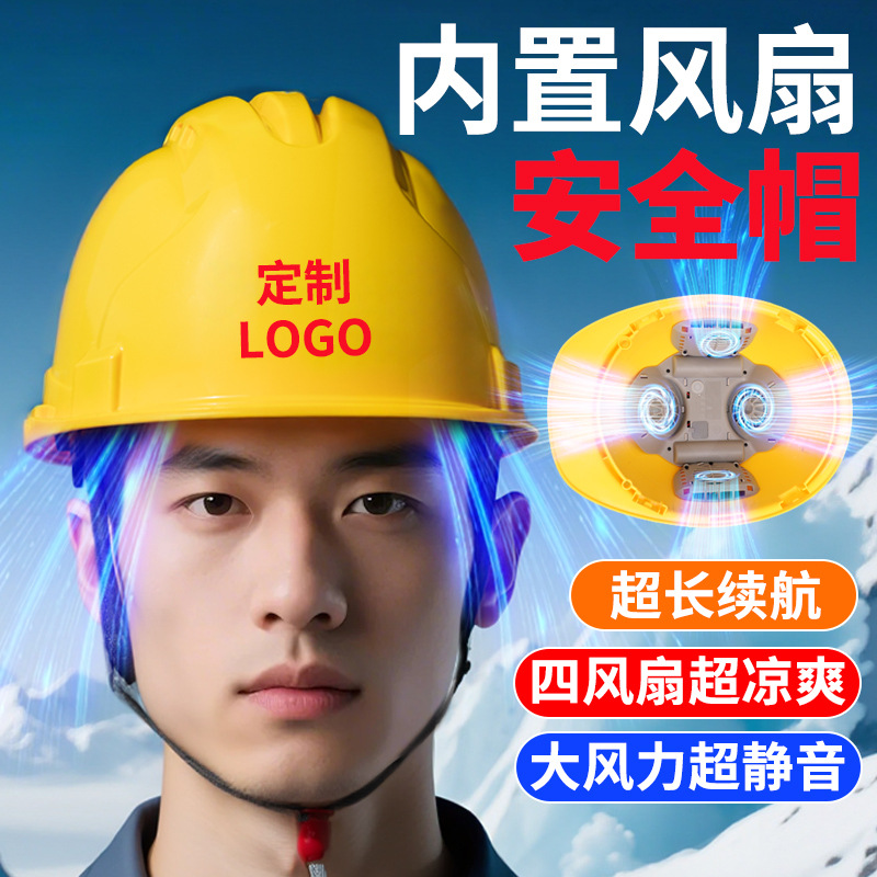 건설 현장 국가 표준 ABS 여름 경량 환기 및 냉각 유물 파손 방지 충전식 리튬 전기 터빈 이중 팬 안전 헬멧