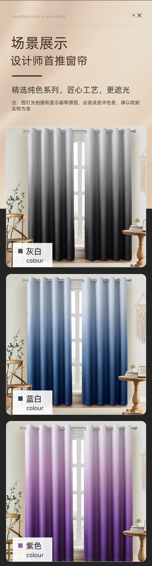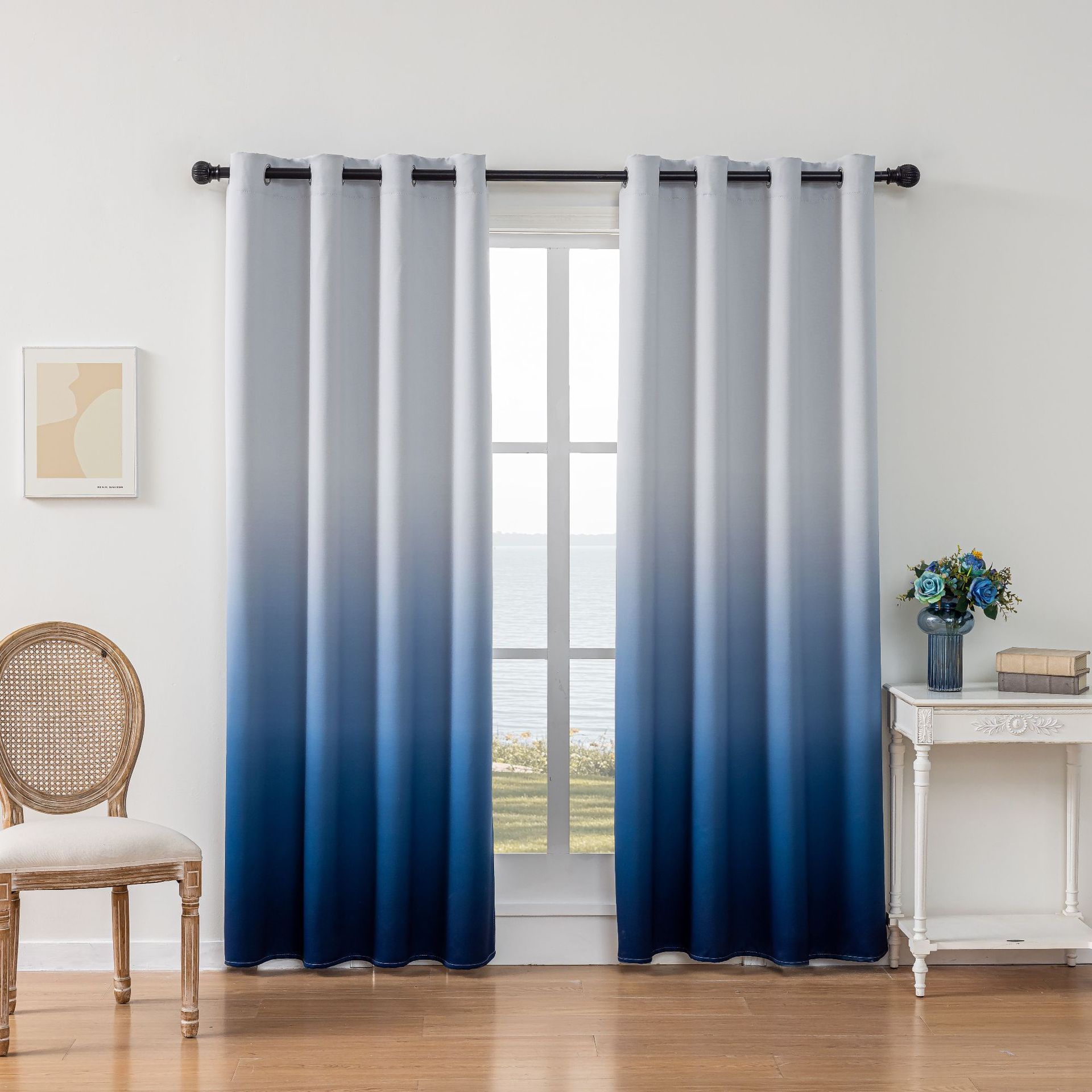 국경을 넘는 인기 있는 회색 및 흰색 그라데이션 커튼, 심플한 거실 및 침실 암막 커튼, 호텔 발코니 암막 커튼, 드롭 배송스토어 가기